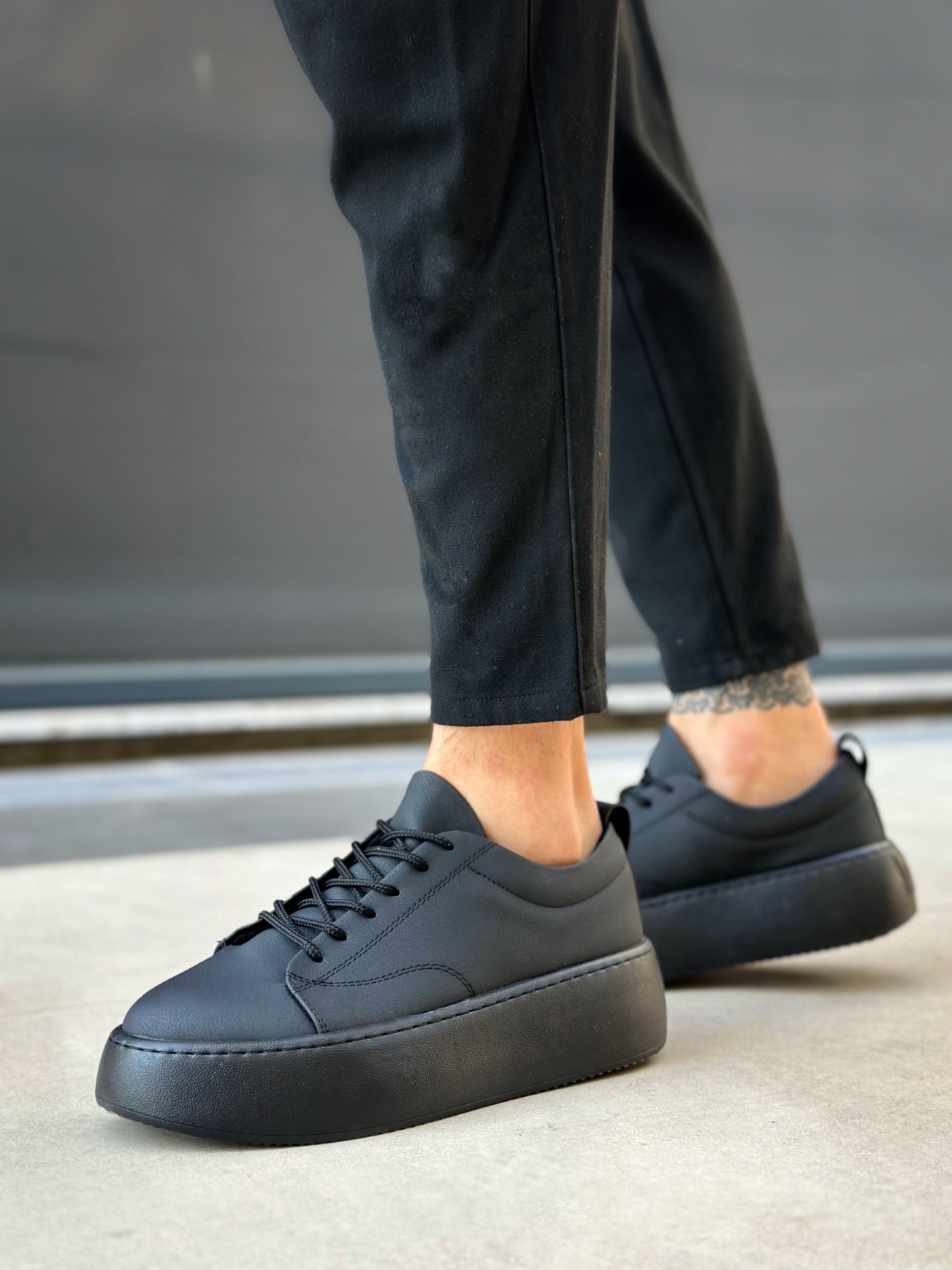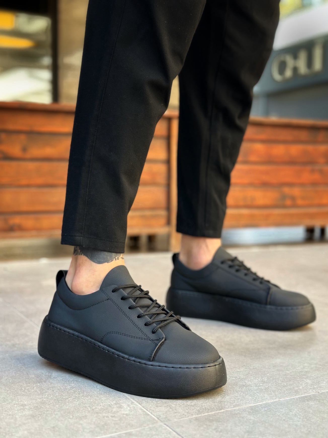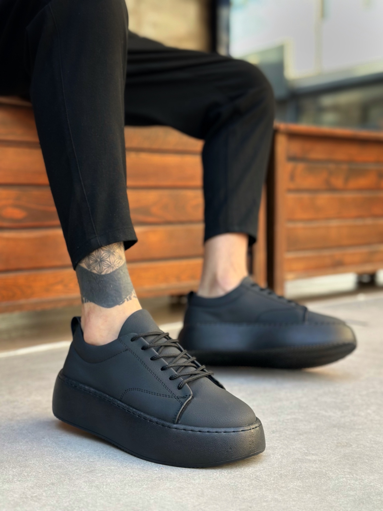 Tugerdi Siyah Bağcıklı Yüksek Siyah Taban Erkek Spor Ayakkabı TGD230161
