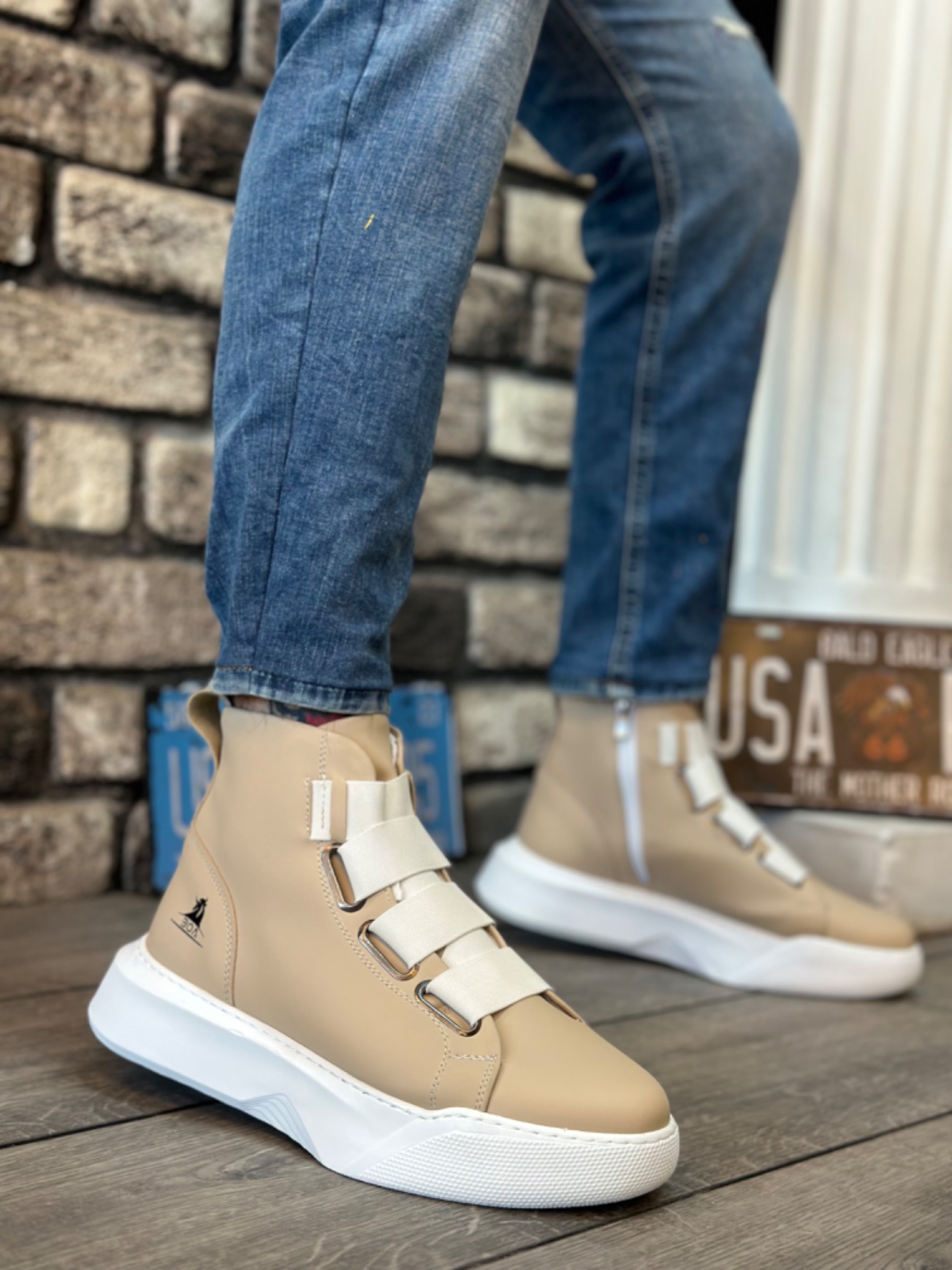 Tugerdi Bantlı Yüksek Taban Krem Beyaz Erkek Spor Tarz Bot TGE230292
