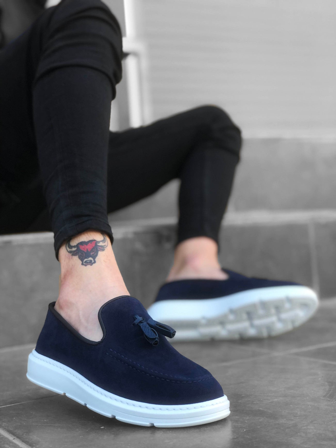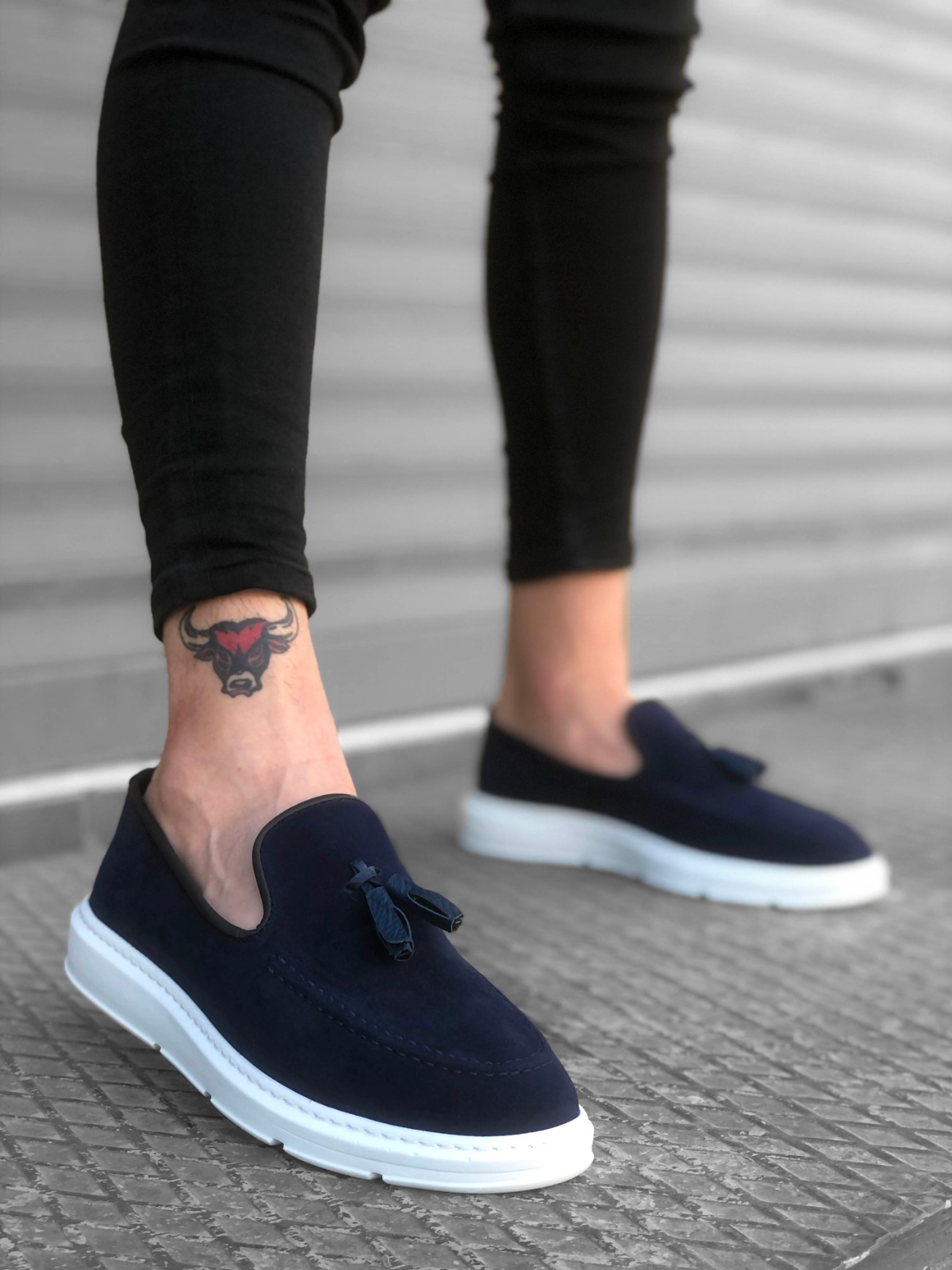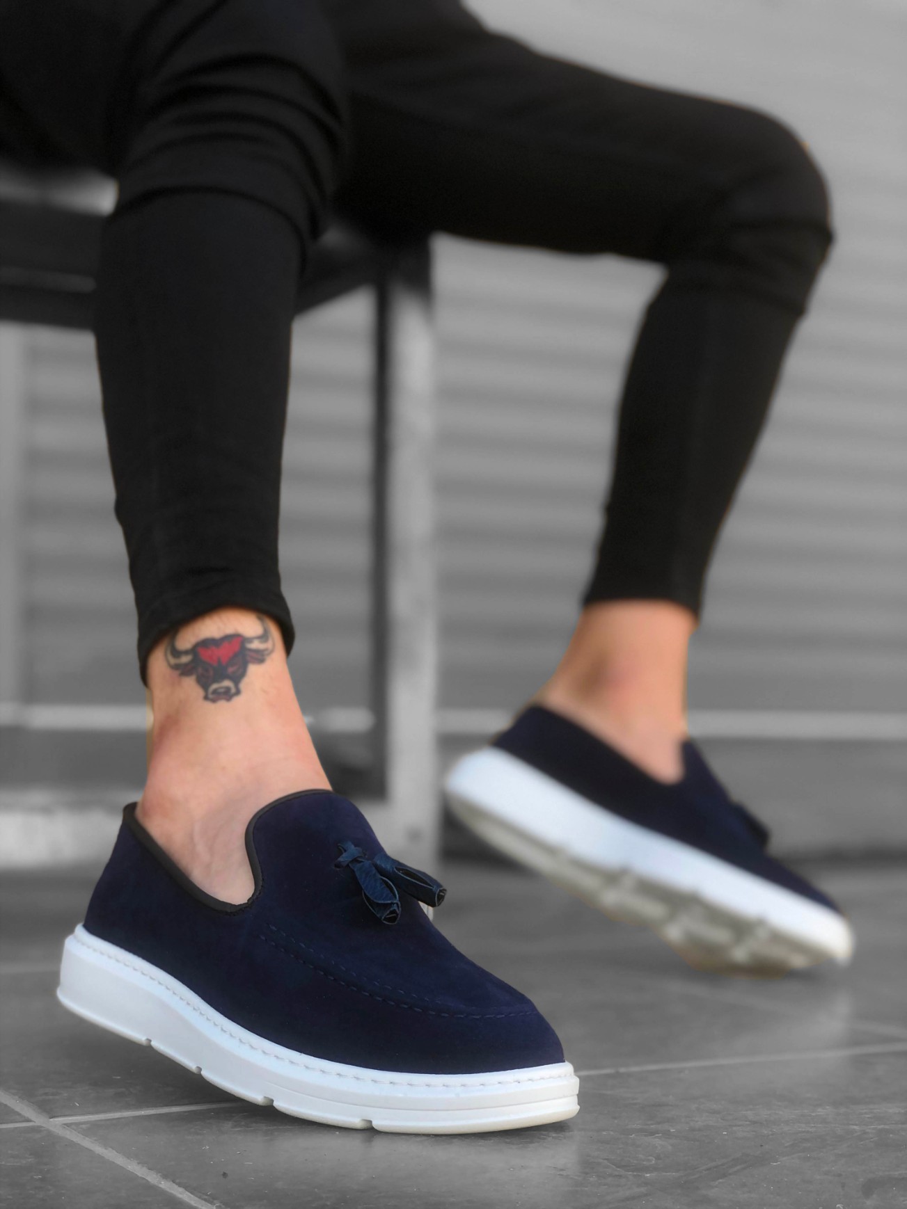• Tugerdi Bağcıksız Yüksek Taban Lacivert Klasik Püsküllü Tarz Erkek Ayakkabı TGE230155