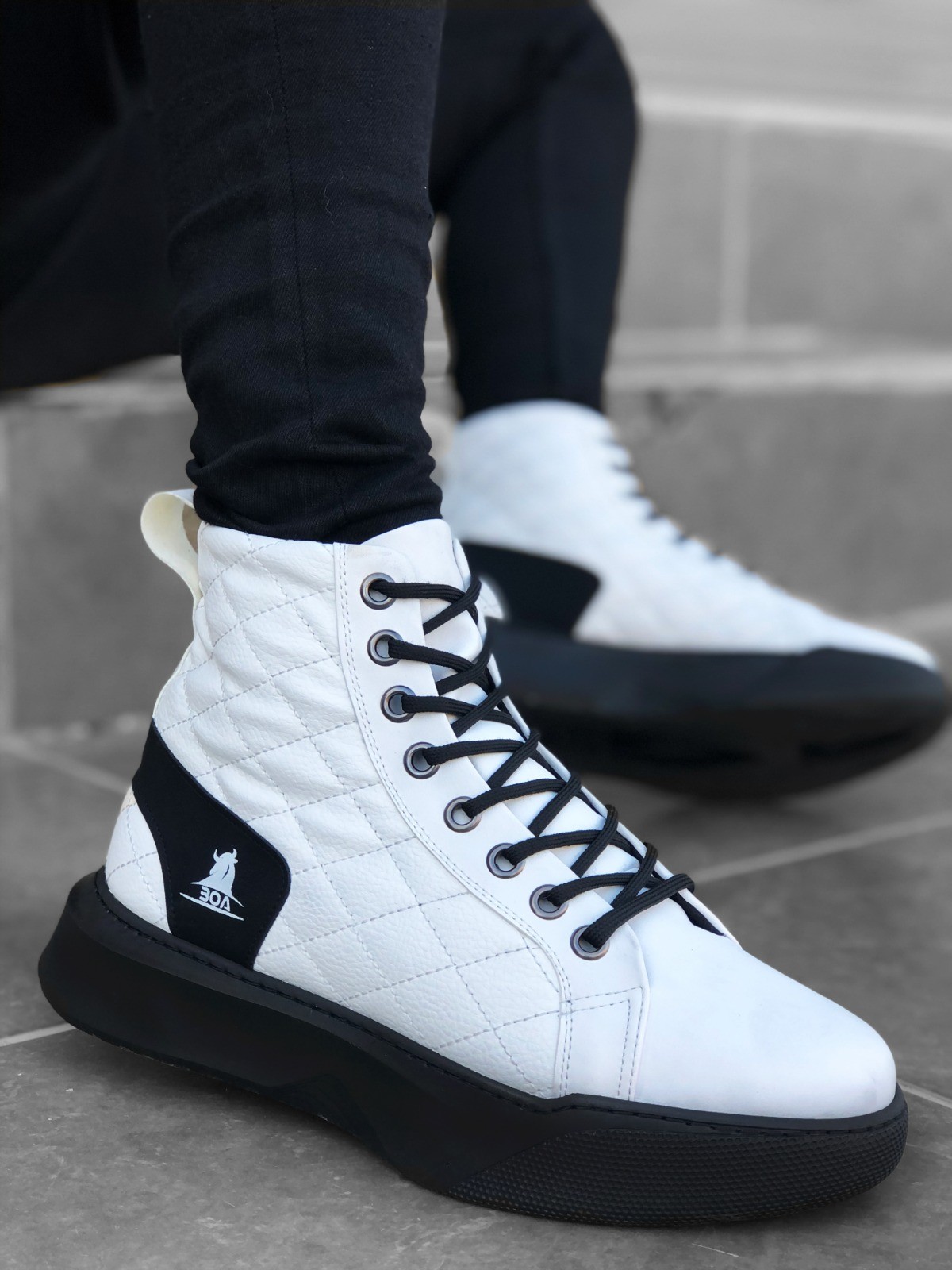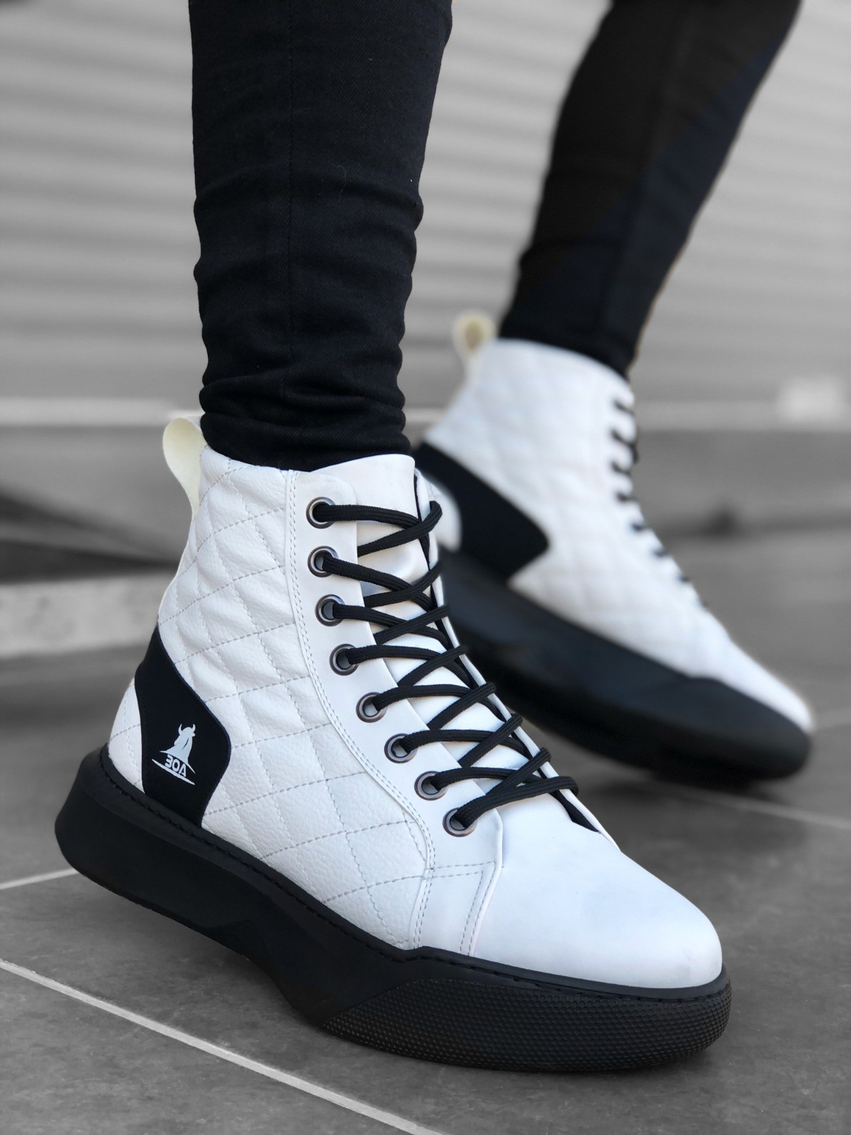 Tugerdi Bağcıklı Yüksek Siyah Taban Beyaz Kapitone Erkek Spor Tarz Bot TGE230309