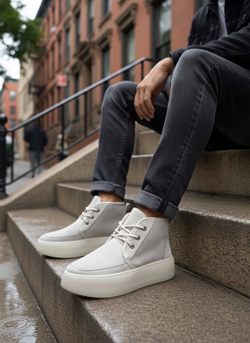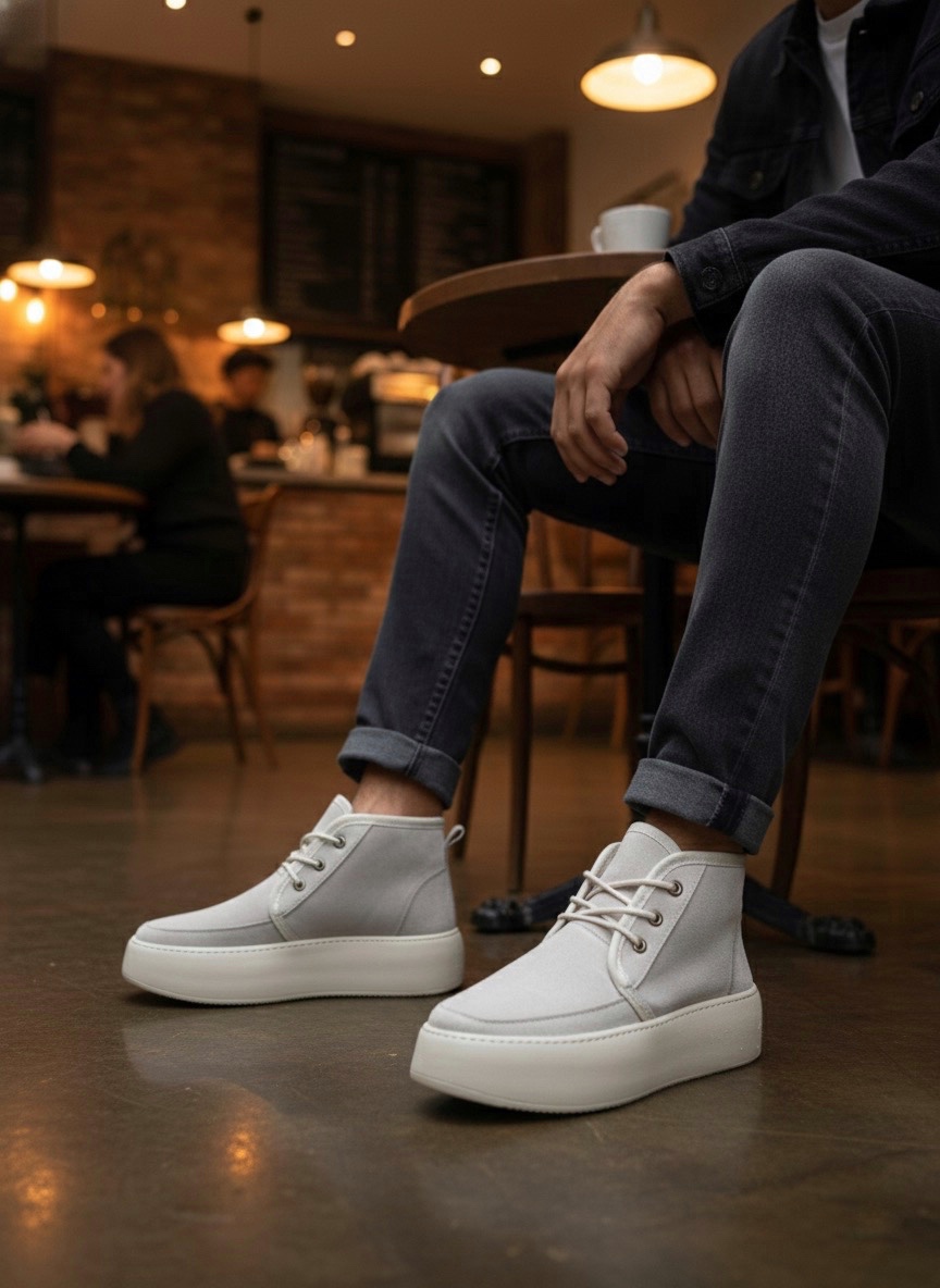 • TGE0550 İçi Kürklü Bağcıklı Krem Erkek Tarz Spor Bot