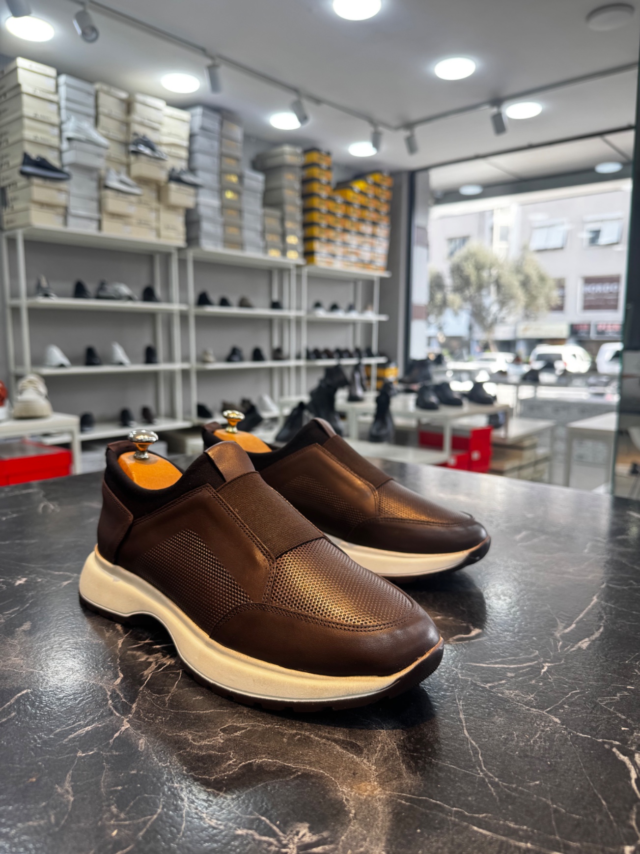 • TGE0244 İçi Dışı Hakiki Deri Bantlı Rahat Taban Casual Kahverengi Erkek Ayakkabı