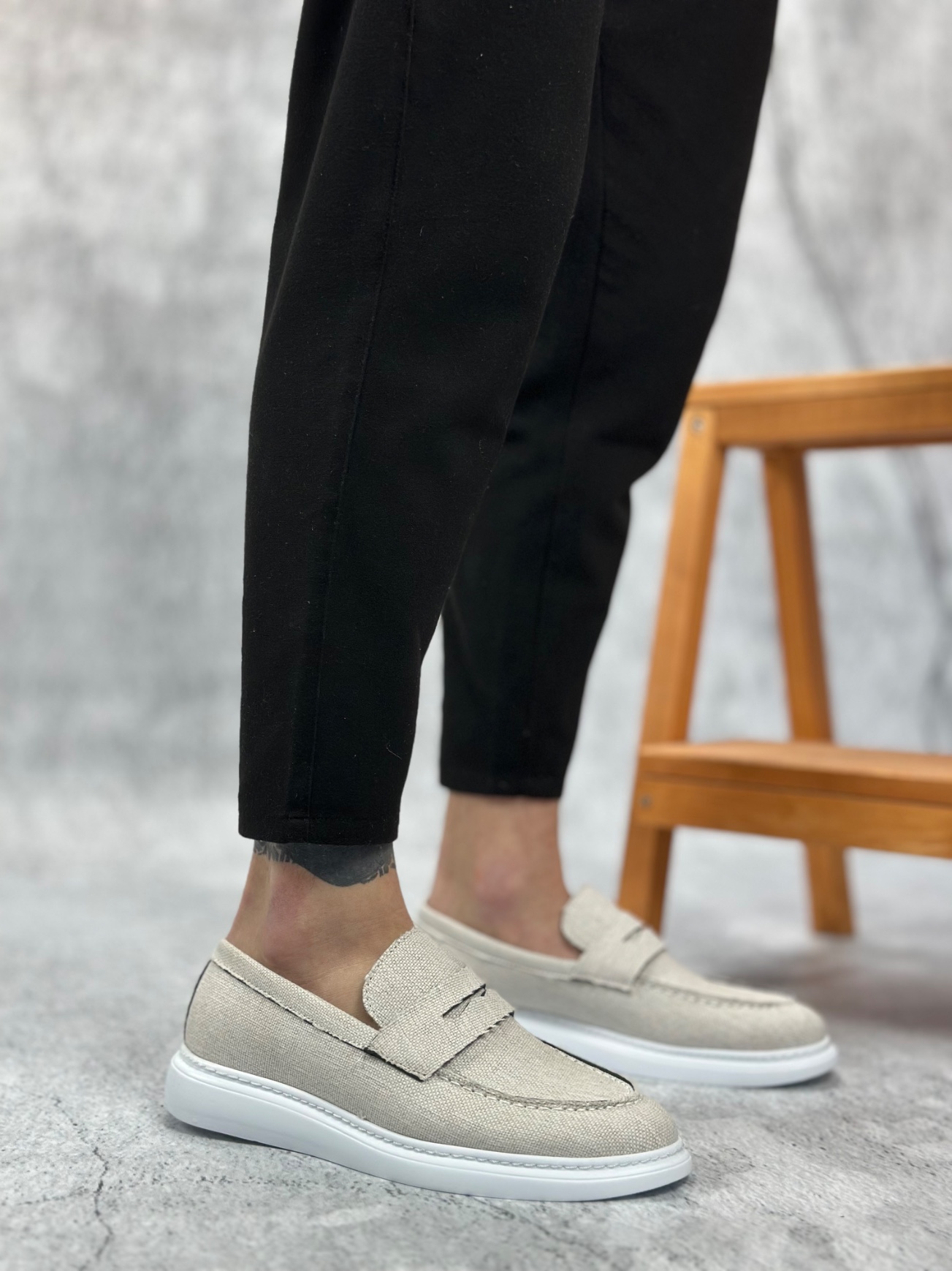 Tarz Erkek Ayakkabı Tugerdi Beyaz Keten Bağcıksız Beyaz Taban Klasik Corcik Erkek Ayakkabı TGE230505
