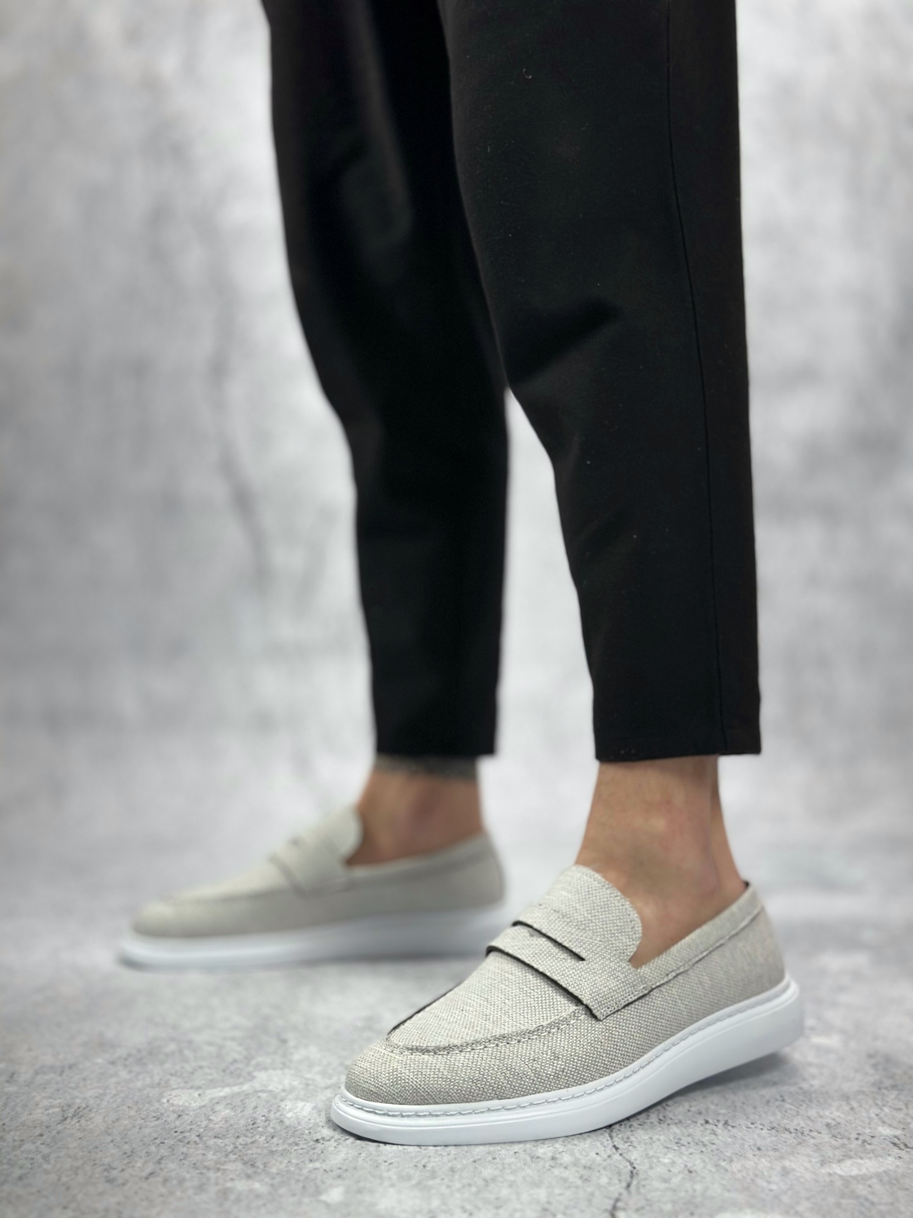 Tugerdi Beyaz Keten Bağcıksız Beyaz Taban Klasik Corcik Erkek Ayakkabı TGE230505