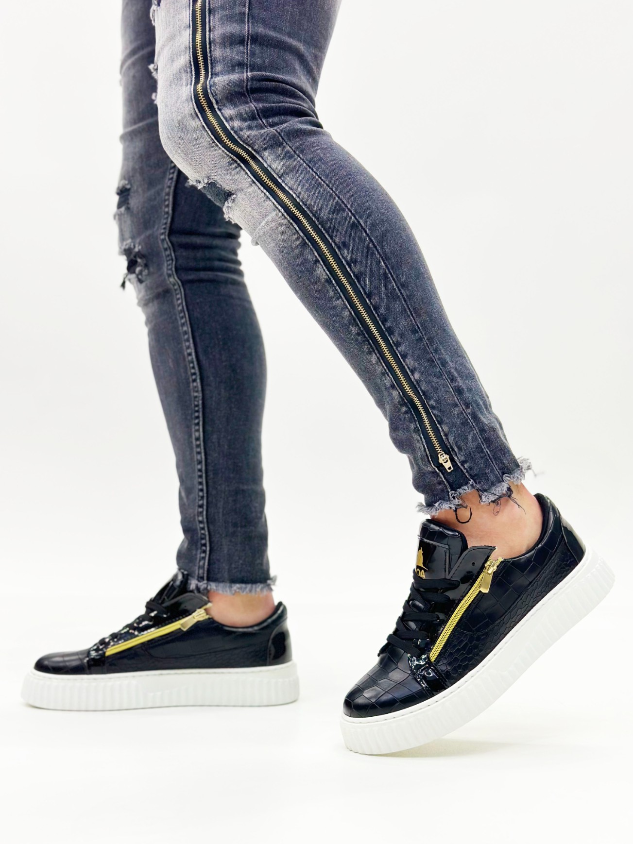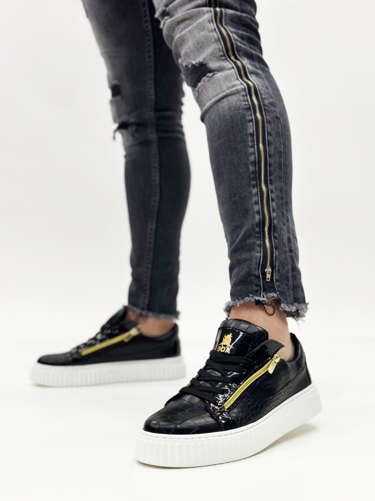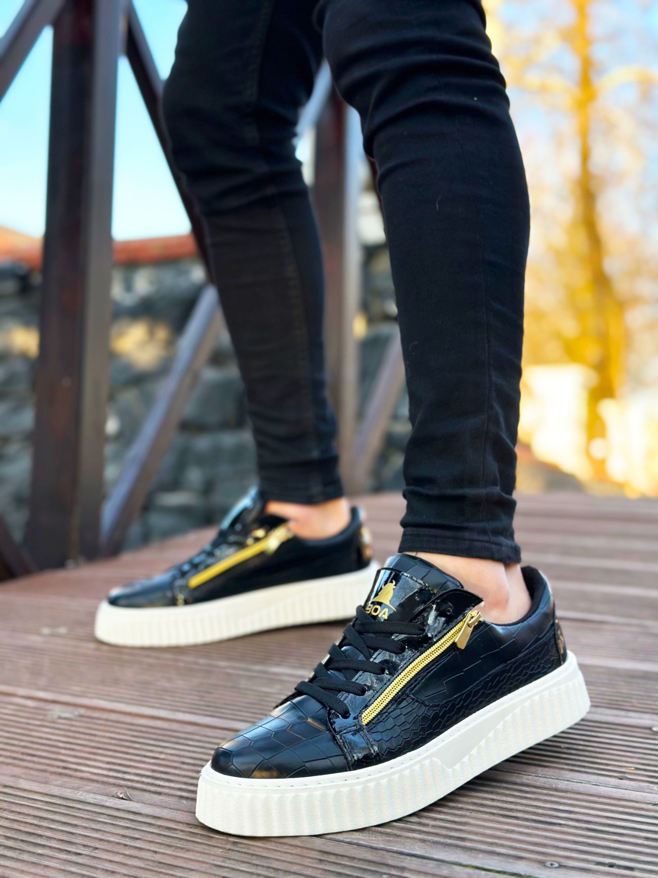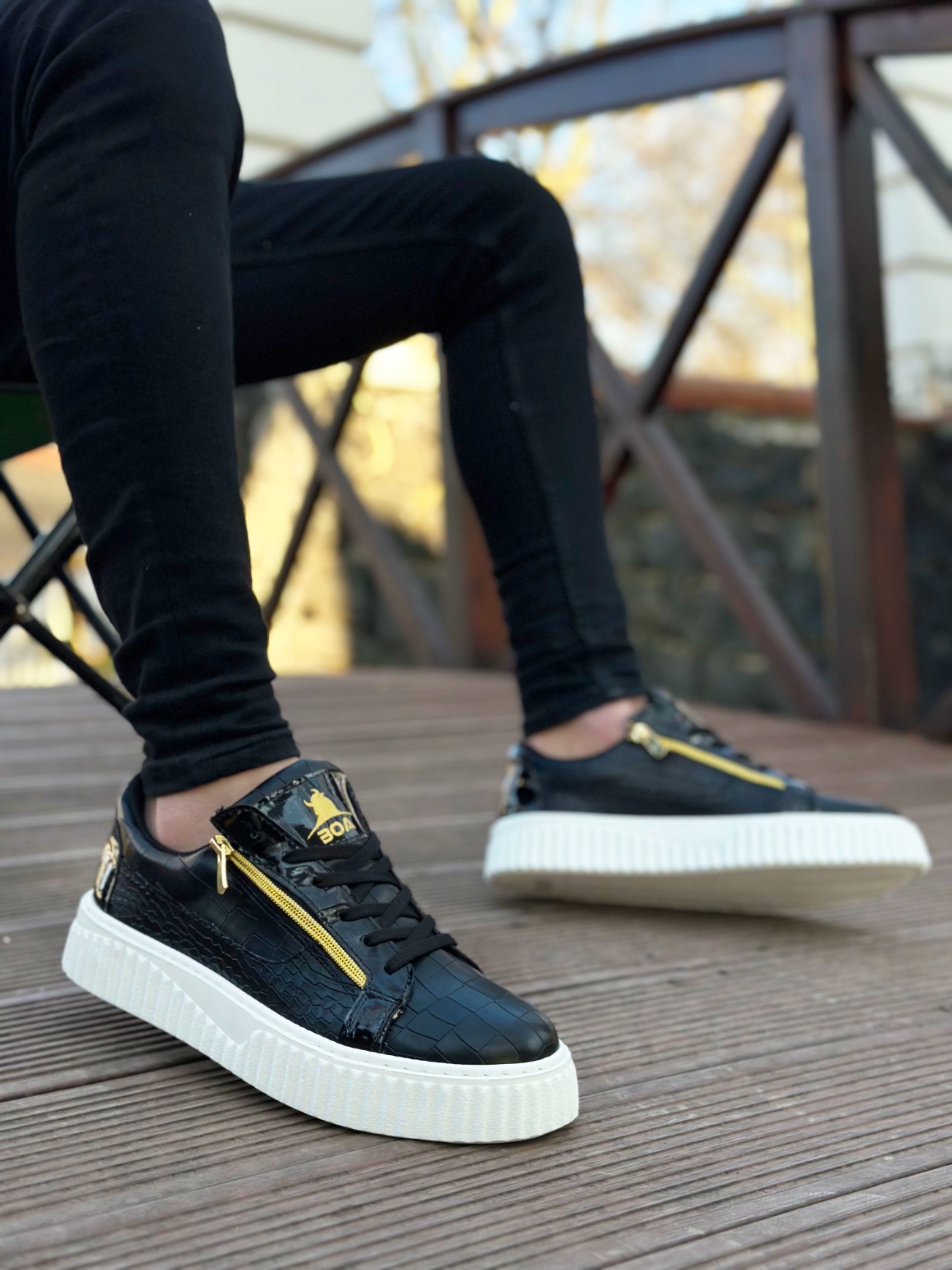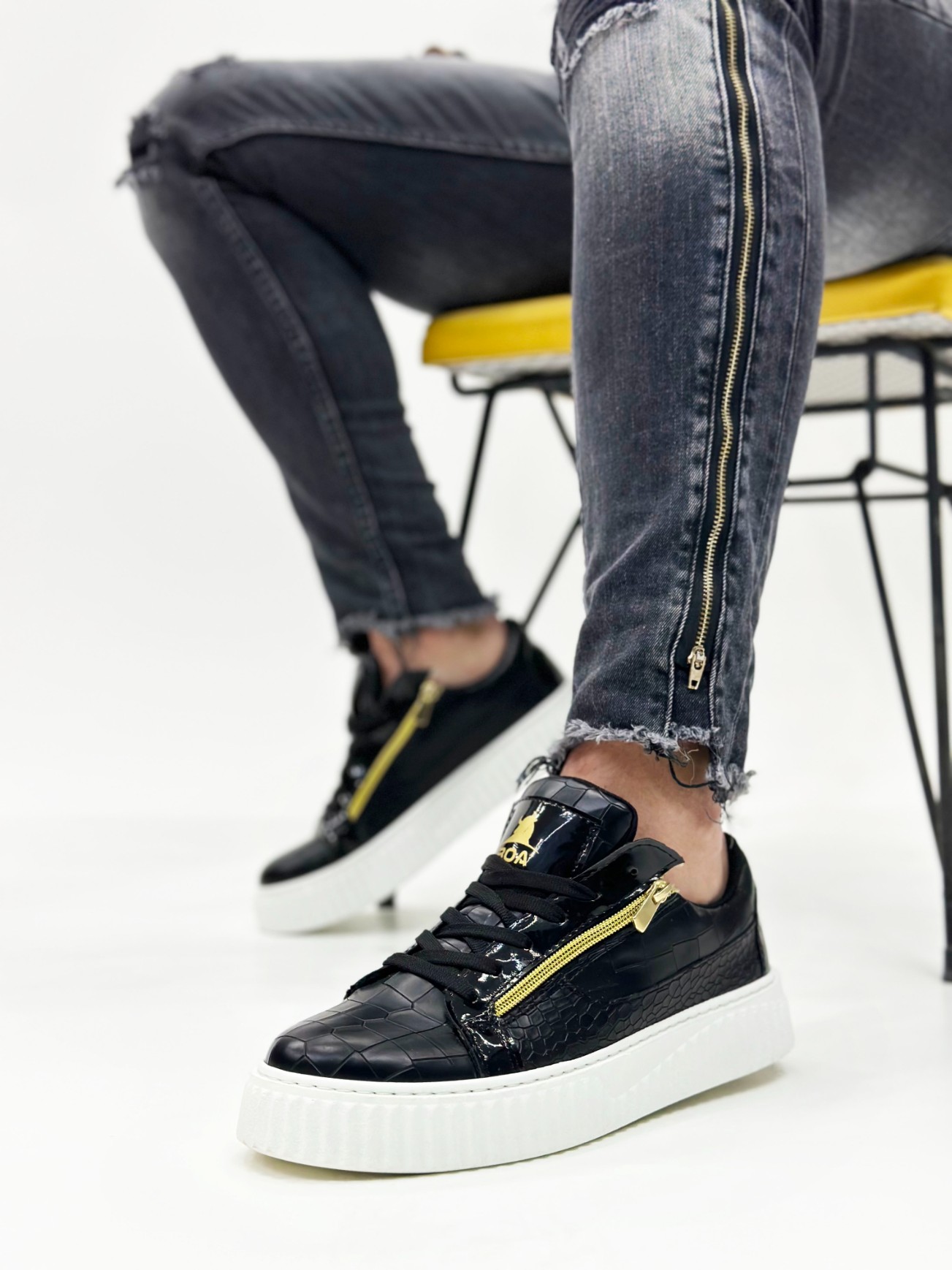 Tugerdi Kalın Yüksek Taban Çift Fermuarlı Siyah Beyaz Erkek Ayakkabı TGS230458