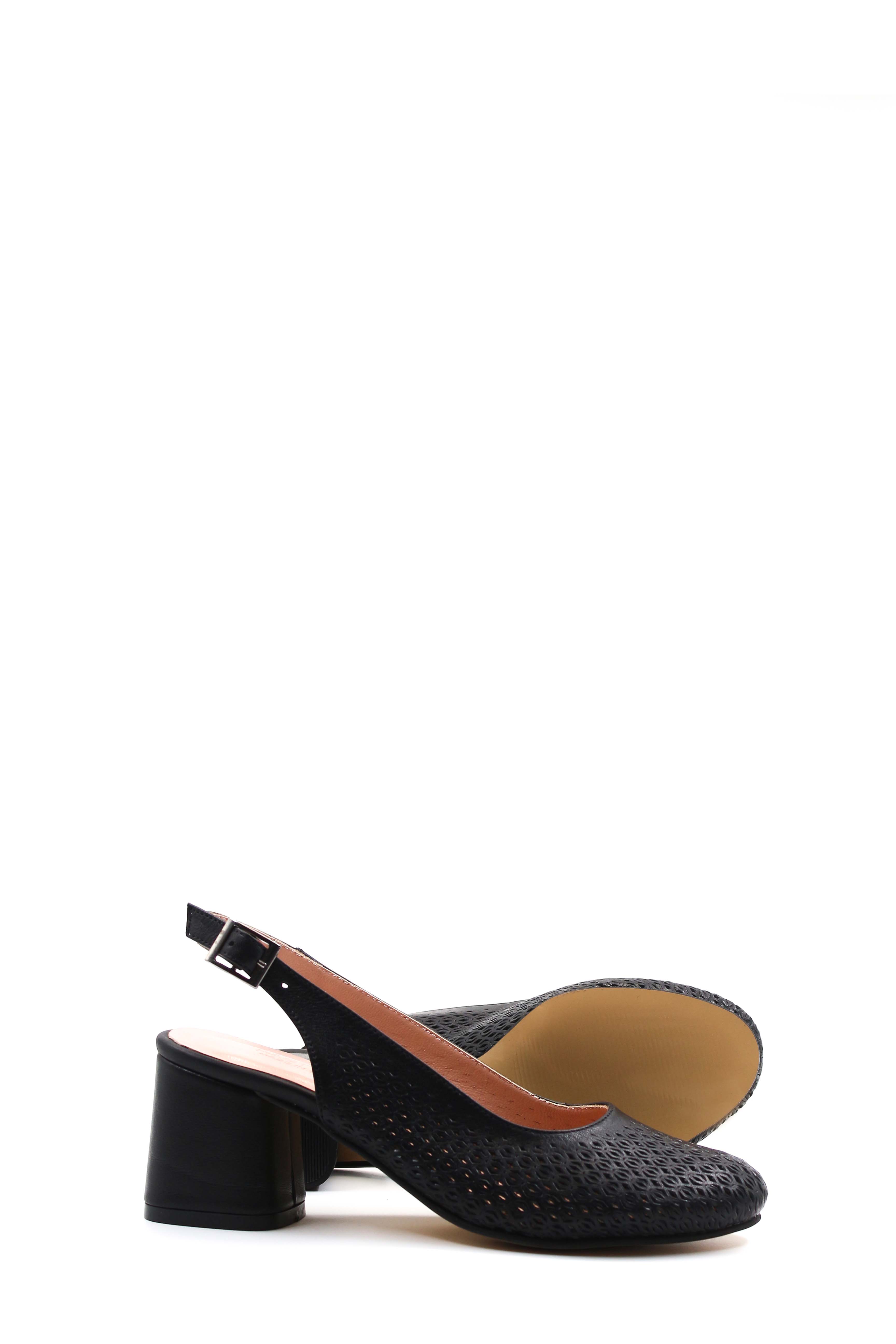 Tugerdi Siyah Hakiki Deri Jurdan Taban Kemerli Kadın Topuklu Ayakkabı TG0912926511