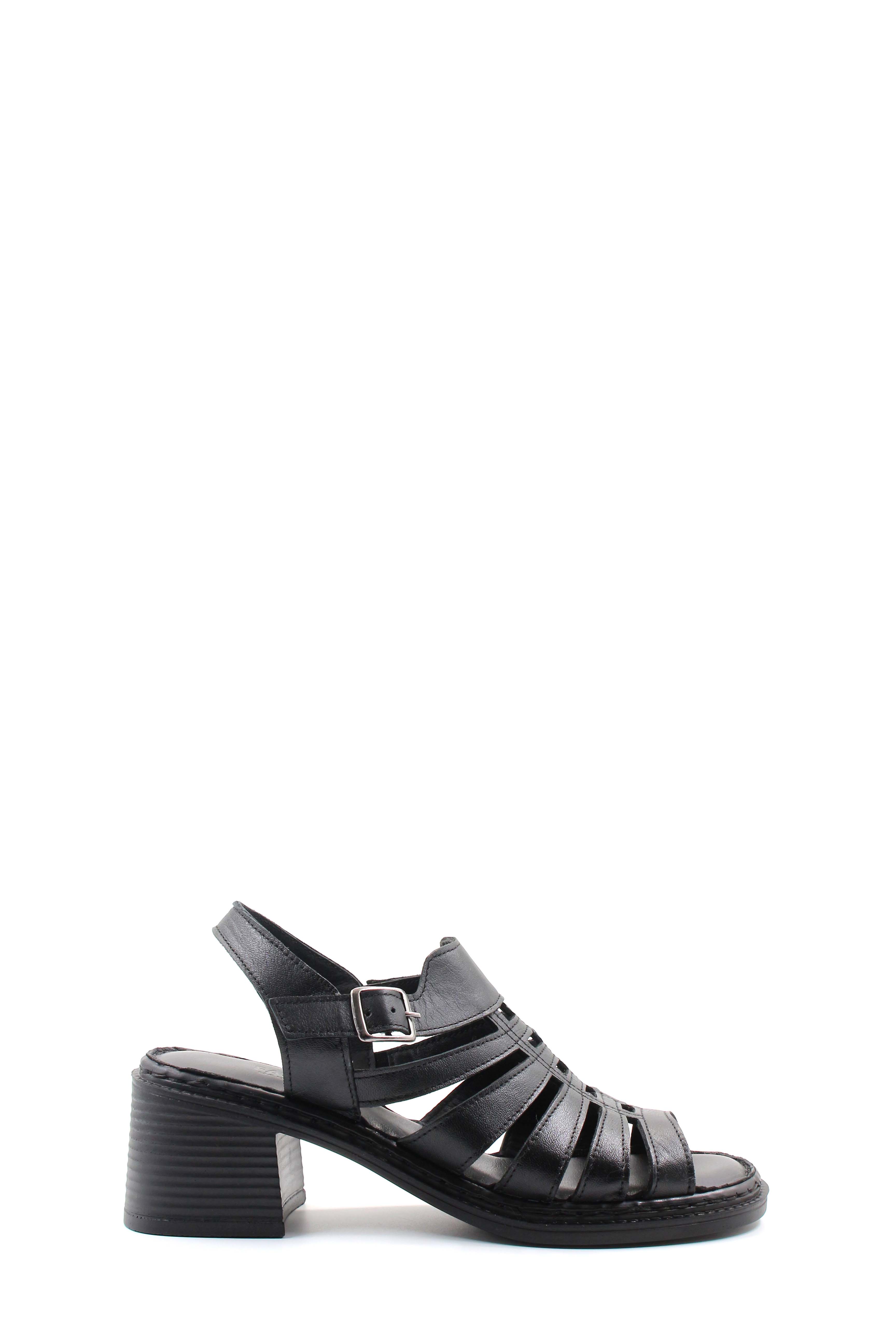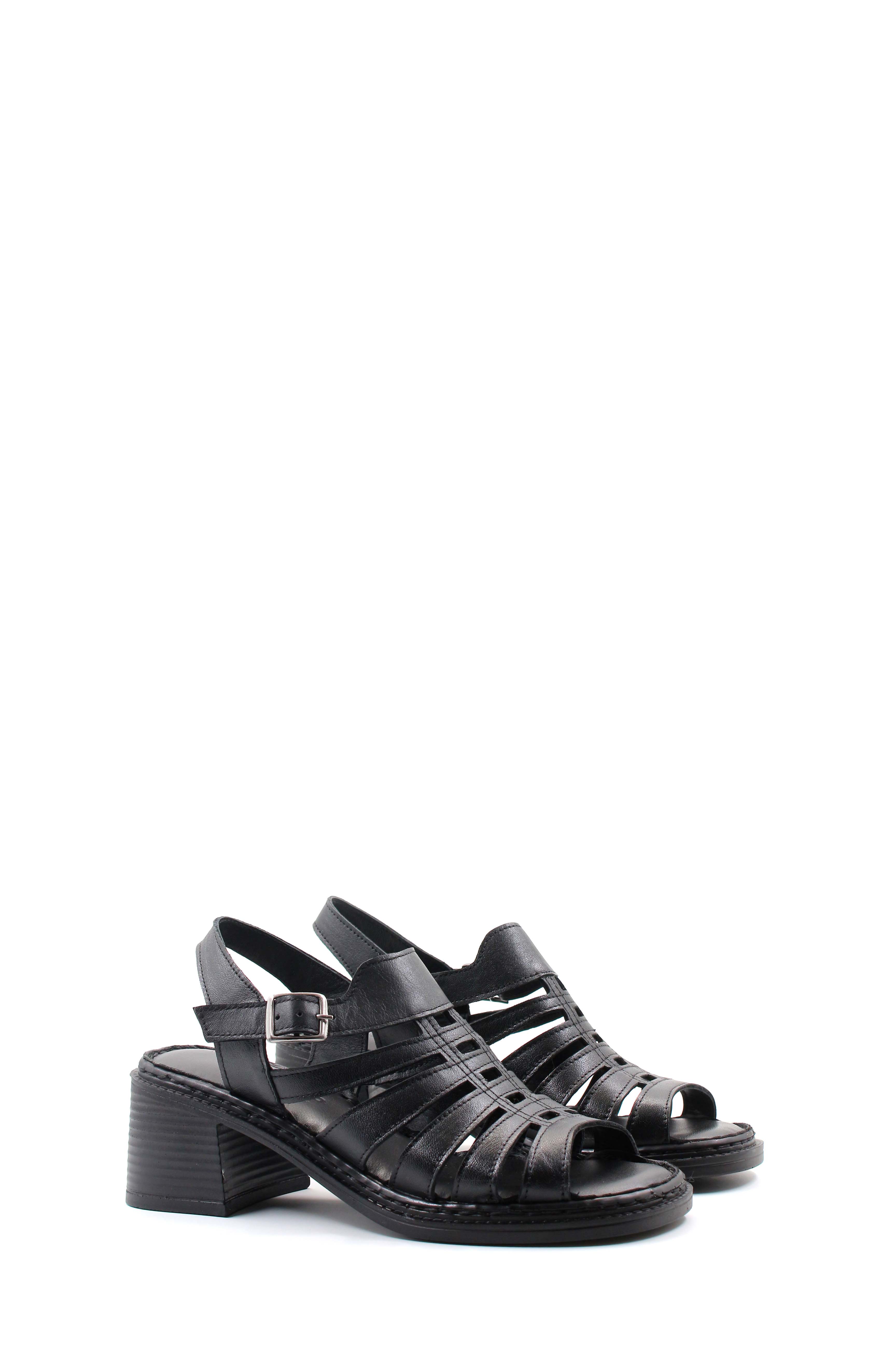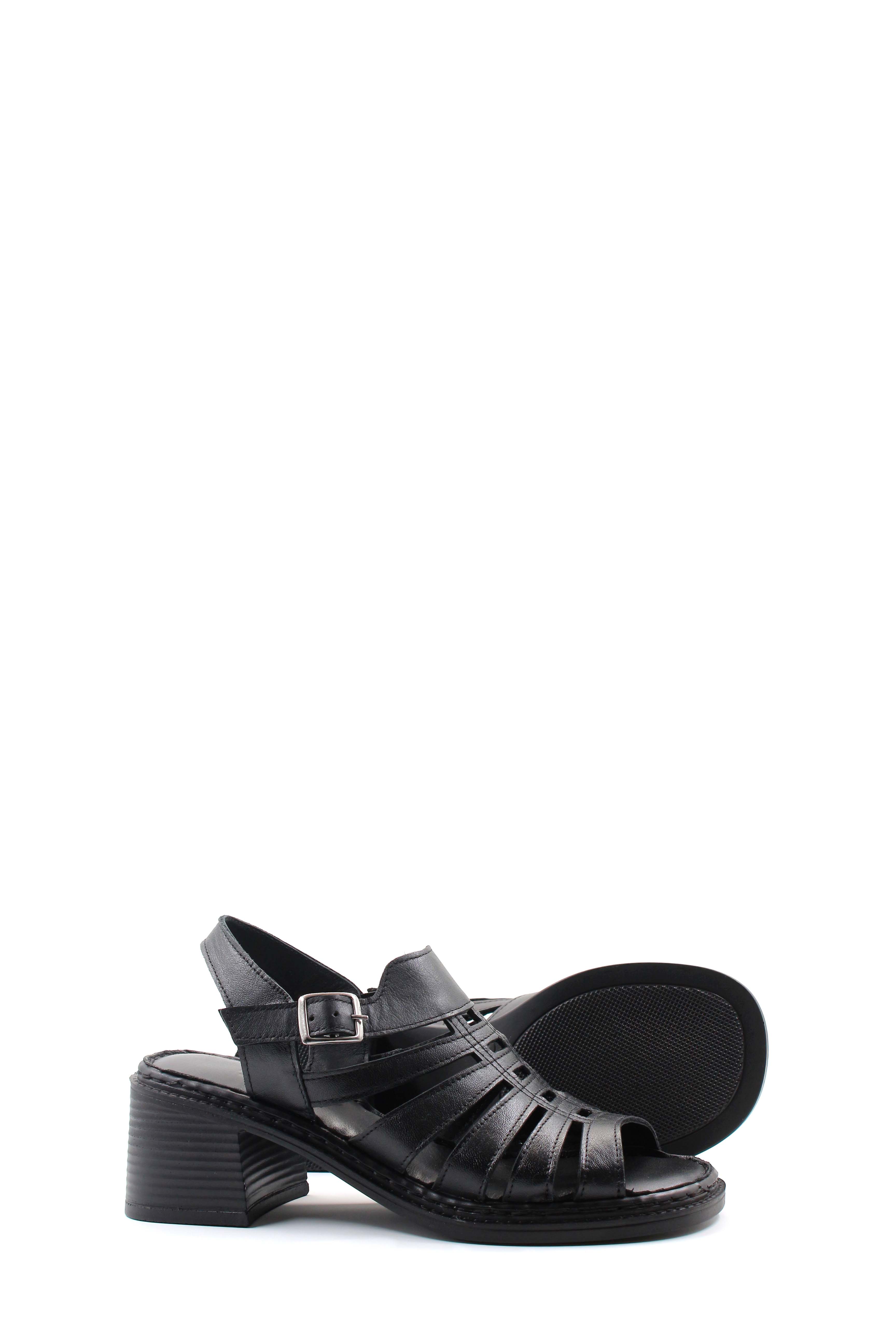 Kadın Tugerdi Siyah Hakiki Deri Hafif Taban Dolgu Topuk Kemerli Kadın Sandalet TG09621261931122