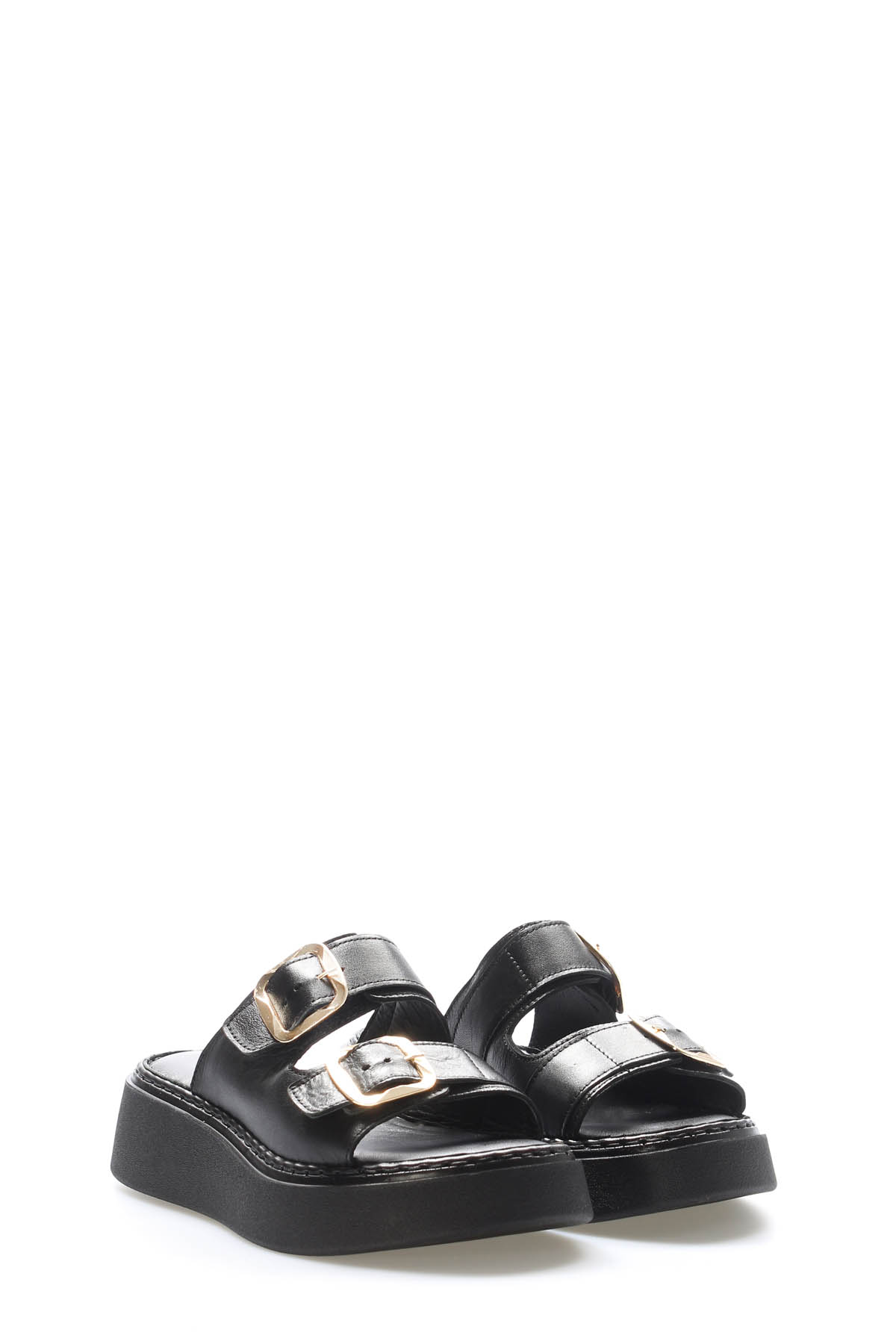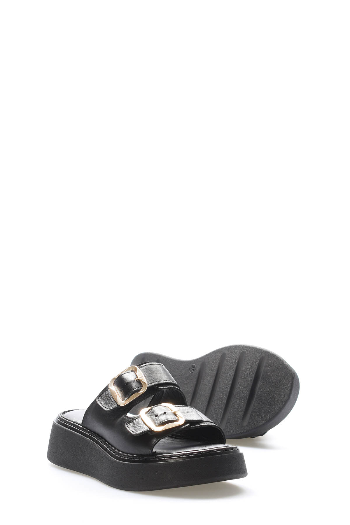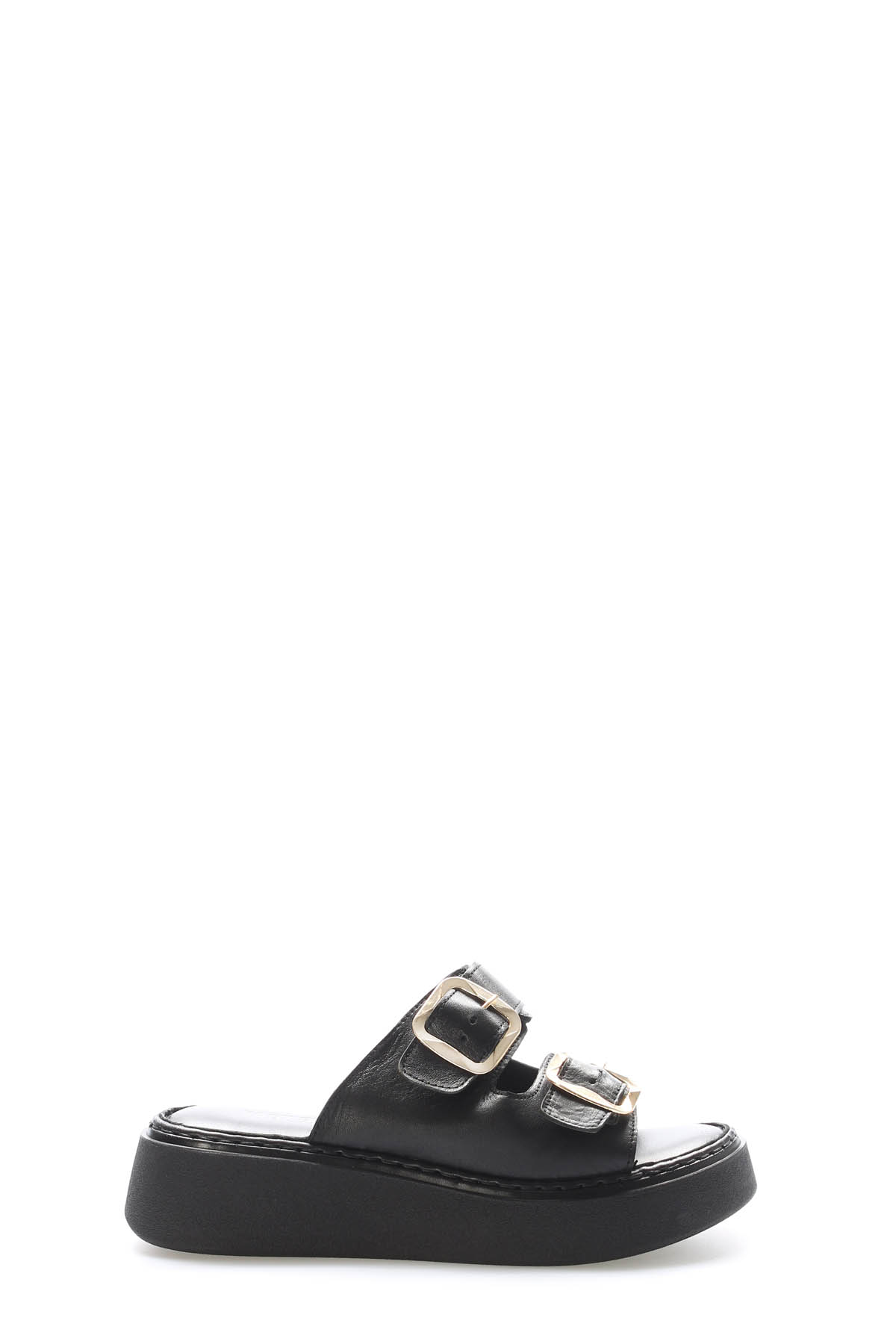 • Tugerdi Siyah İçi Dışı Hakiki Deri Kemerli Klasik Kadın Terlik TG096212611550