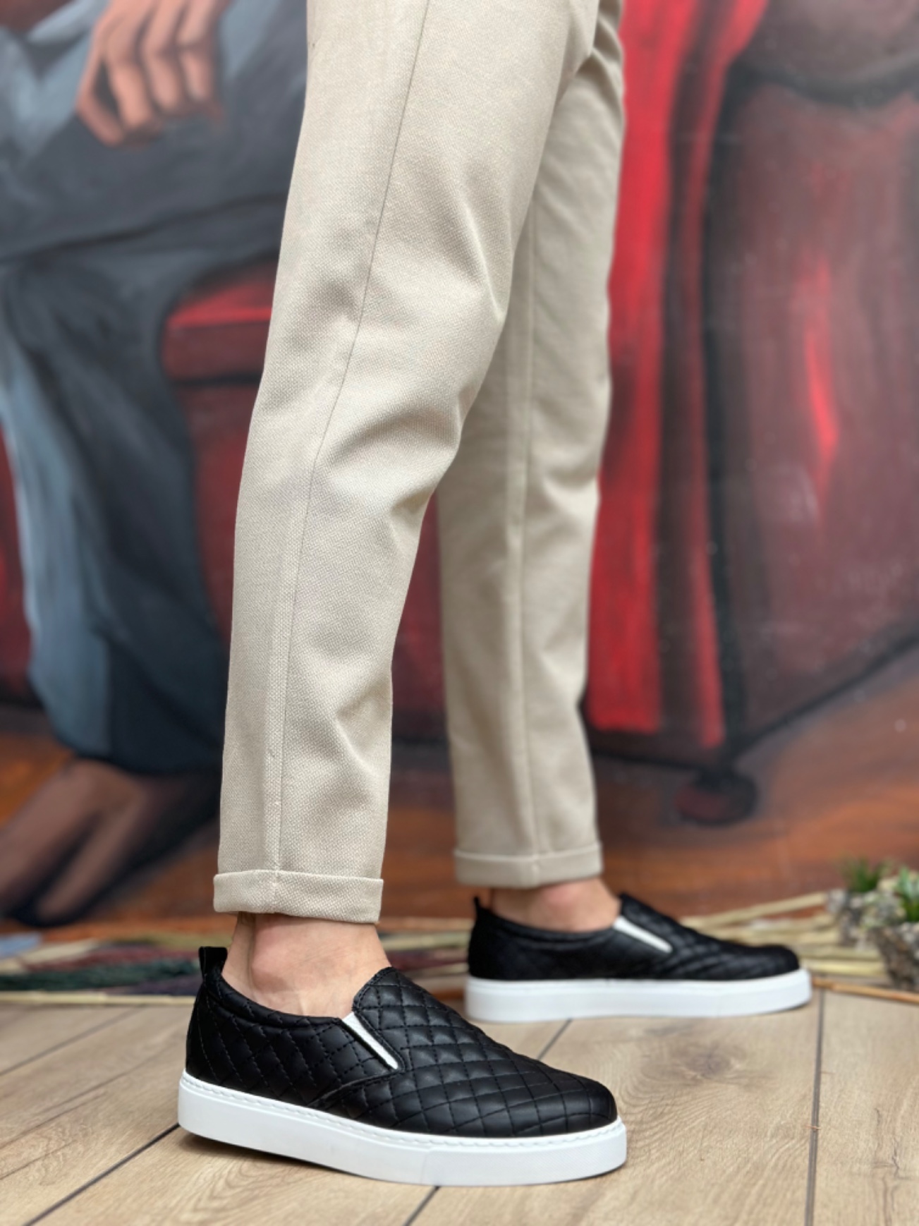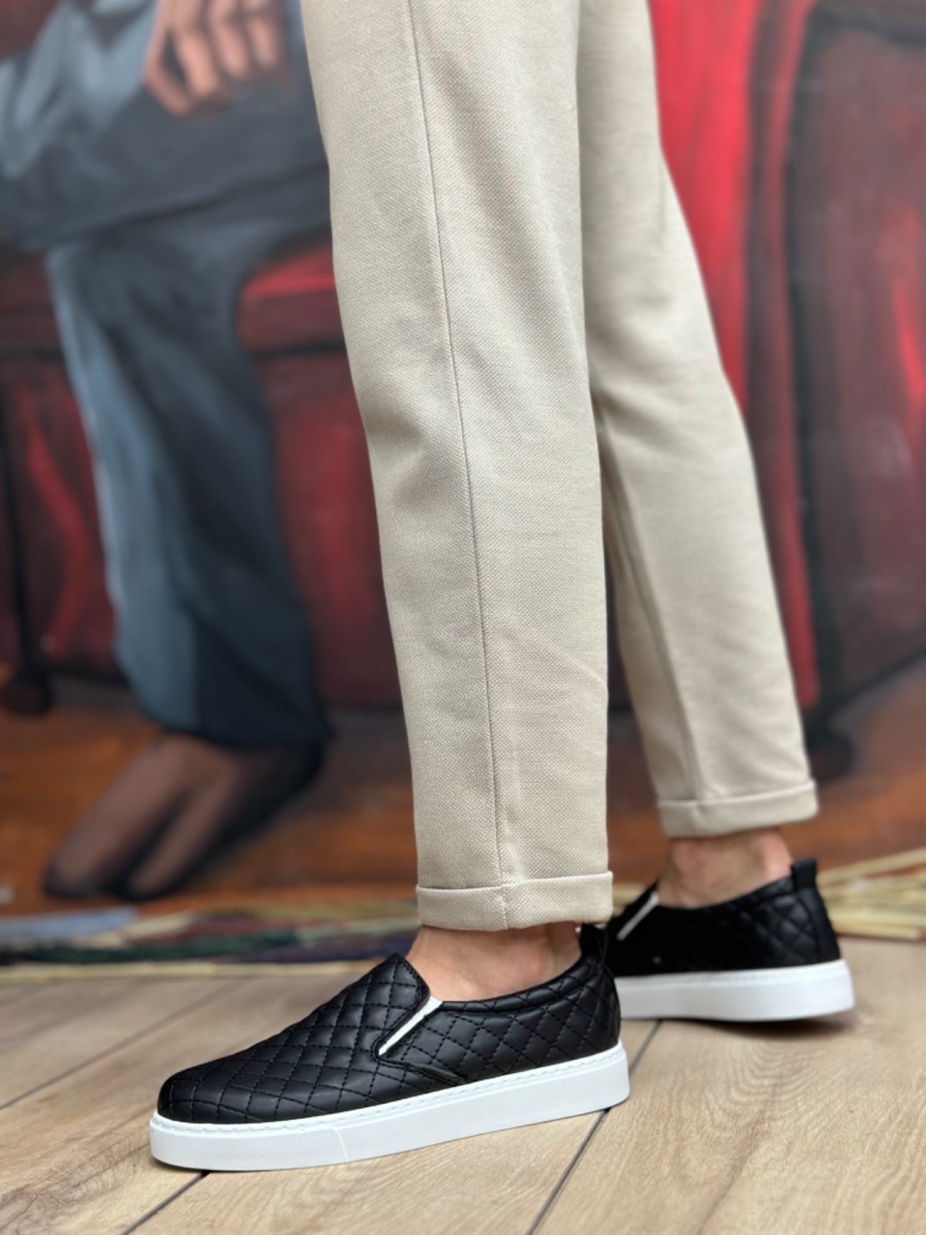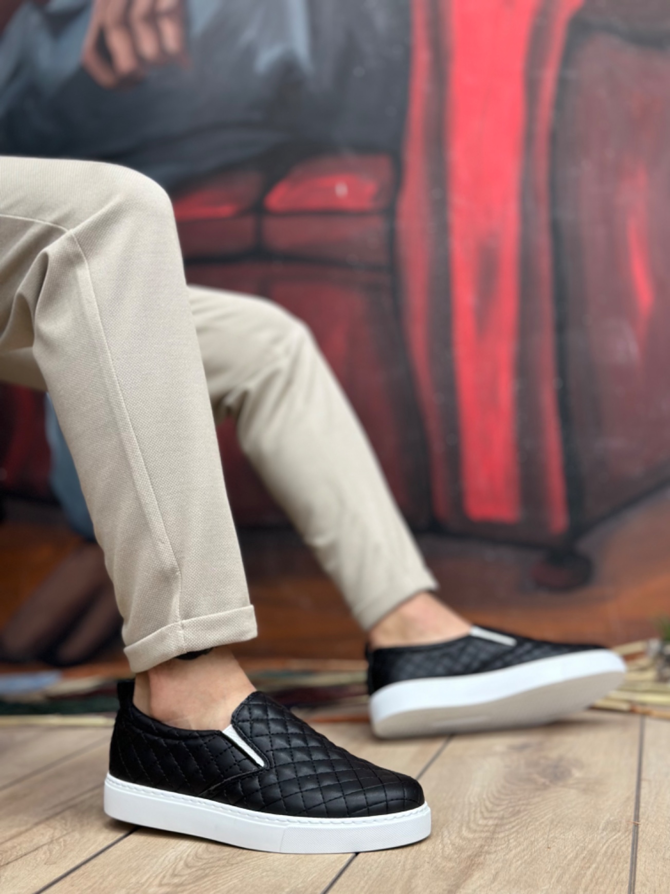 • Tugerdi Siyah Kapitone Hafif Beyaz Taban Günlük Erkek Ayakkabı TGE230503