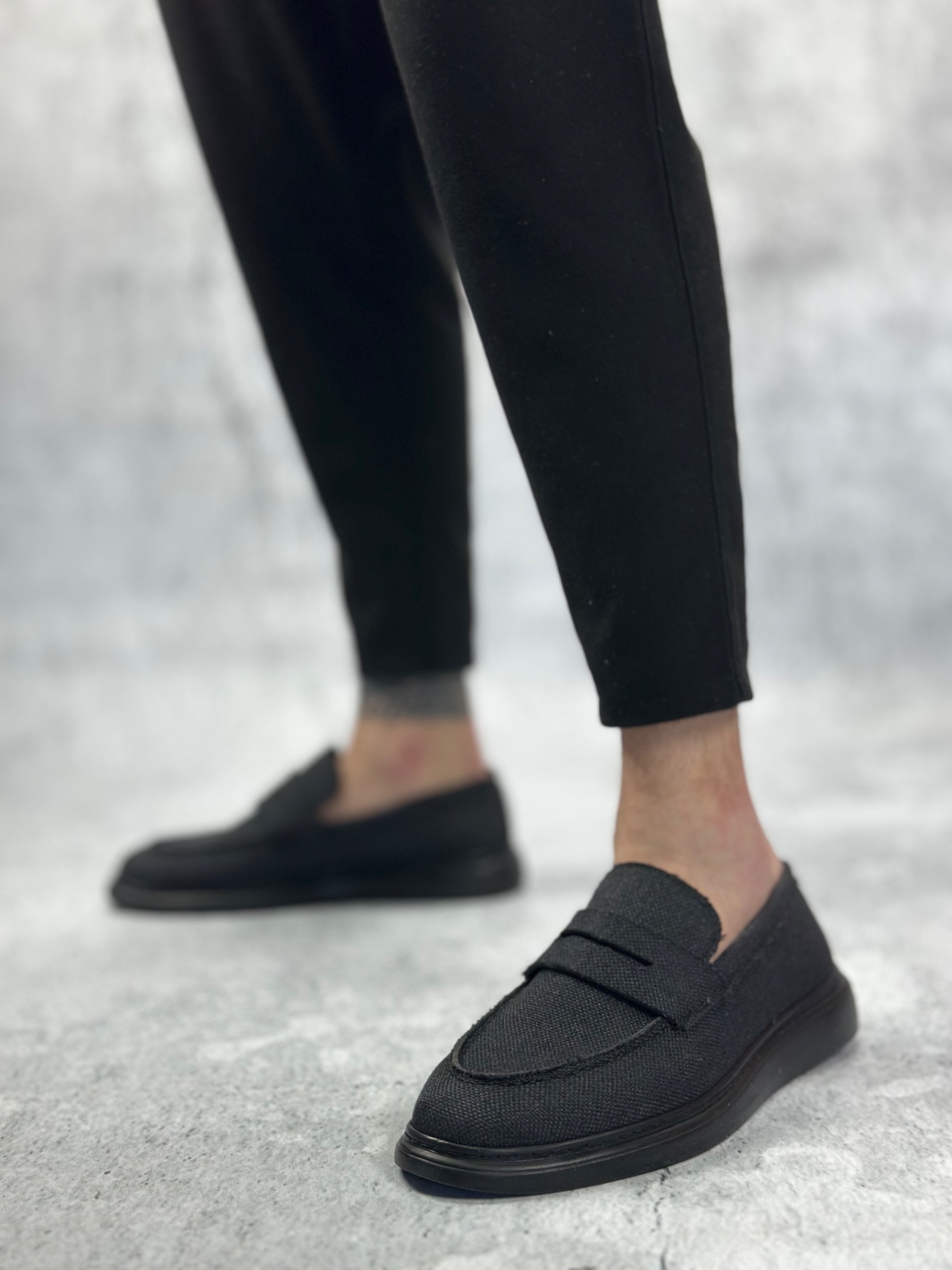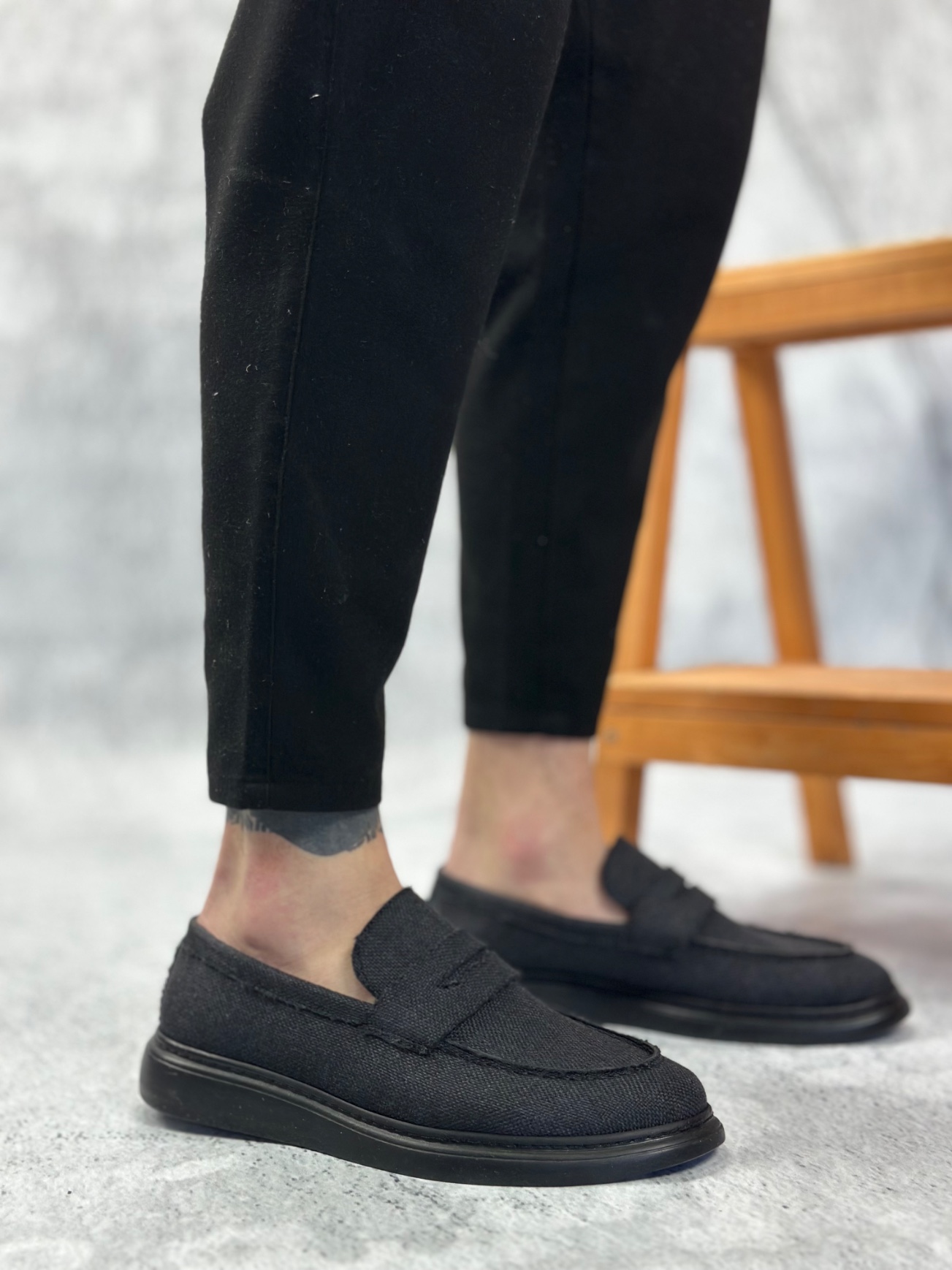 Yüksek Taban Tugerdi Siyah Keten Bağcıksız Hafif Siyah Taban Klasik Corcik Erkek Ayakkabı TGE230505