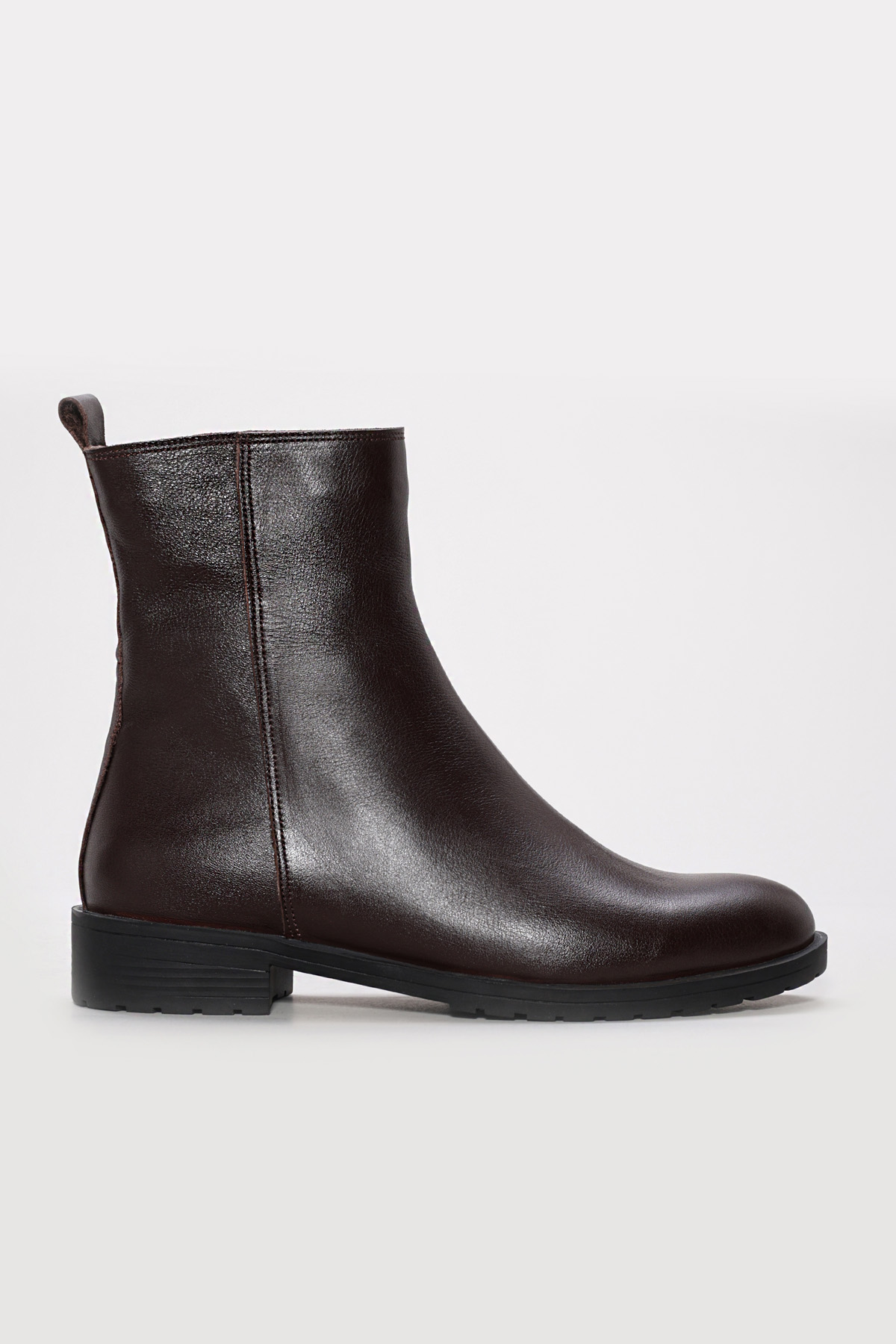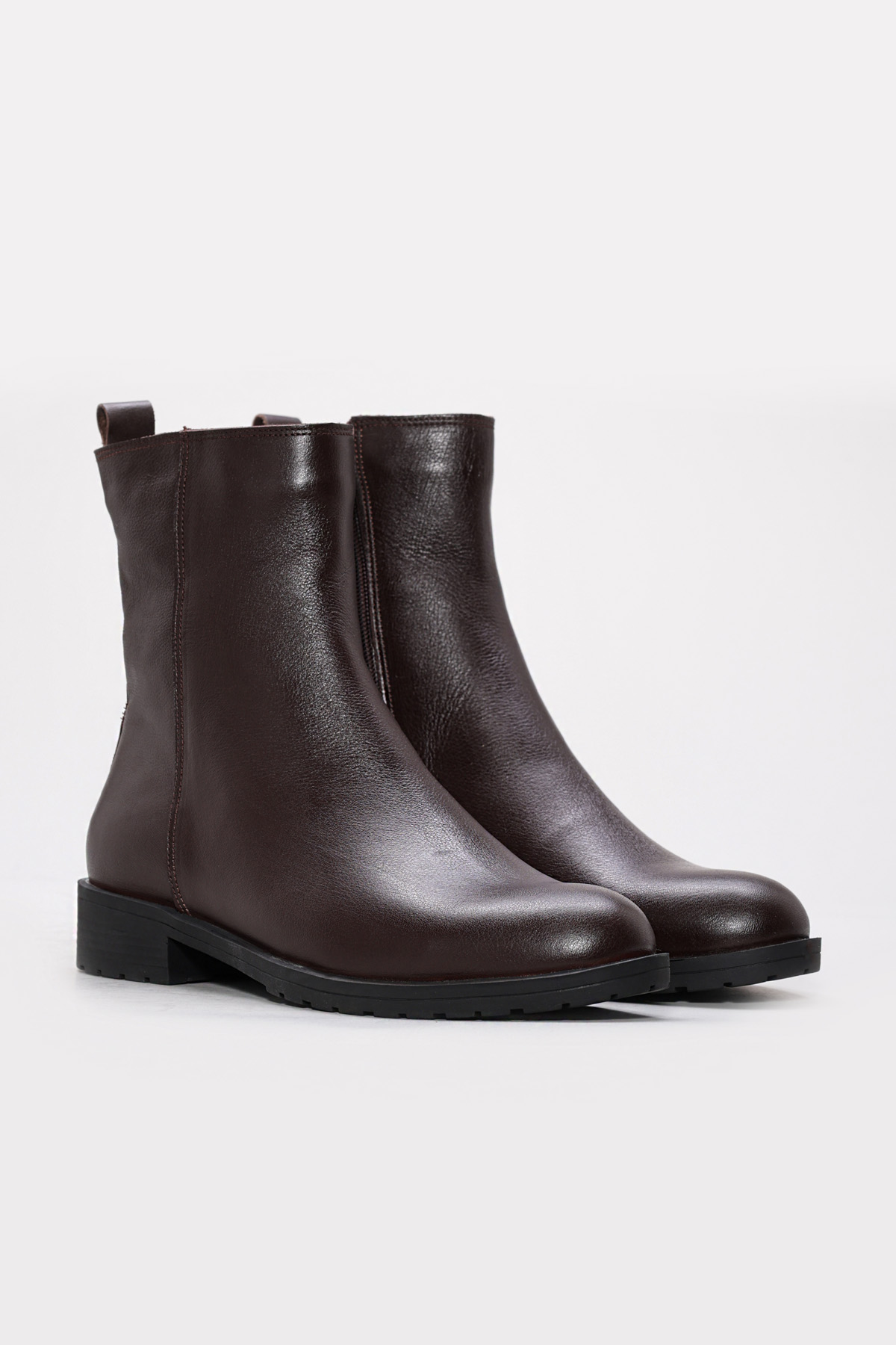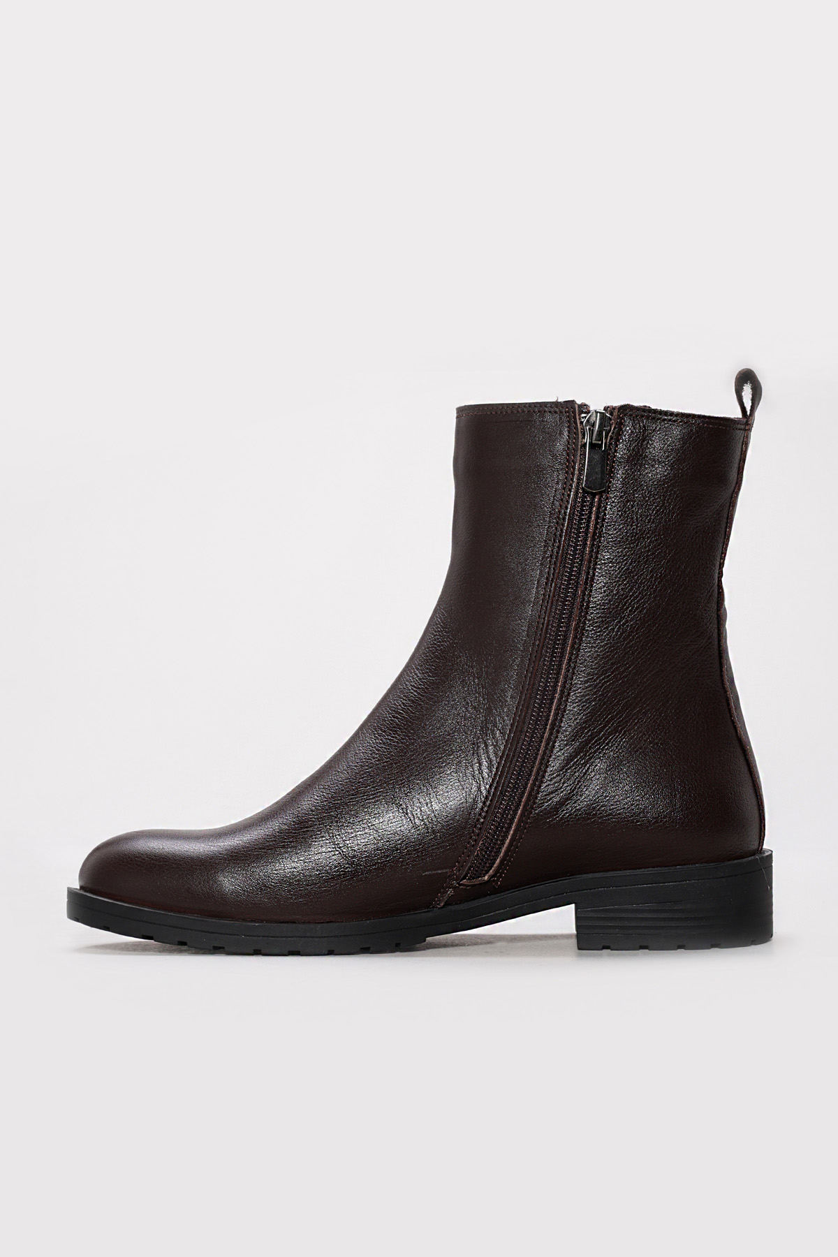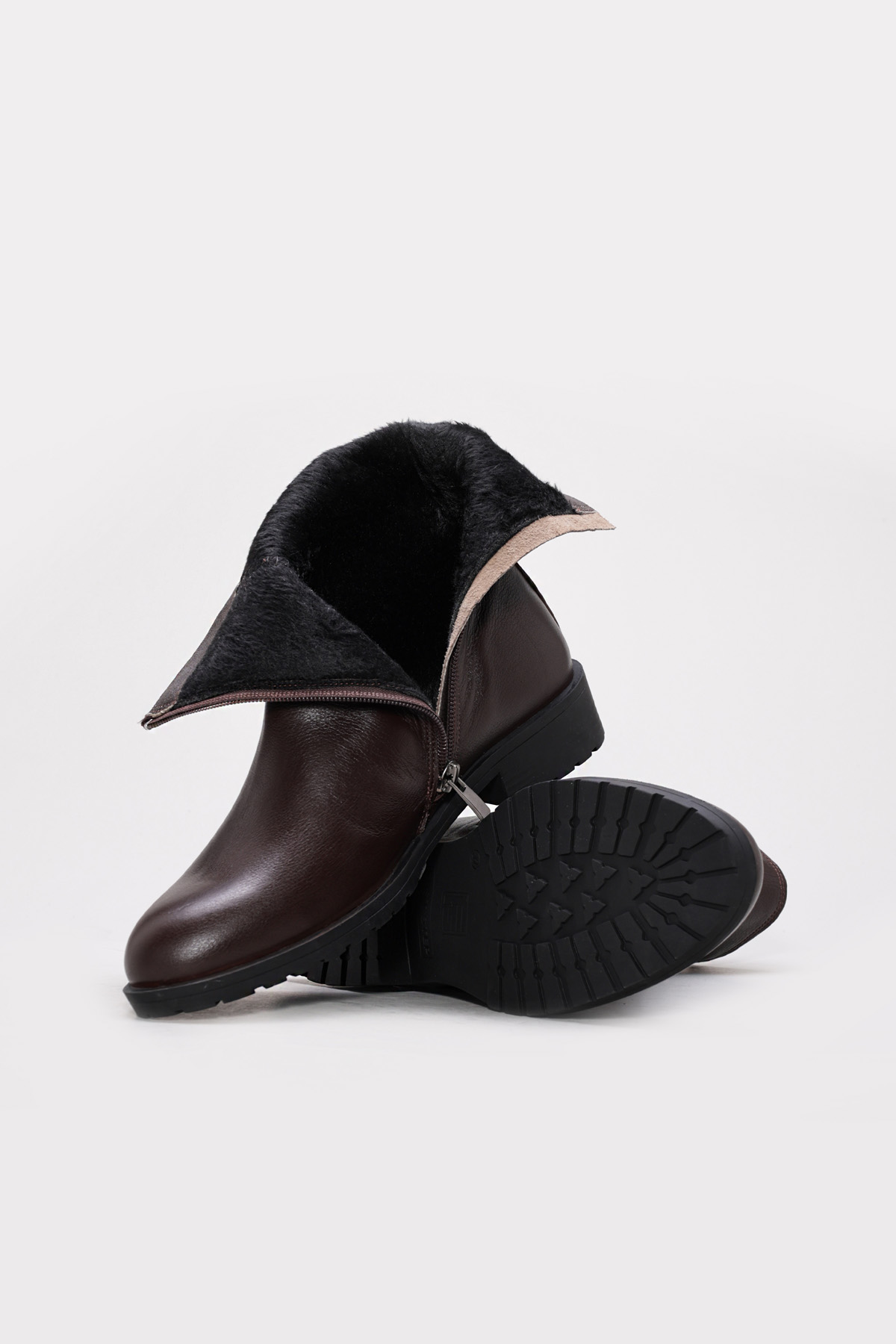 • Tugerdi Kahve İçi Dışı Hakiki Deri Fermuarlı Termo Taban Klasik Kadın Bot TG09257192611040