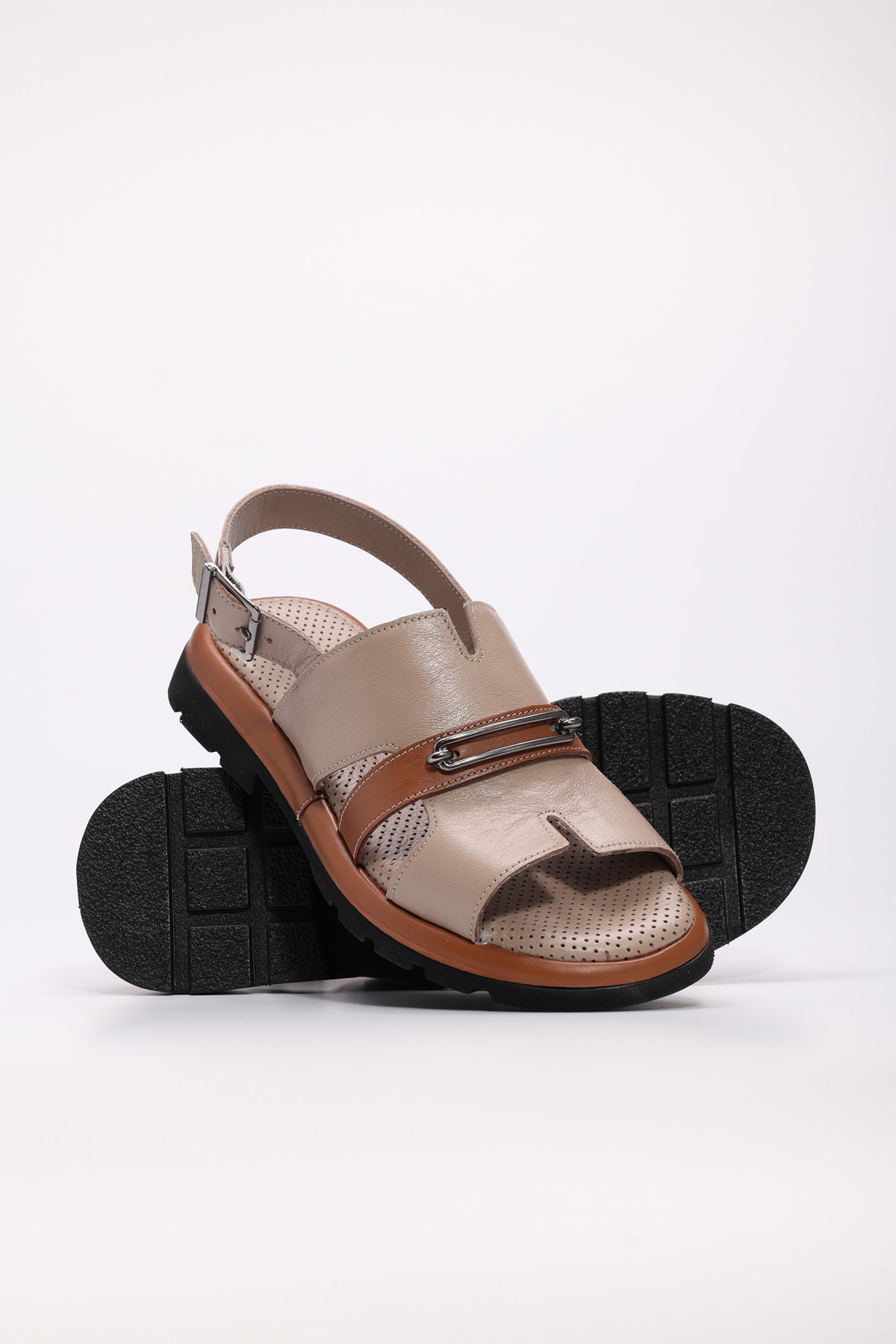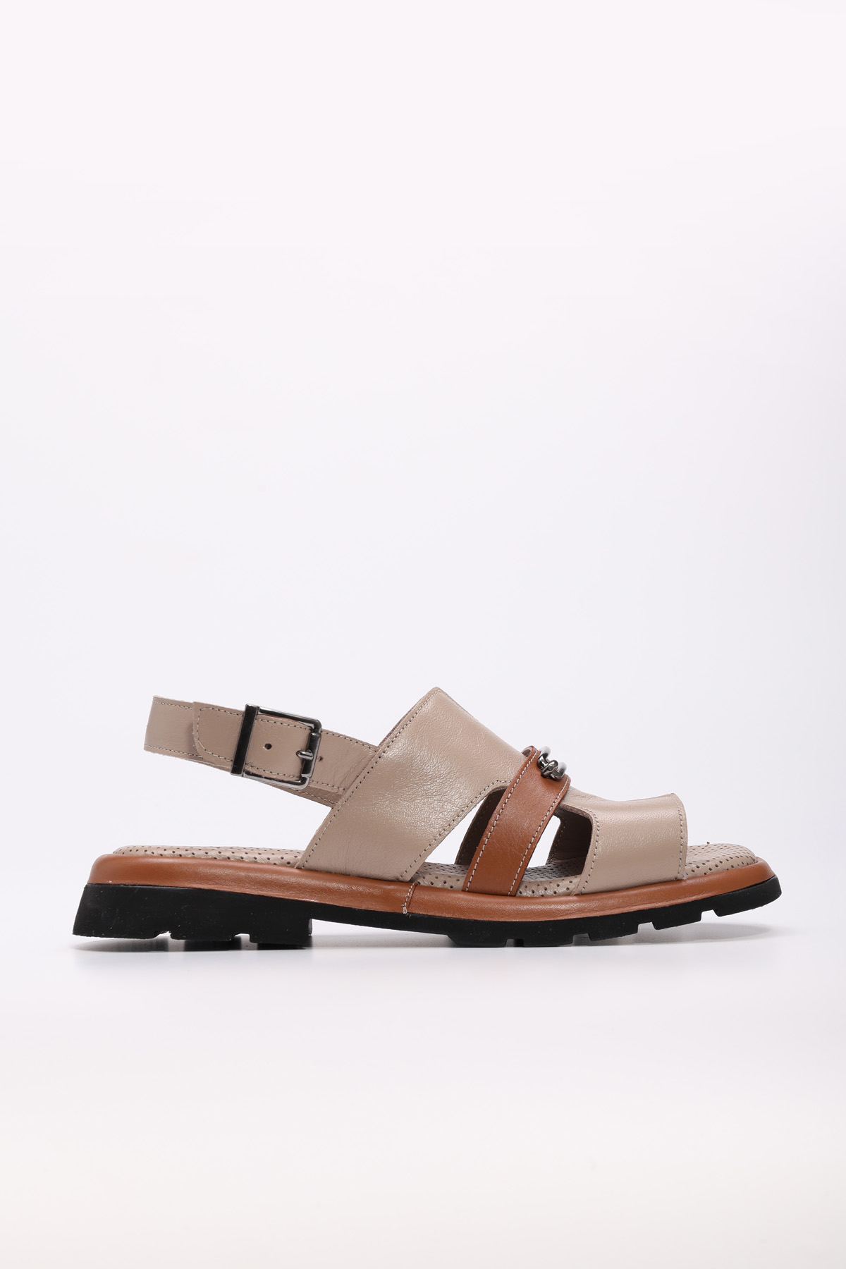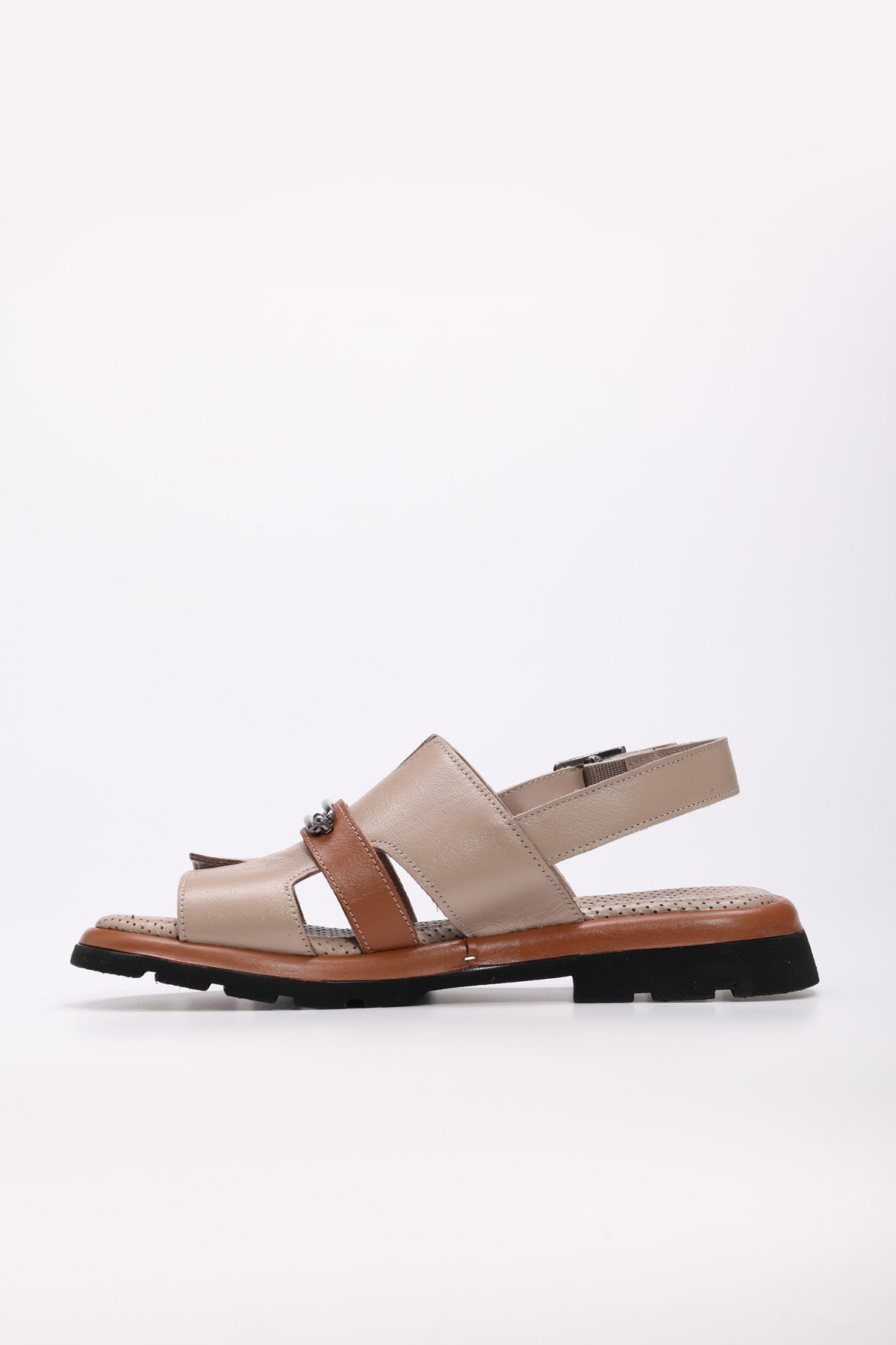Tugerdi Vizon Taba Hakiki Deri Kemerli Hafif Taban Kaliteli Kadın Sandalet TG097102611403