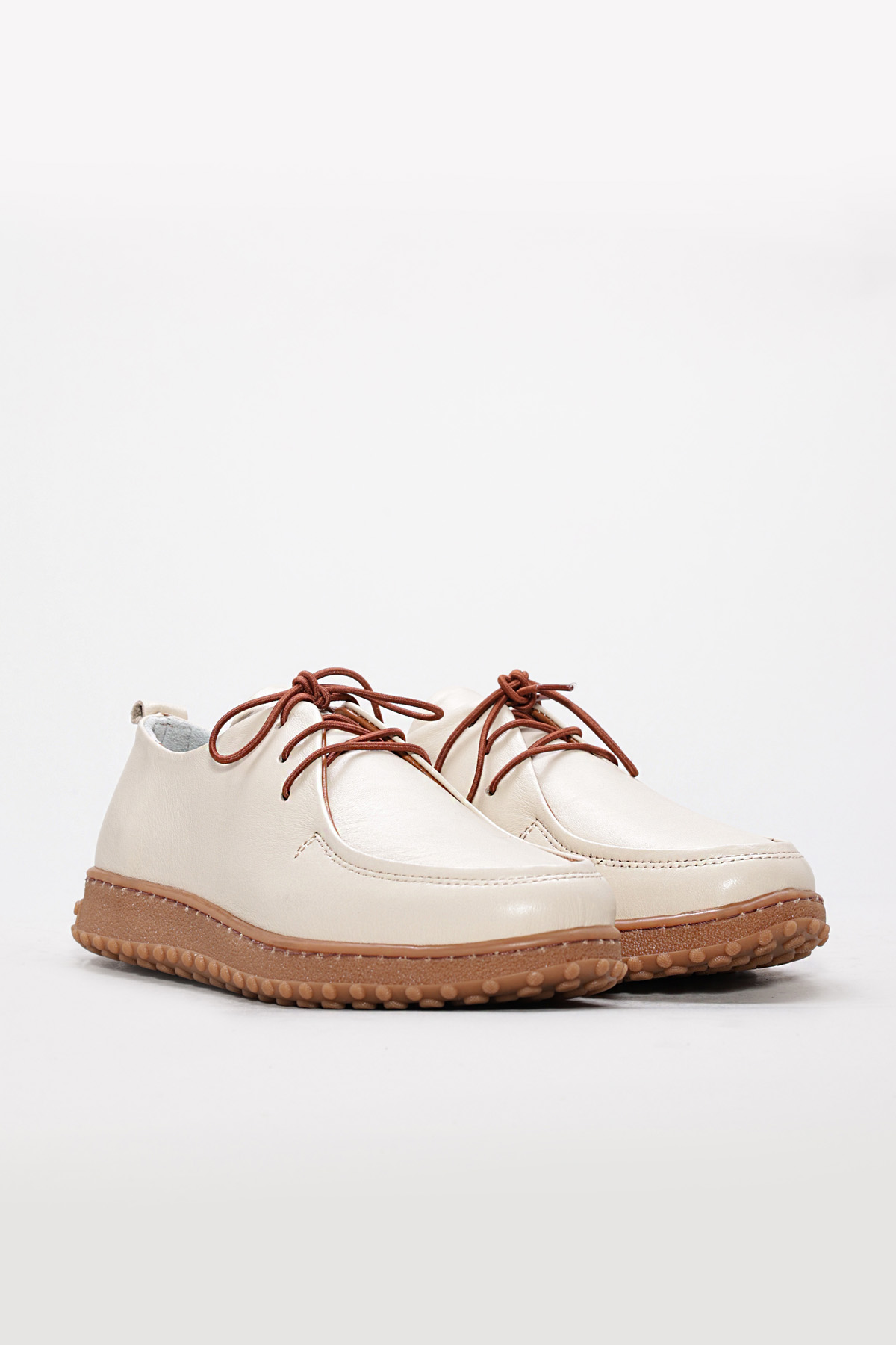 • Tugerdi Bej İçi Dışı Hakiki Deri Bağcıklı Hafif Taban Günlük Kadın Ayakkabı TG0958326121020