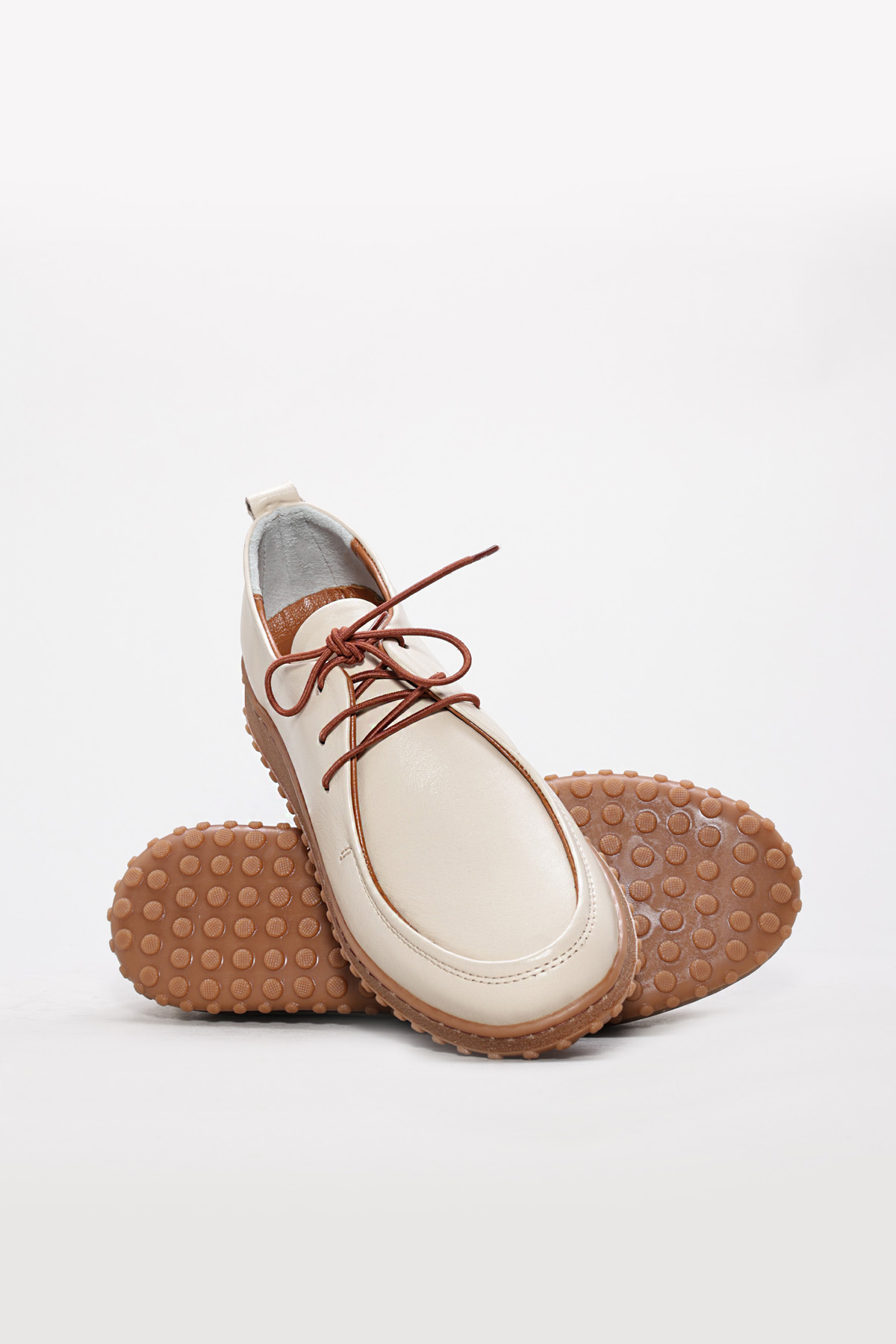 Tugerdi Bej İçi Dışı Hakiki Deri Bağcıklı Hafif Taban Günlük Kadın Ayakkabı TG0958326121020