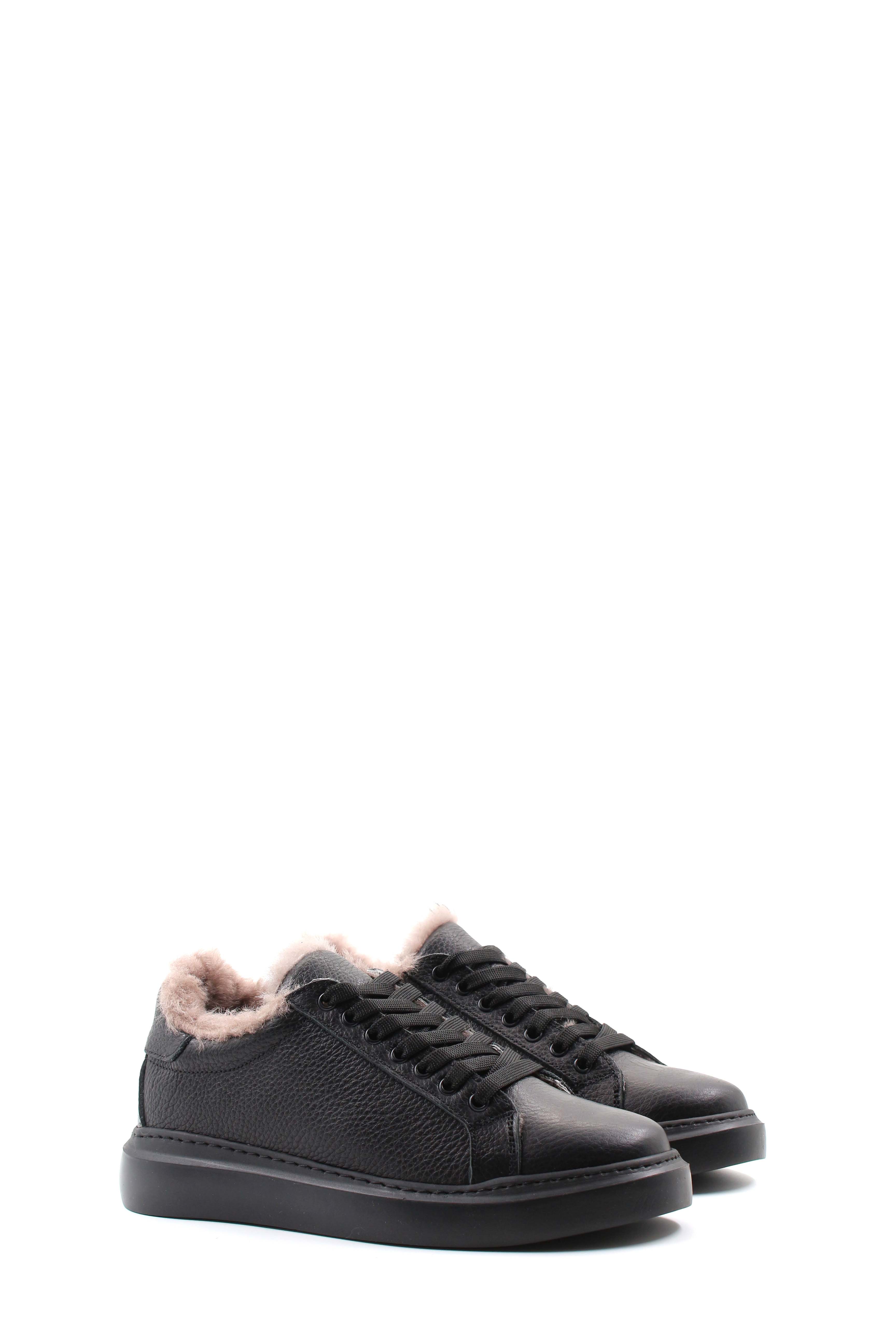 Tugerdi İçi Kürklü Dışı Hakiki Floter Deri Siyah Kadın Ayakkabı AH08160112611055