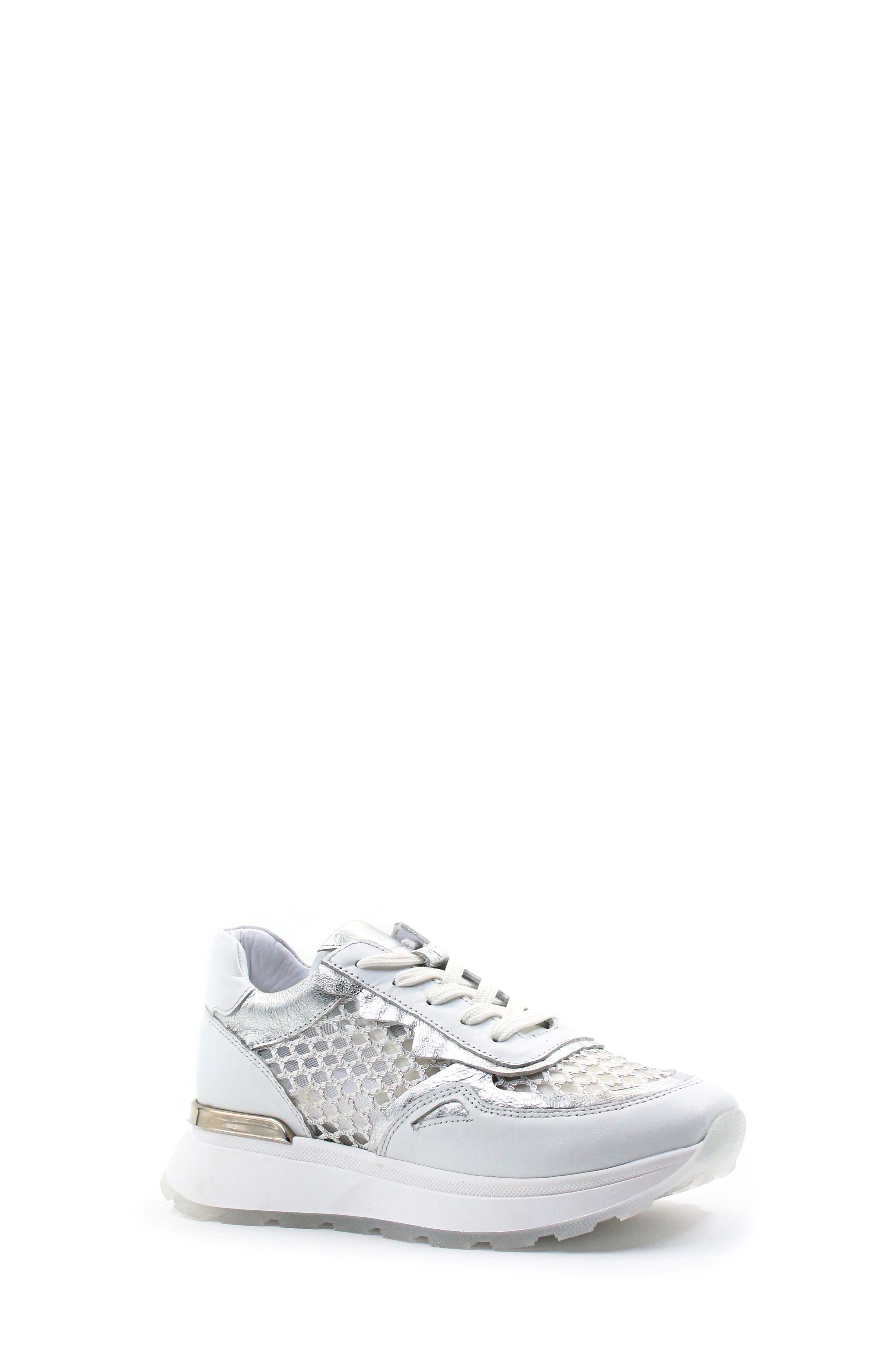 Tugerdi Beyaz Gümüş Hakiki Deri Bağcıklı Kaliteli Kadın Spor Ayakkabı TG0975726124461