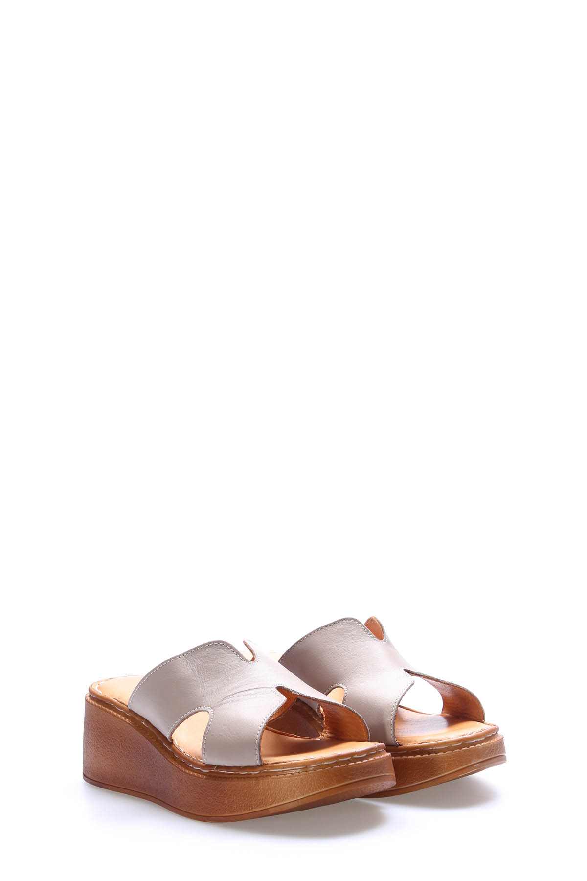 Tugerdi Vizon Hakiki Deri Hafif Taban Dolgu Topuklu Kaliteli Kadın Terlik TG09972ZA1670