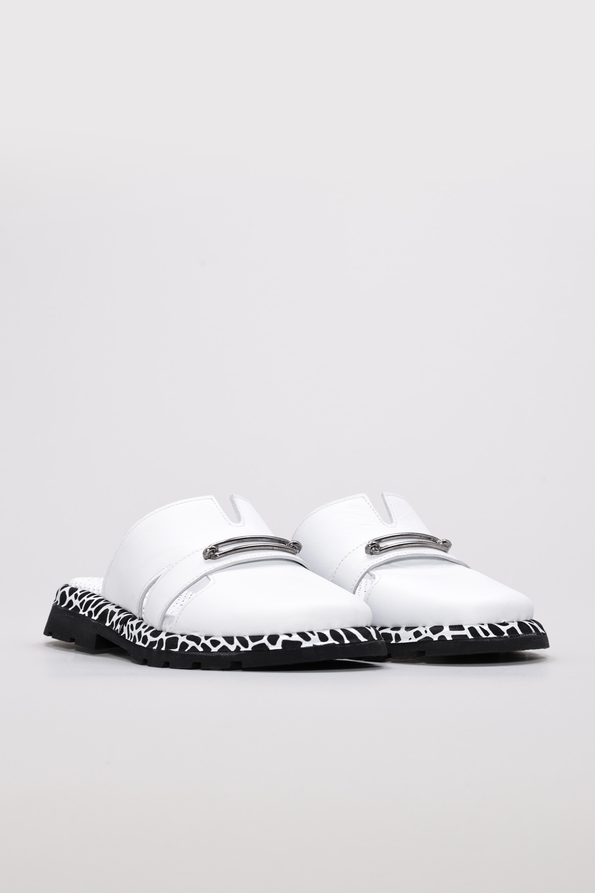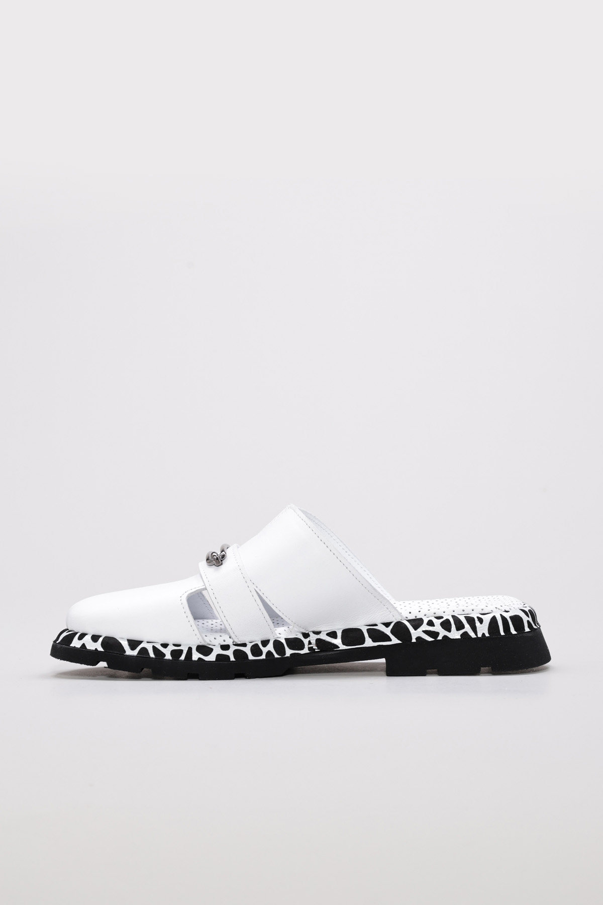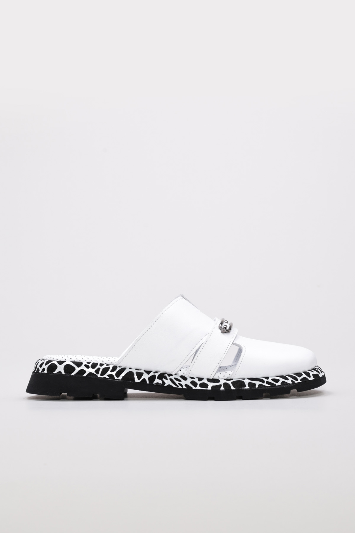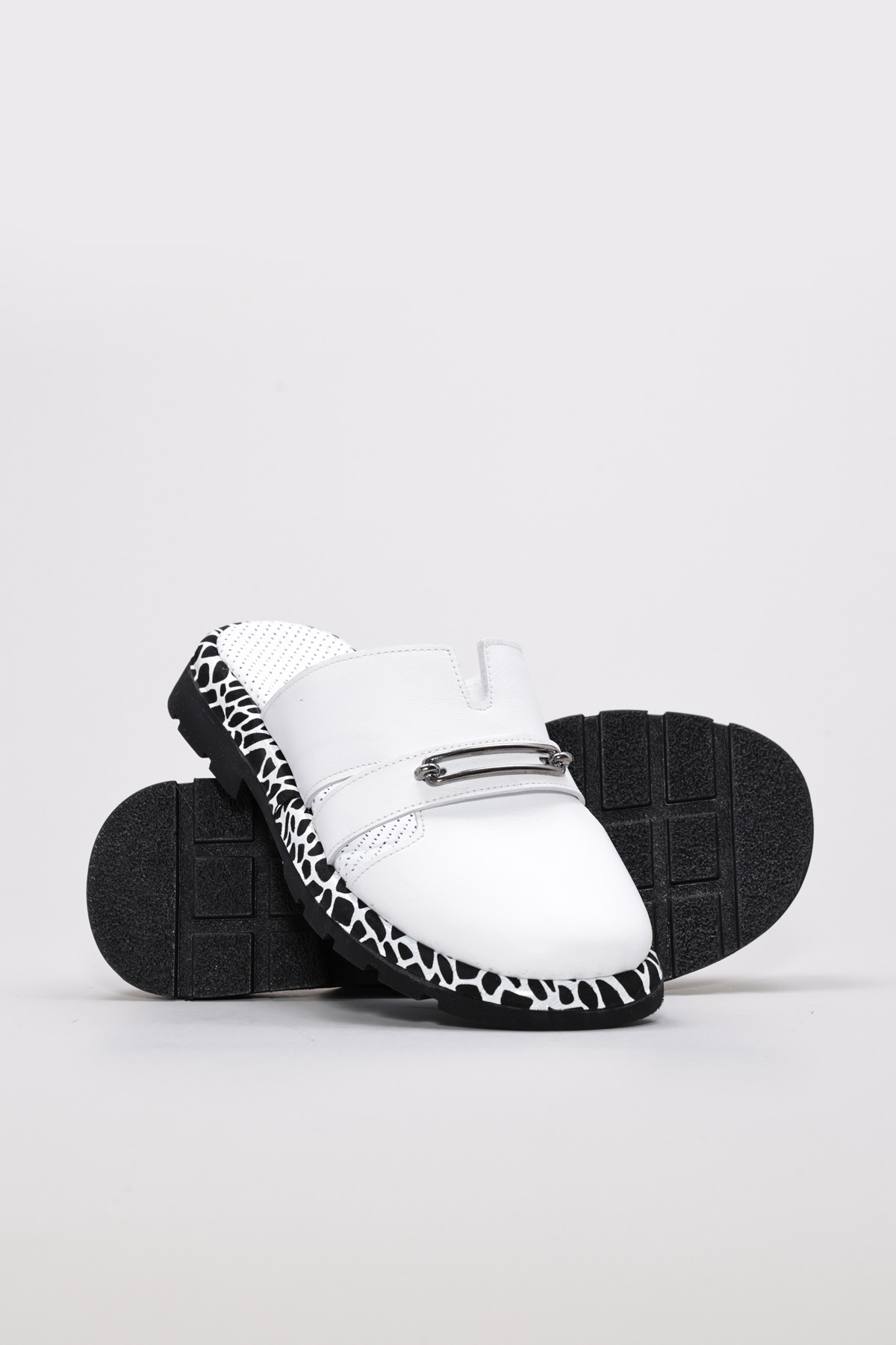 Tugerdi Beyaz Hakiki Deri Hafif Taban Kaliteli Düz Kadın Terlik TG0971026191331