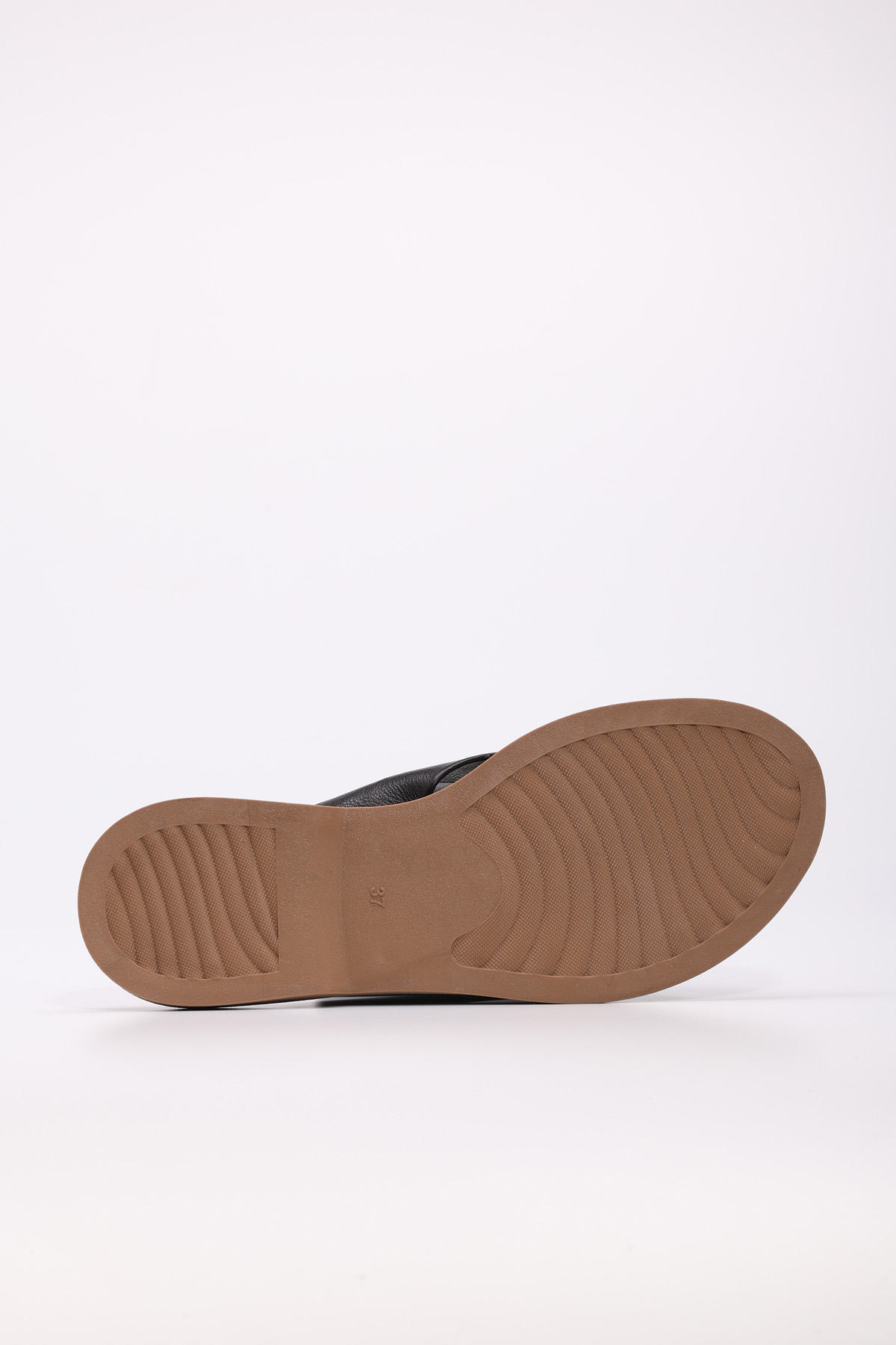 Kadın Terlik Tugerdi Siyah İçi Dışı Hakiki Deri Hafif Taban Çapraz Kadın Terlik TG099722611611