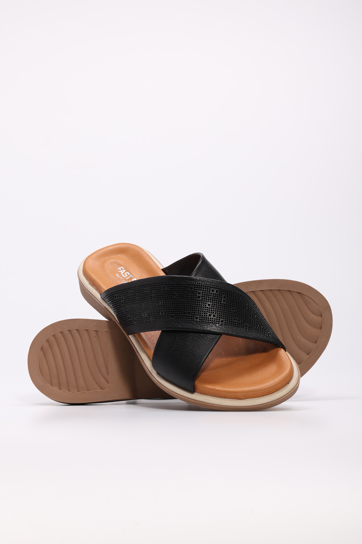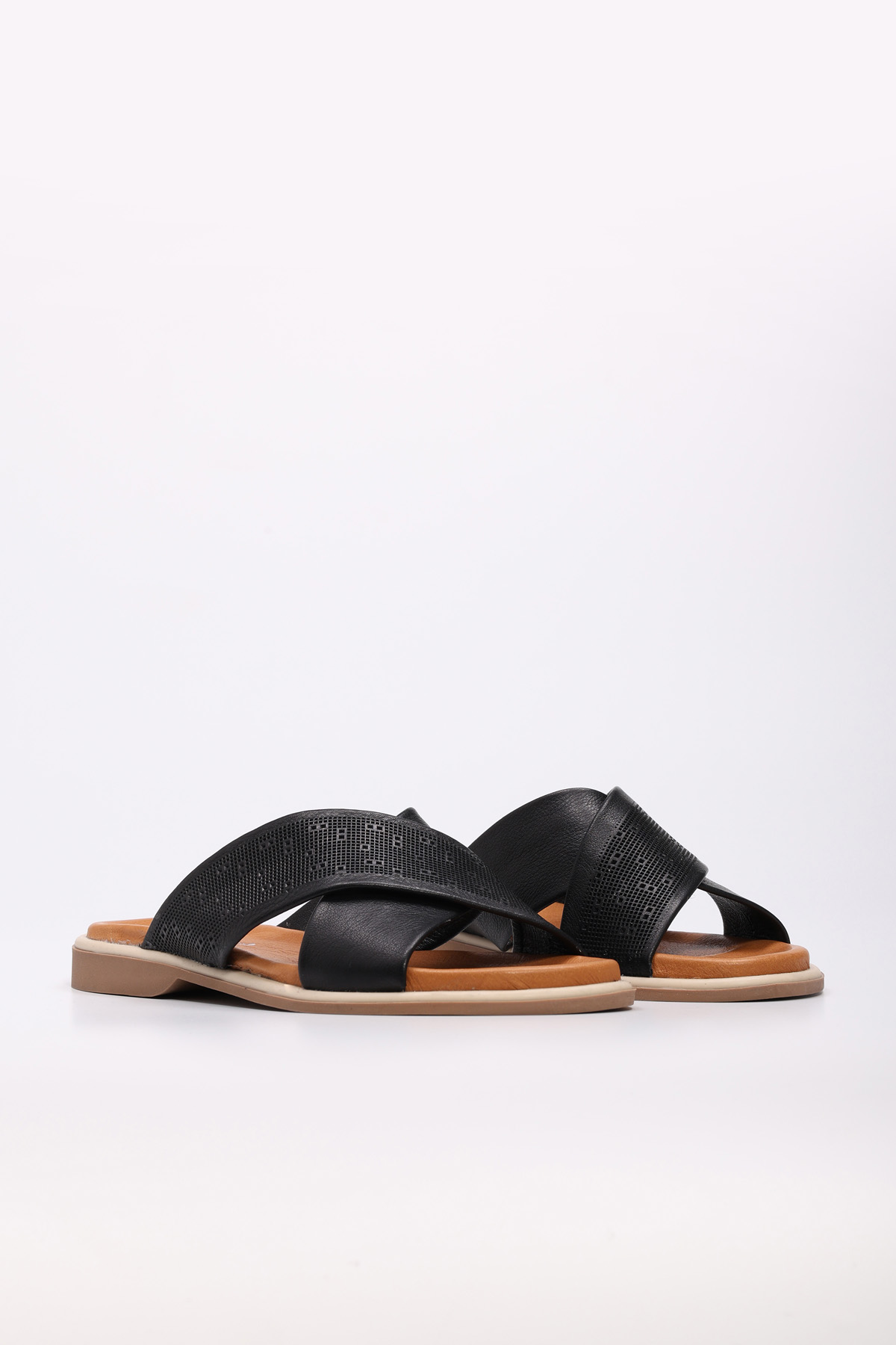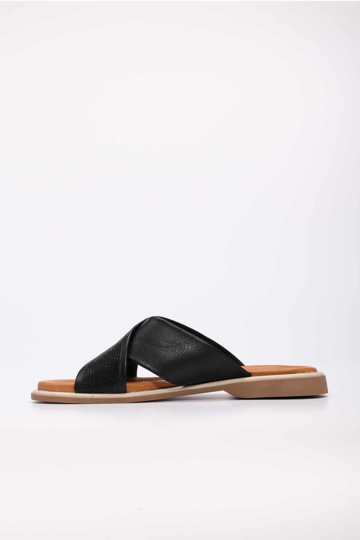 • Tugerdi Siyah İçi Dışı Hakiki Deri Hafif Taban Çapraz Kadın Terlik TG099722611611