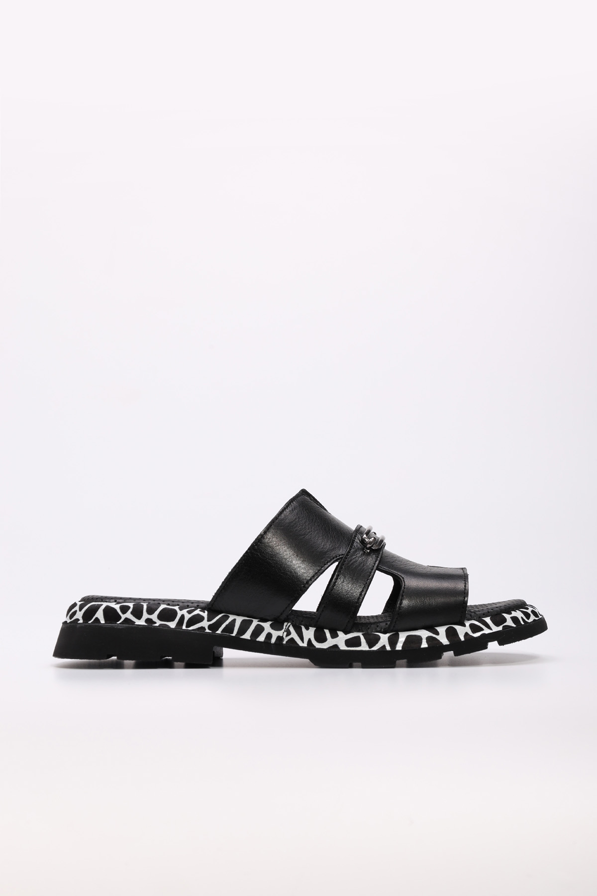 • Tugerdi Siyah Hakiki Deri Hafif Taban Kaliteli Kadın Düz Terlik TG097102611402