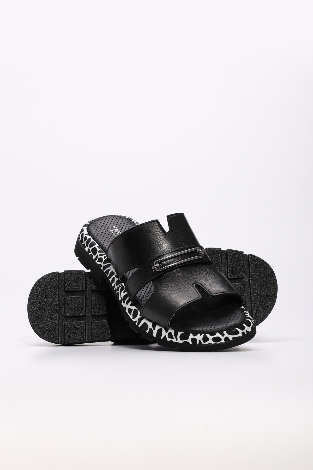 Tugerdi Siyah Hakiki Deri Hafif Taban Kaliteli Kadın Düz Terlik TG097102611402