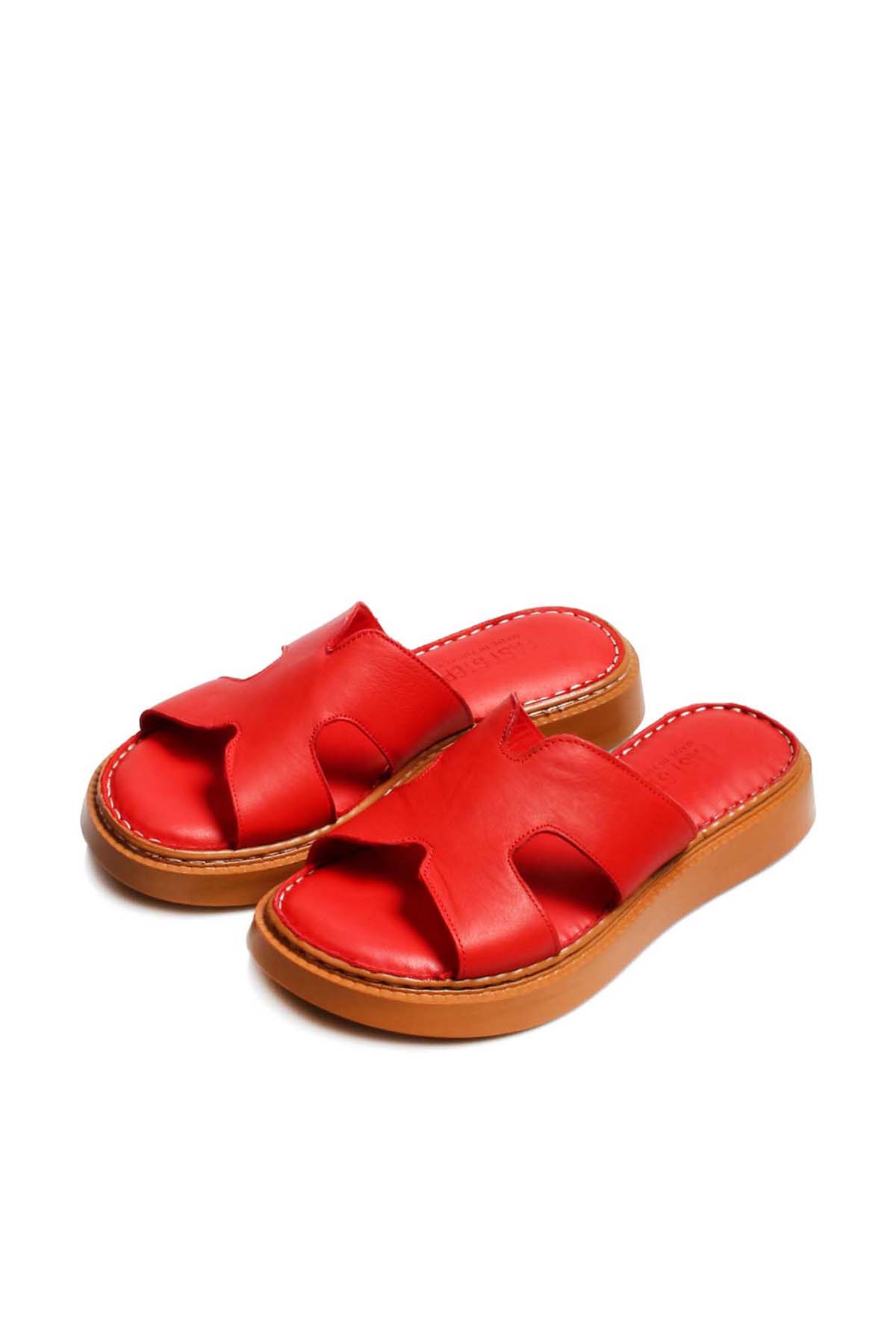 Kadın Terlik Tugerdi Hakiki Deri Kırmızı Hafif Taban Kaliteli Kadın Terlik TG096212611238