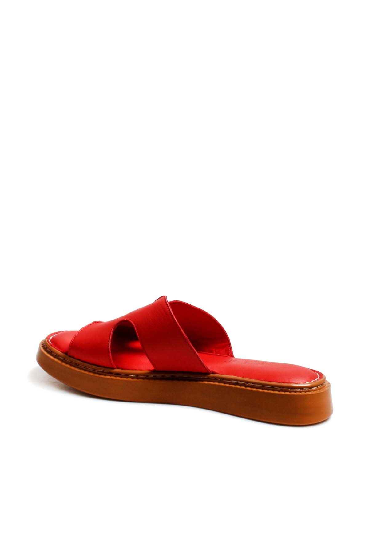 Tugerdi Hakiki Deri Kırmızı Hafif Taban Kaliteli Kadın Terlik TG096212611238
