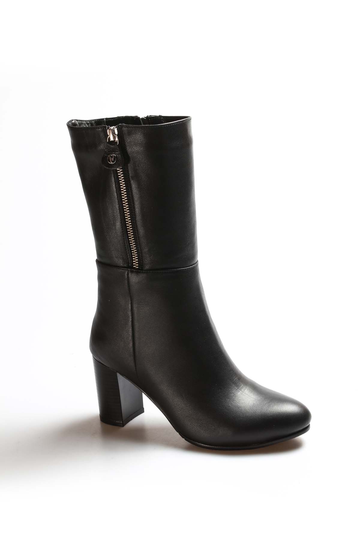 Kadın Çizme Tugerdi Hakiki Deri Siyah Kürklü Fermuarlı Jurdan Taban Topuklu Kadın Çizme TG0906411261836