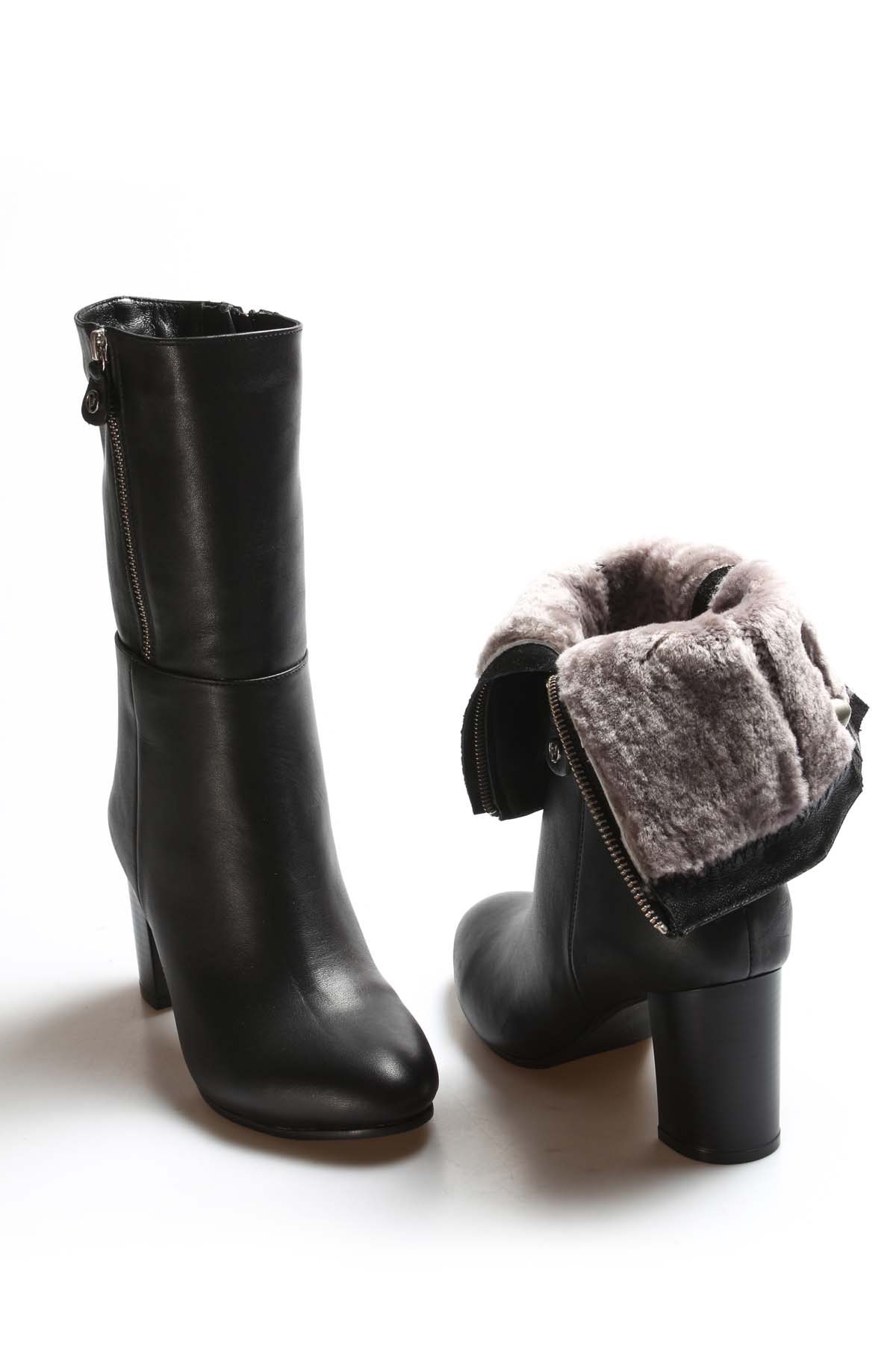 Tugerdi Hakiki Deri Siyah Kürklü Fermuarlı Jurdan Taban Topuklu Kadın Çizme TG0906411261836