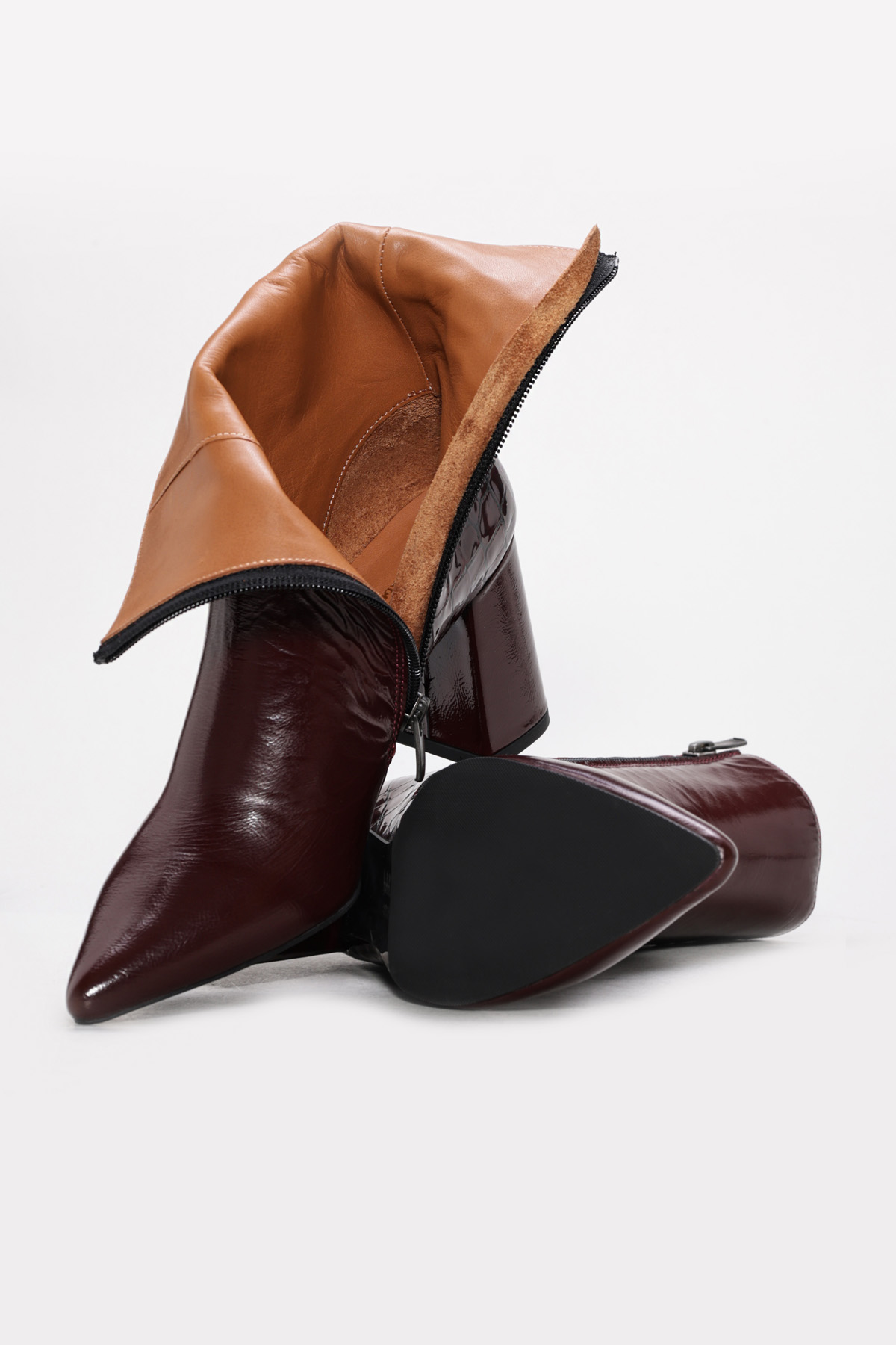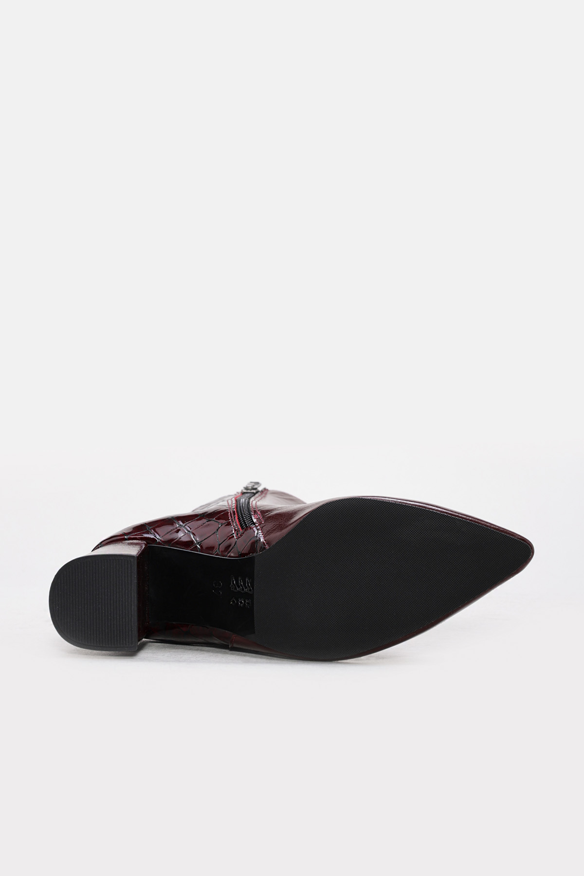 Tugerdi Bordo Kroko Hakiki Deri Fermuarlı Jurdan Taban Kalın Topuklu Kadın Bot TG0921542613621