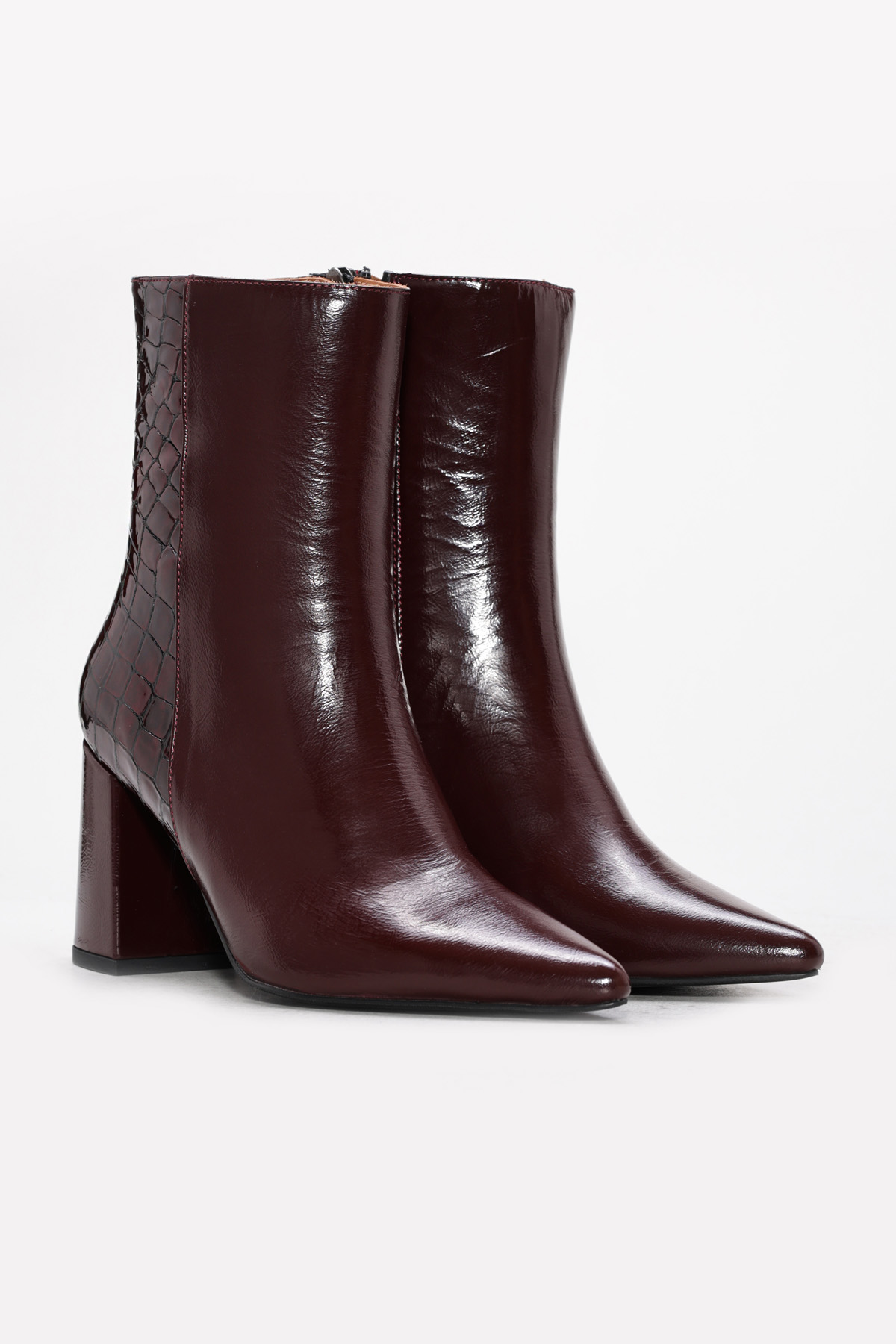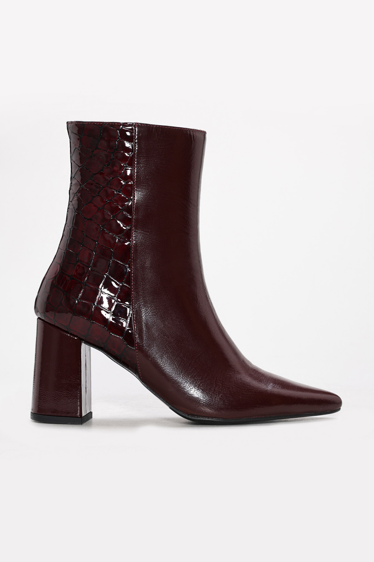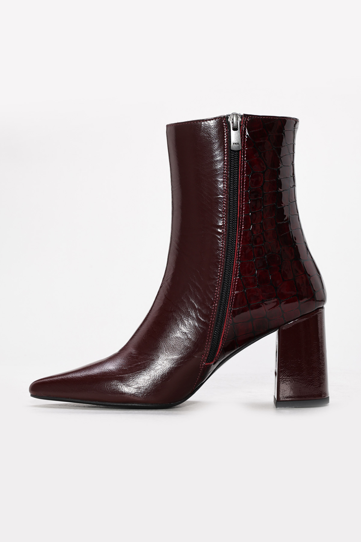 Kadın Bot Tugerdi Bordo Kroko Hakiki Deri Fermuarlı Jurdan Taban Kalın Topuklu Kadın Bot TG0921542613621