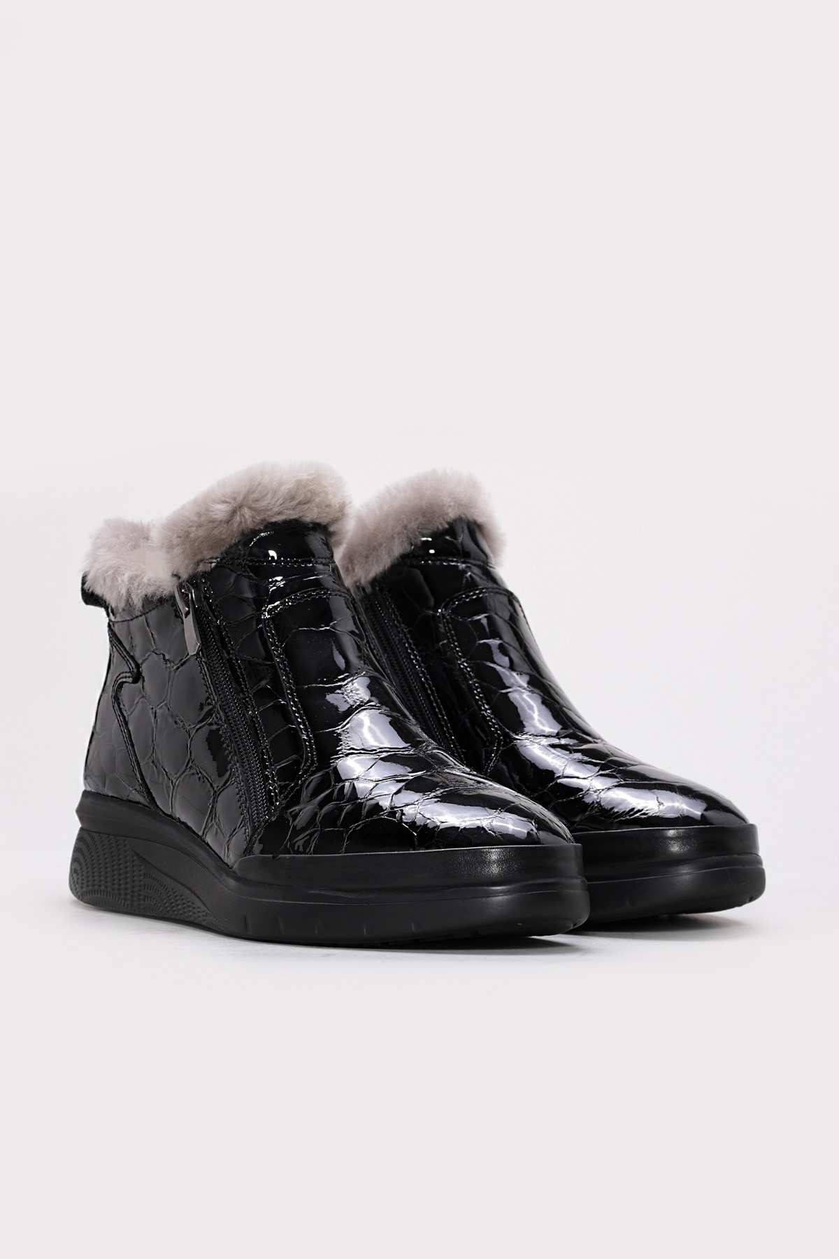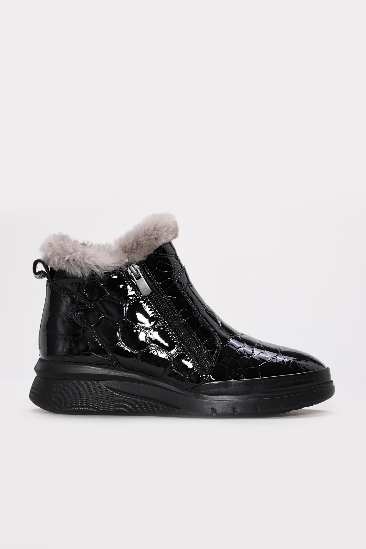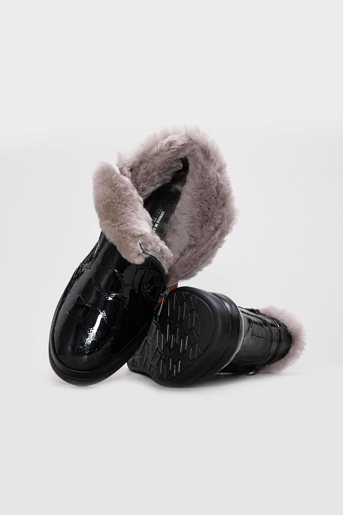 Kadın Bot Tugerdi Siyah Kroko İçi Kürklü Hakiki Deri Fermuarlı Termo Taban Kaliteli Kadın Bot TG09411112611405