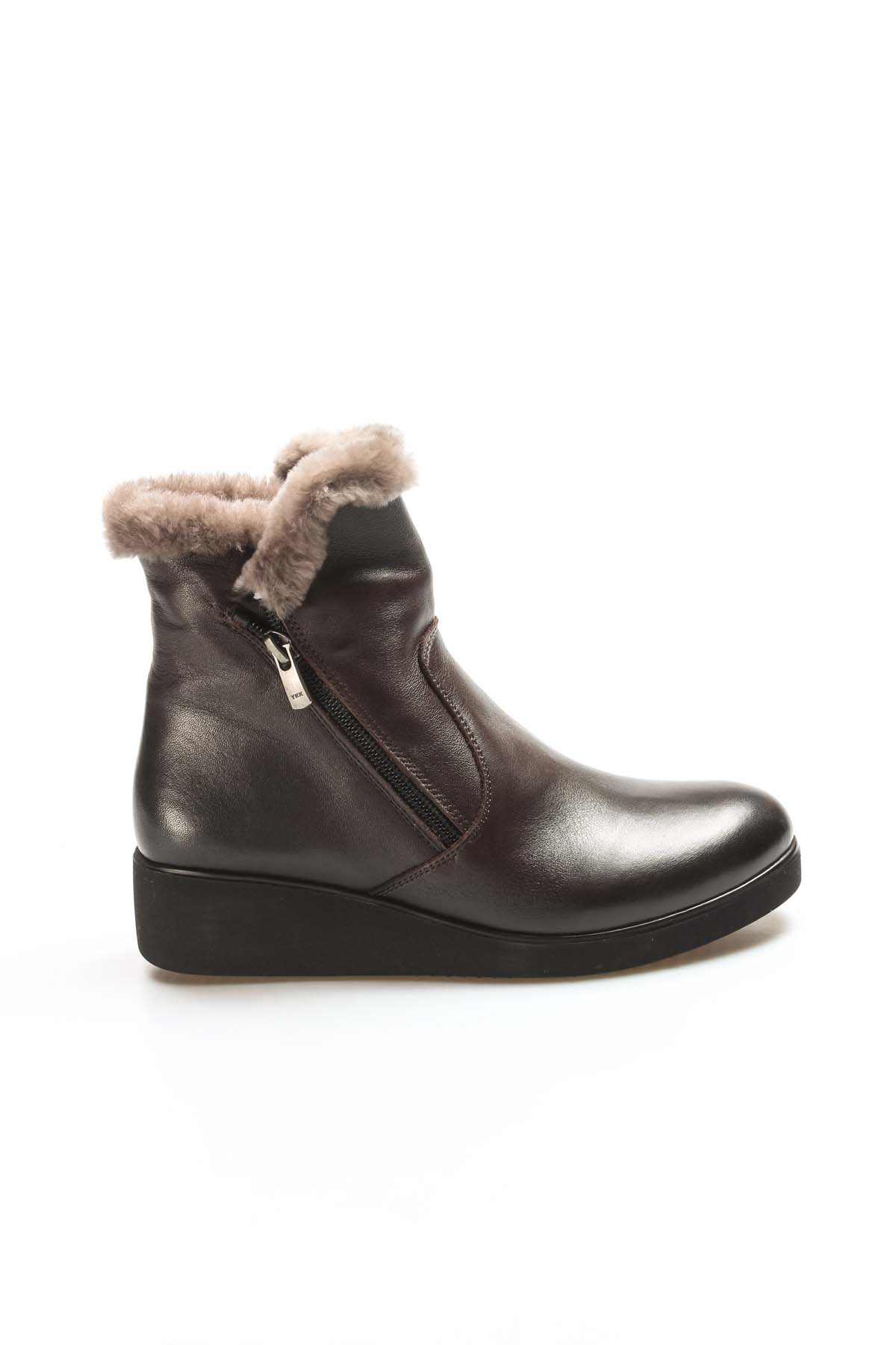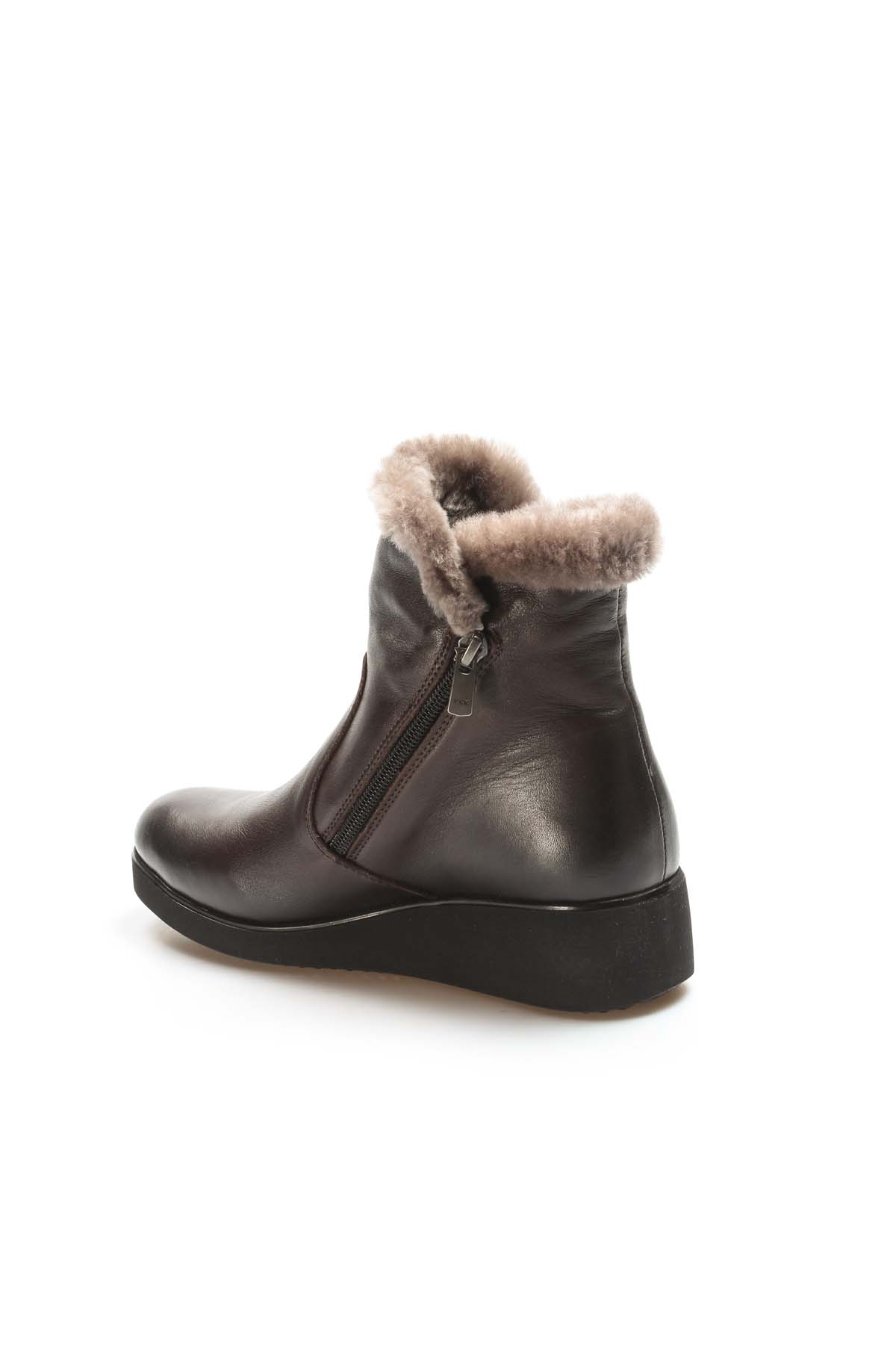 • Tugerdi Hakiki Deri Kahve Kürklü Hafif Taban Fermuarlı Klasik Kadın Bot TG09863112612358