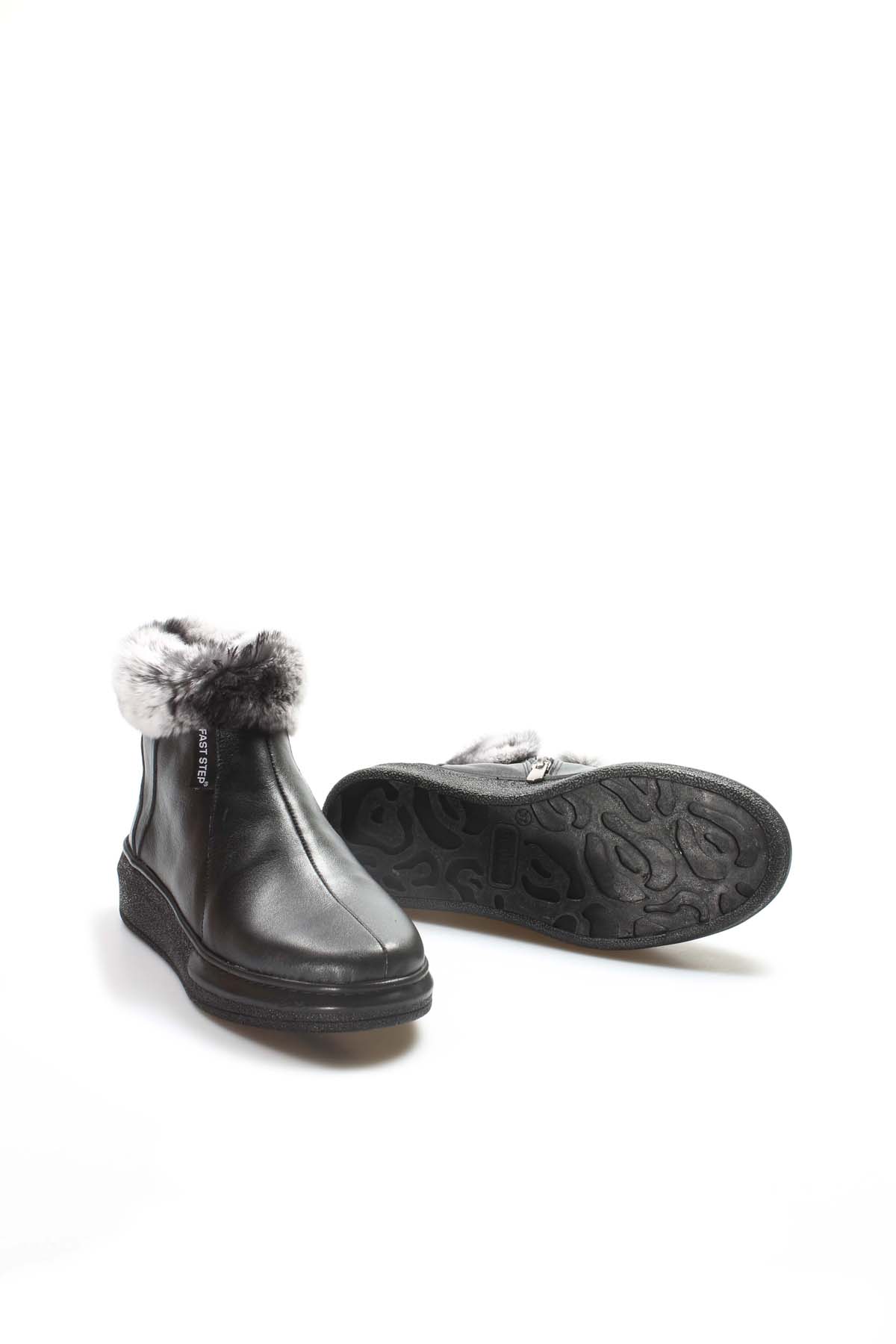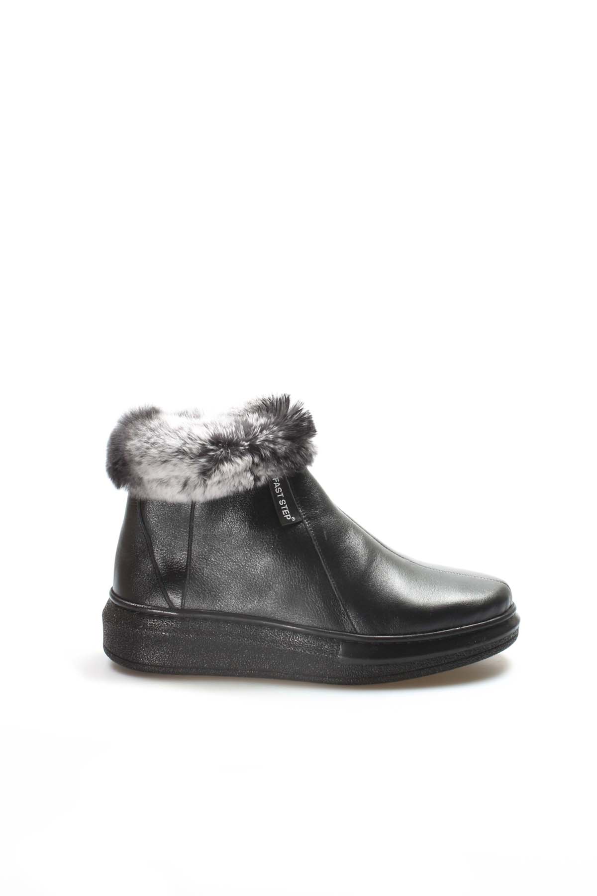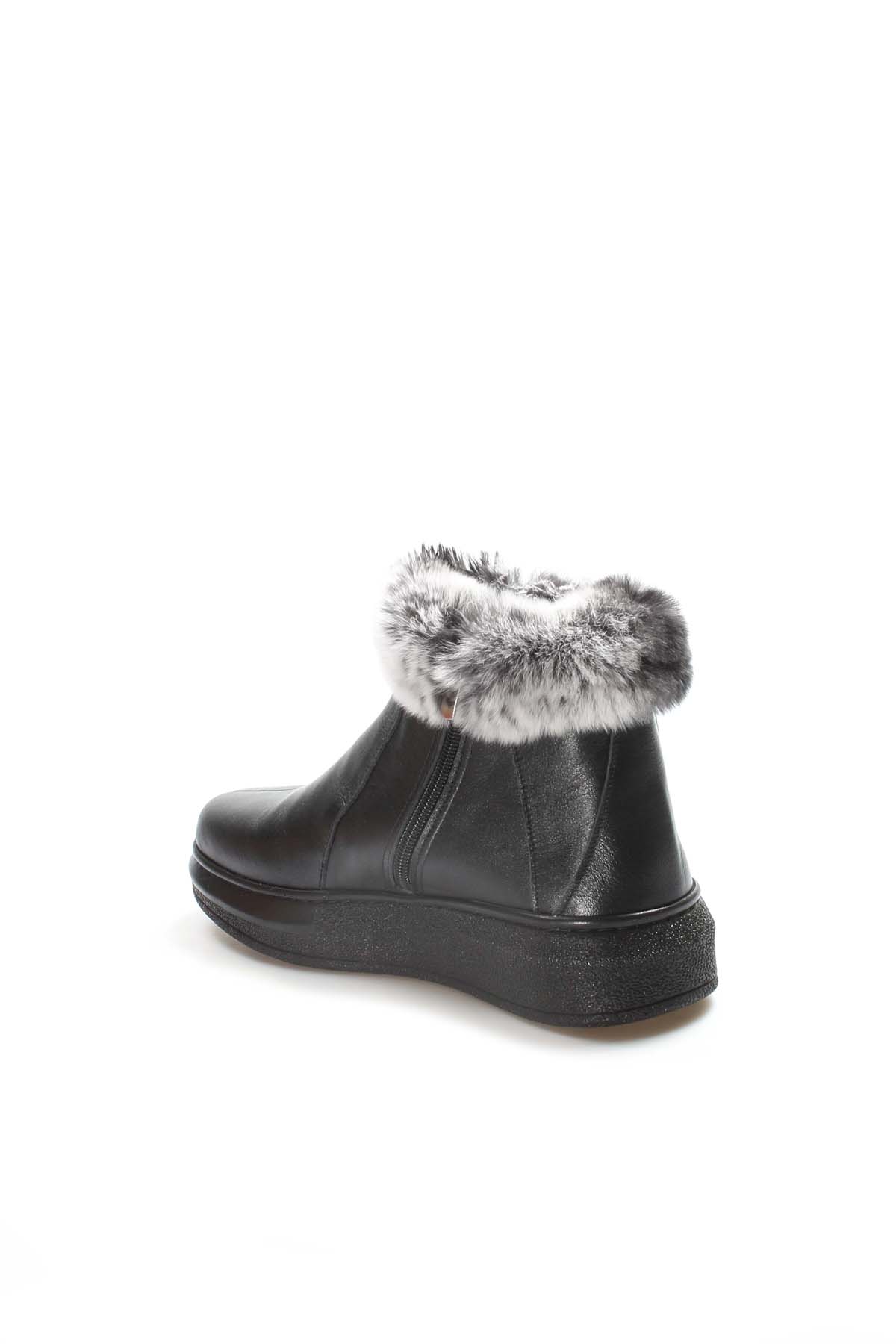 Tugerdi Hakiki Deri Siyah Kürklü Rahat Klasik Kadın Bot TG0973311261328