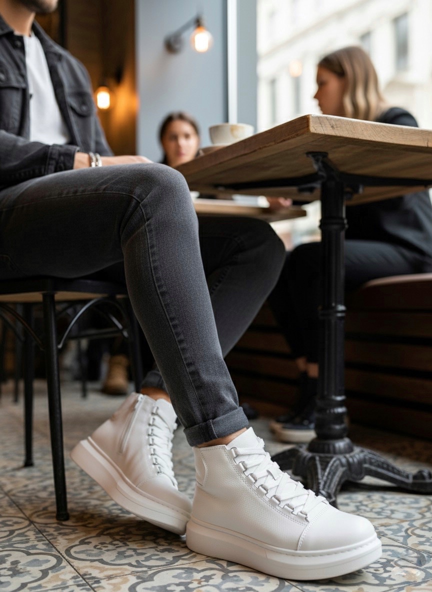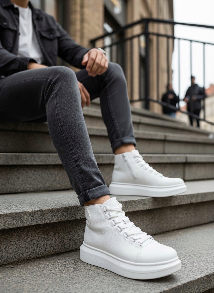 Tarz Erkek Ayakkabı Erkek Bot Tugerdi Beyaz Bağcıklı Yüksek Hafif Taban Tarz Erkek Spor Bot TGE230863