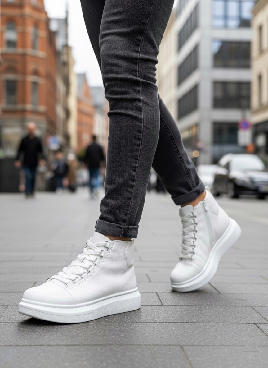 Tugerdi Beyaz Bağcıklı Yüksek Hafif Taban Tarz Erkek Spor Bot TGE230863