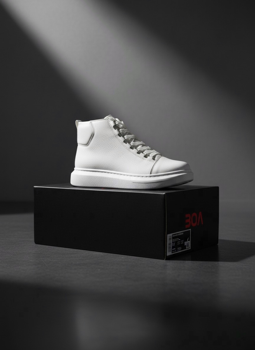 • Tugerdi Beyaz Bağcıklı Yüksek Hafif Taban Tarz Erkek Spor Bot TGE230863