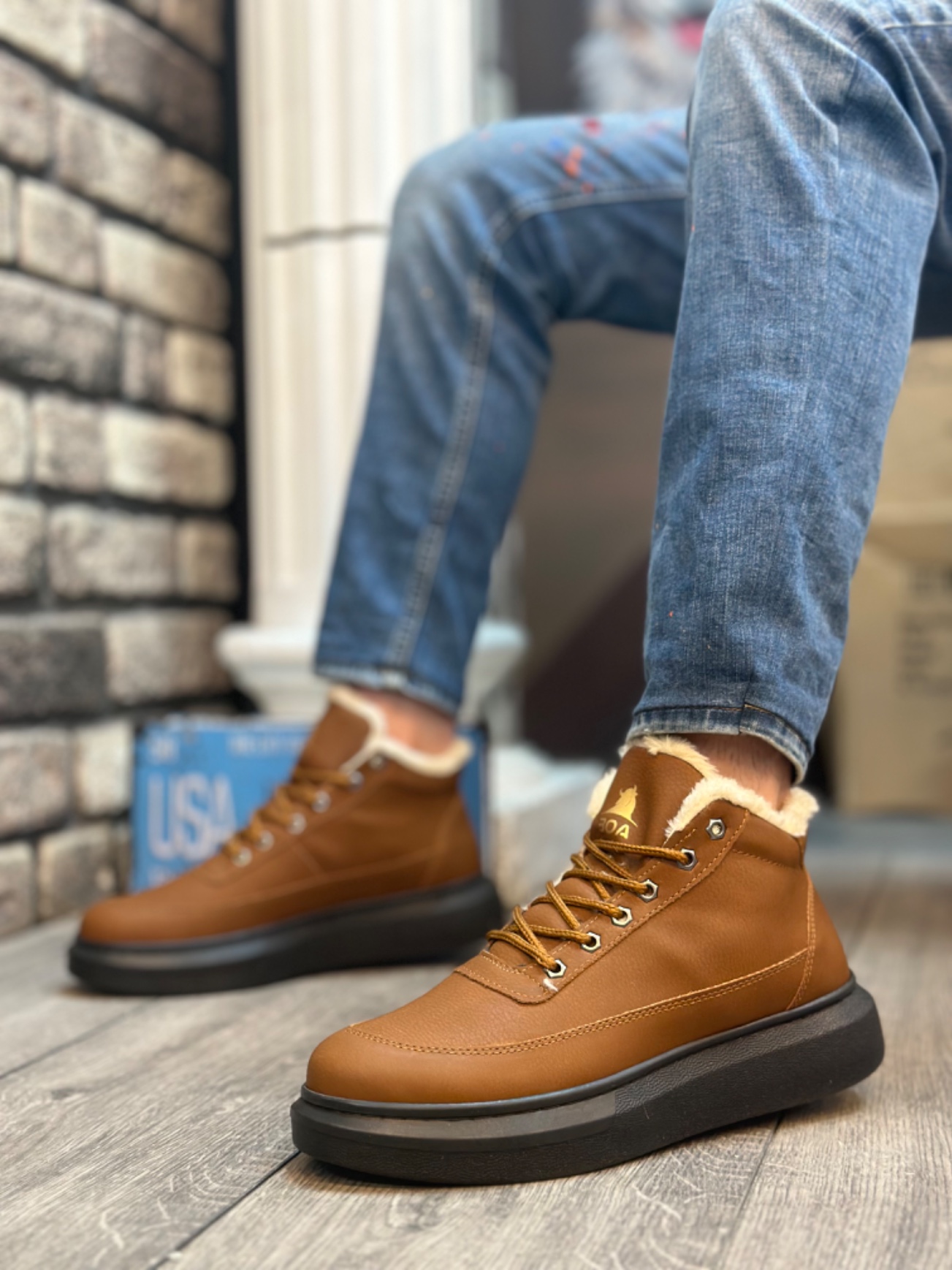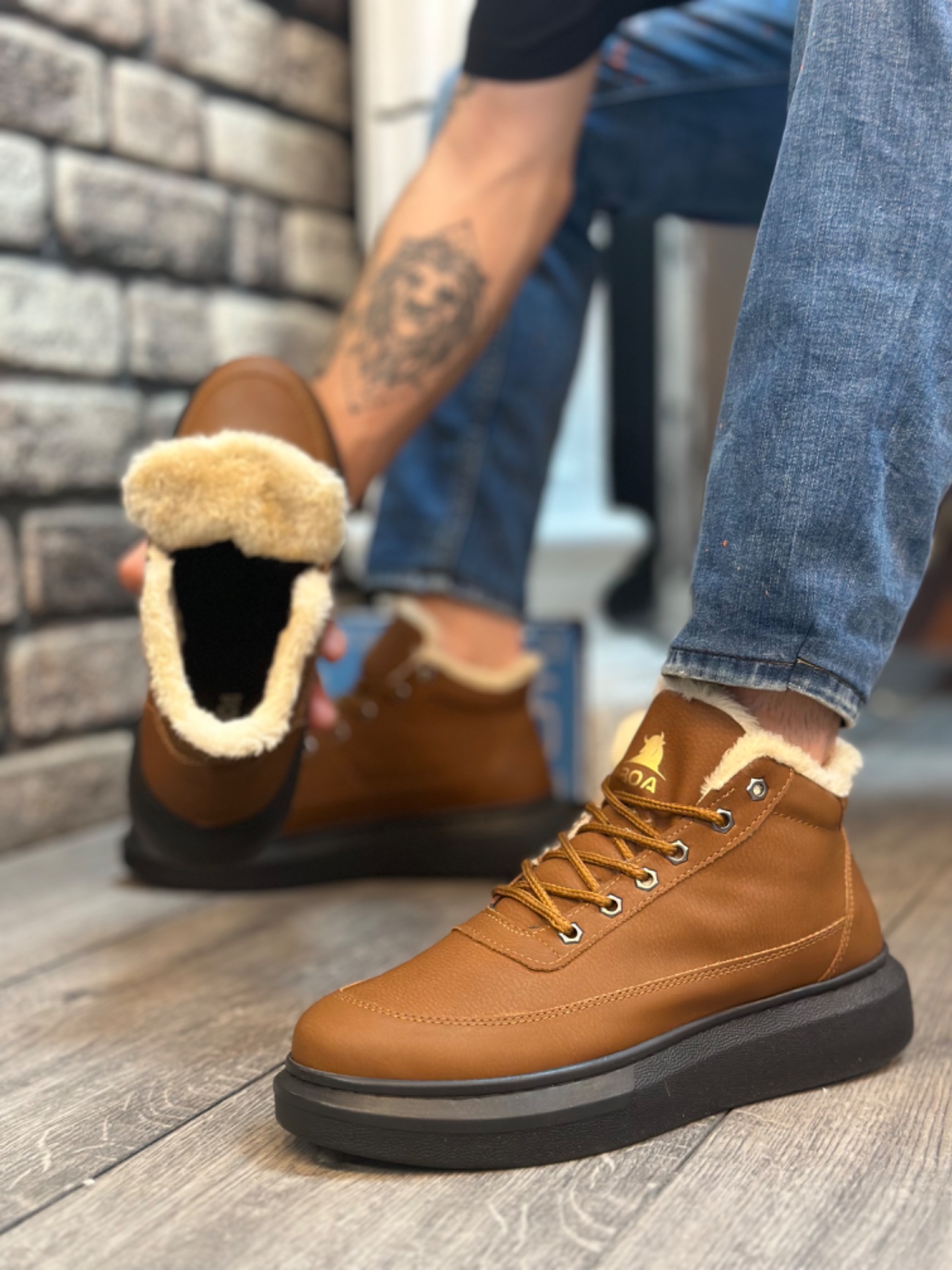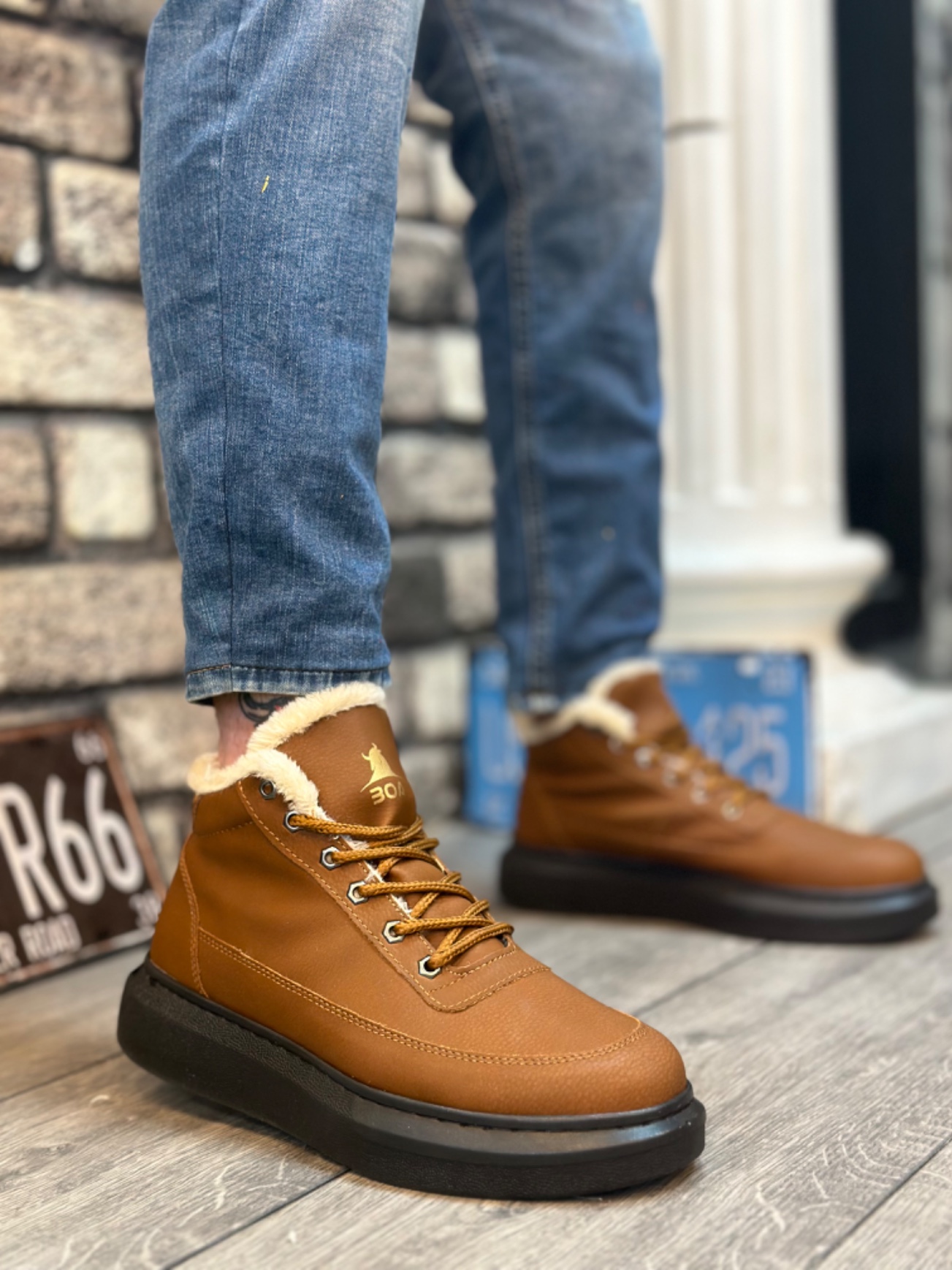 Tugerdi Bağcıklı İçi Kürklü Cilt Deri Açık Taba Erkek Tarz Spor Bot TGE230301