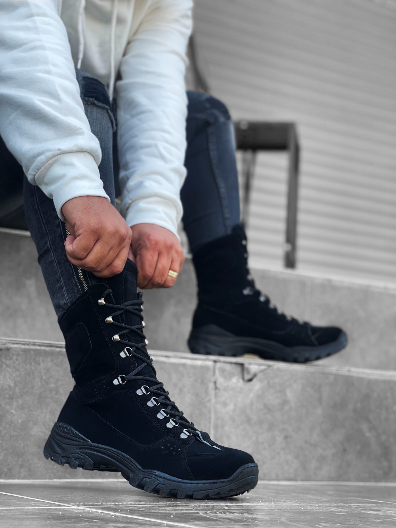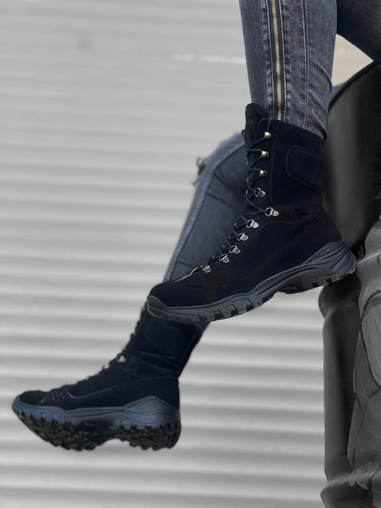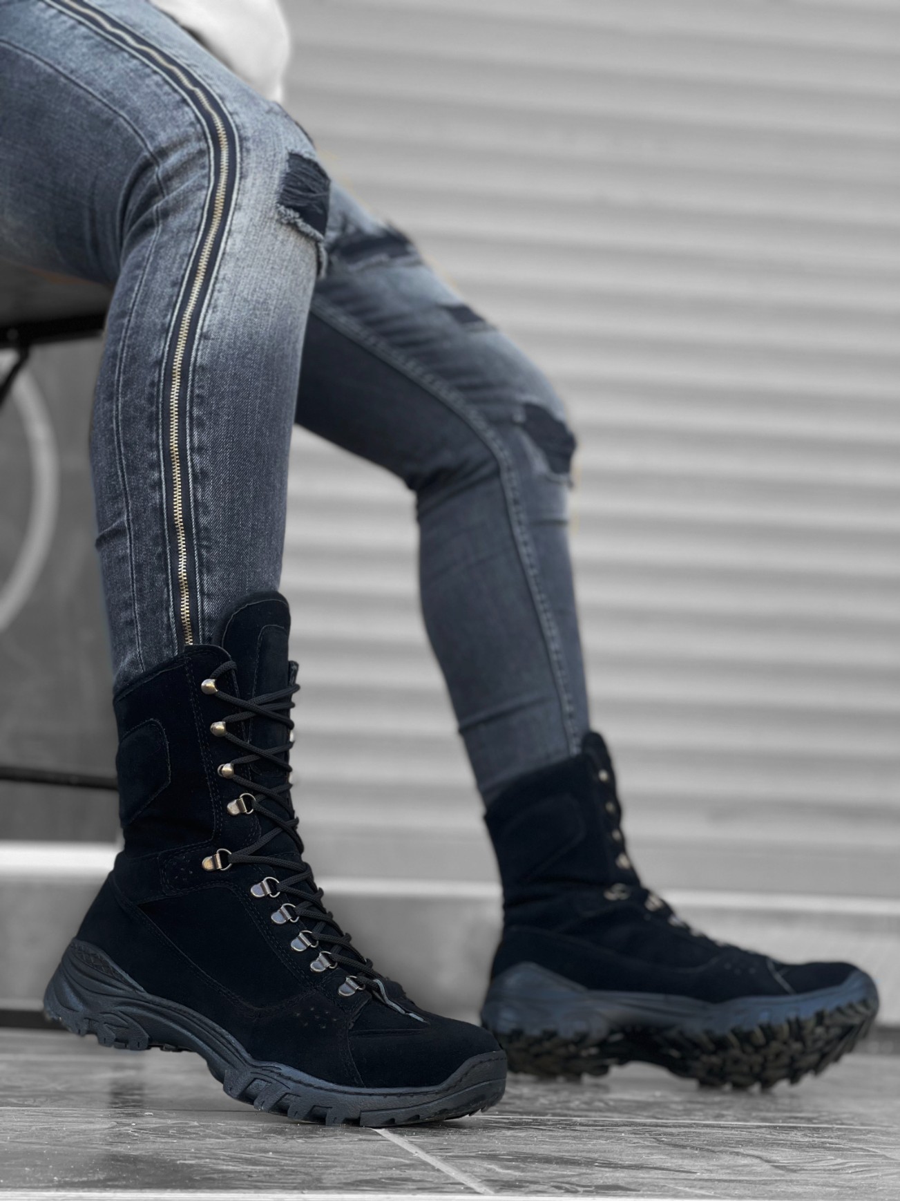 • Tugerdi Bağcıklı Rahat Taban Suni Deri Siyah Süet Askeri Postal Bot TGE230755