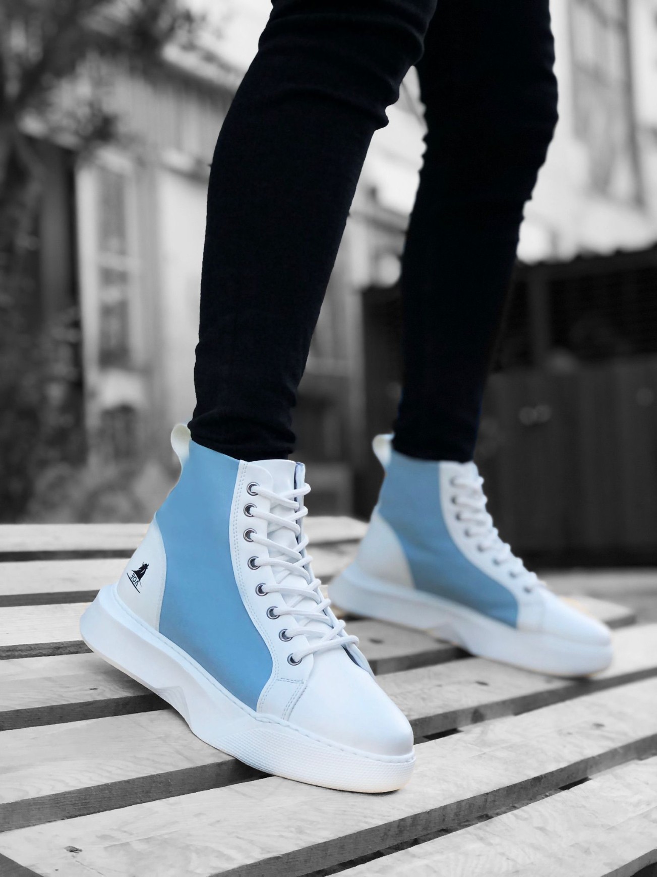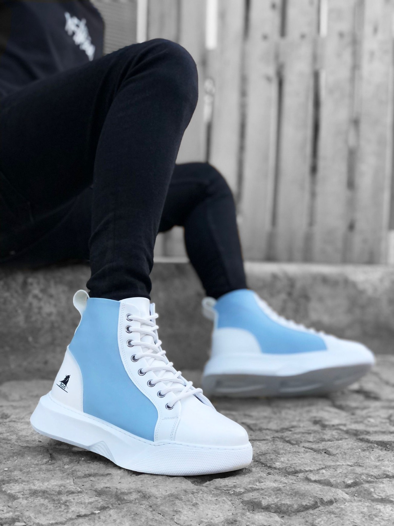Tugerdi Beyaz Mavi Bağcıklı Yüksek Beyaz Taban Tarz Erkek Spor Bot TGE230756