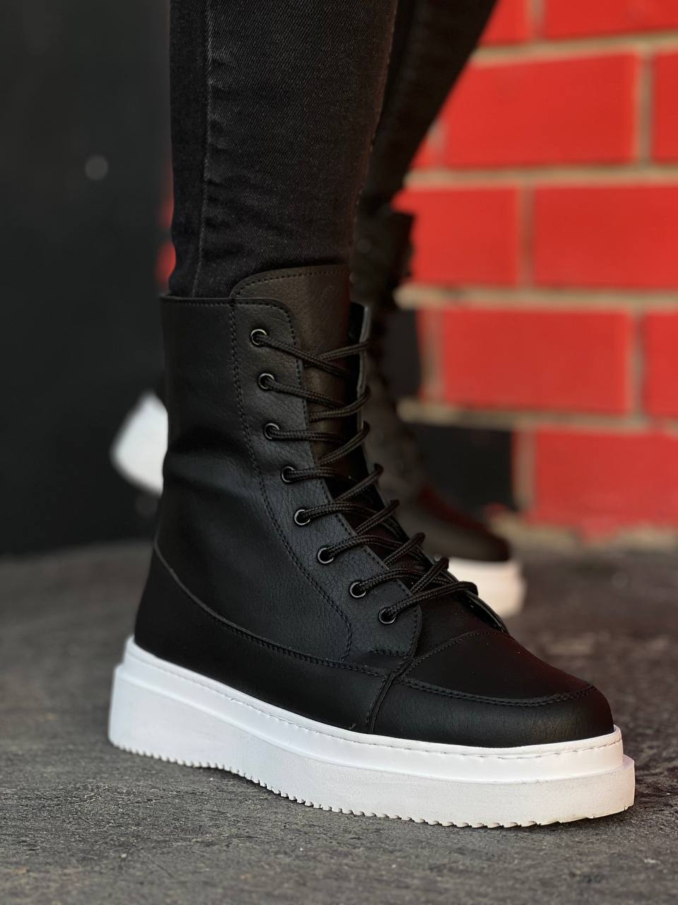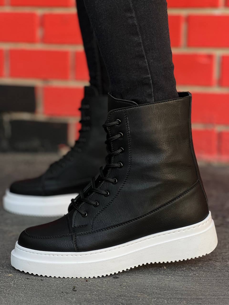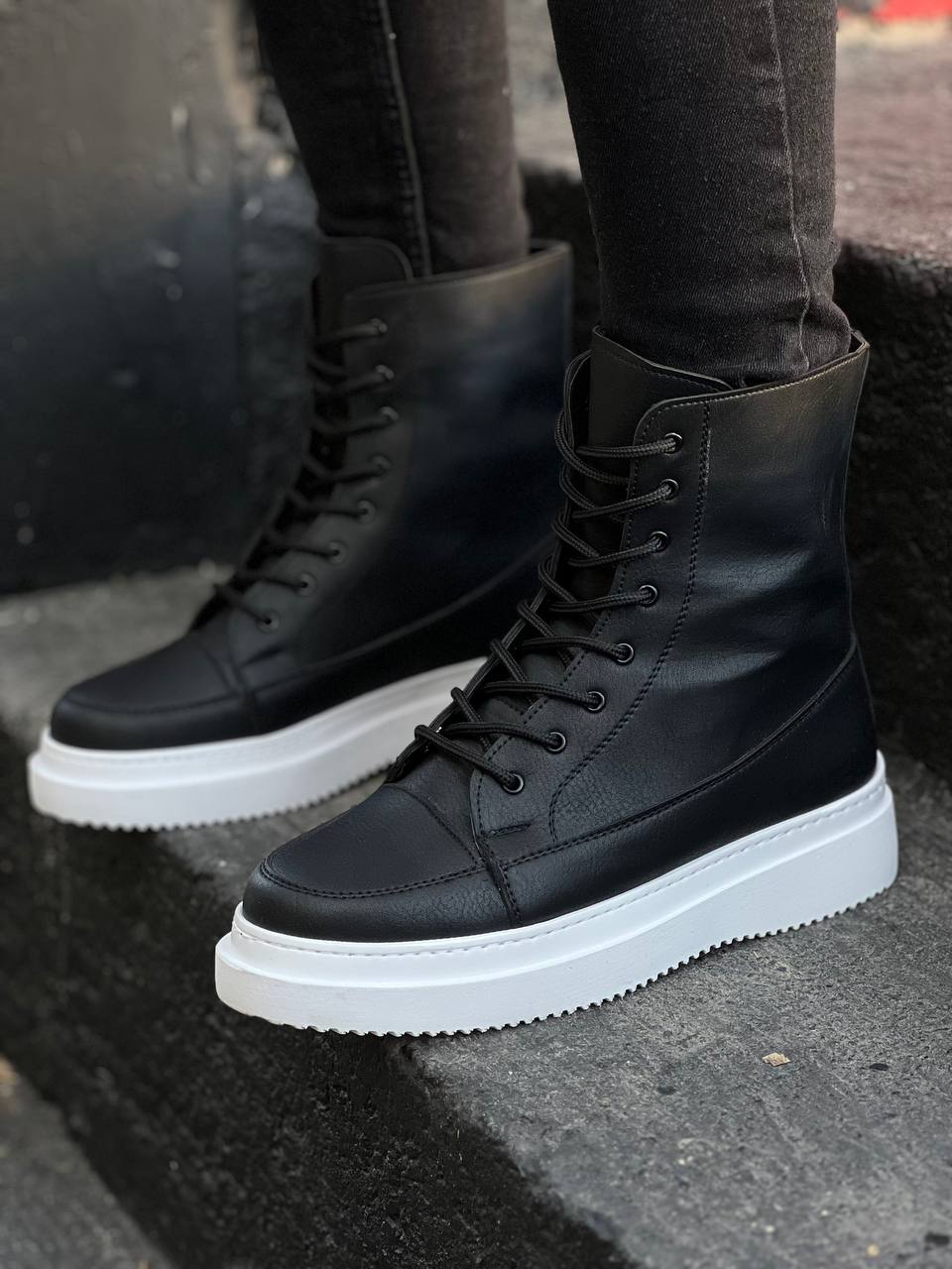 Tarz Erkek Ayakkabı Erkek Bot Tugerdi Siyah Cilt Bağcıklı Beyaz Yüksek Taban Tarz Erkek Postal Bot TGR2301141