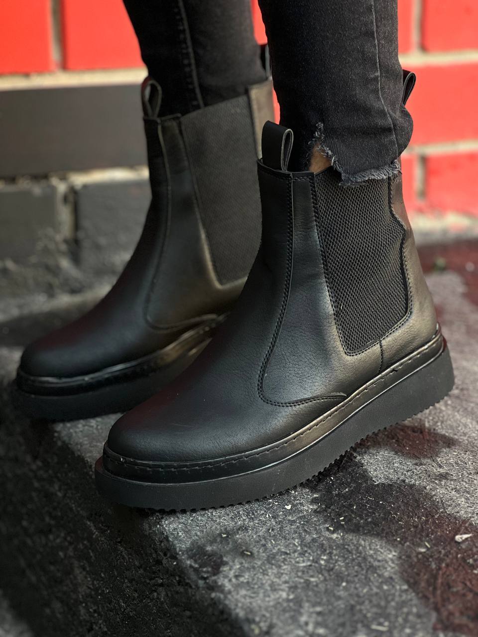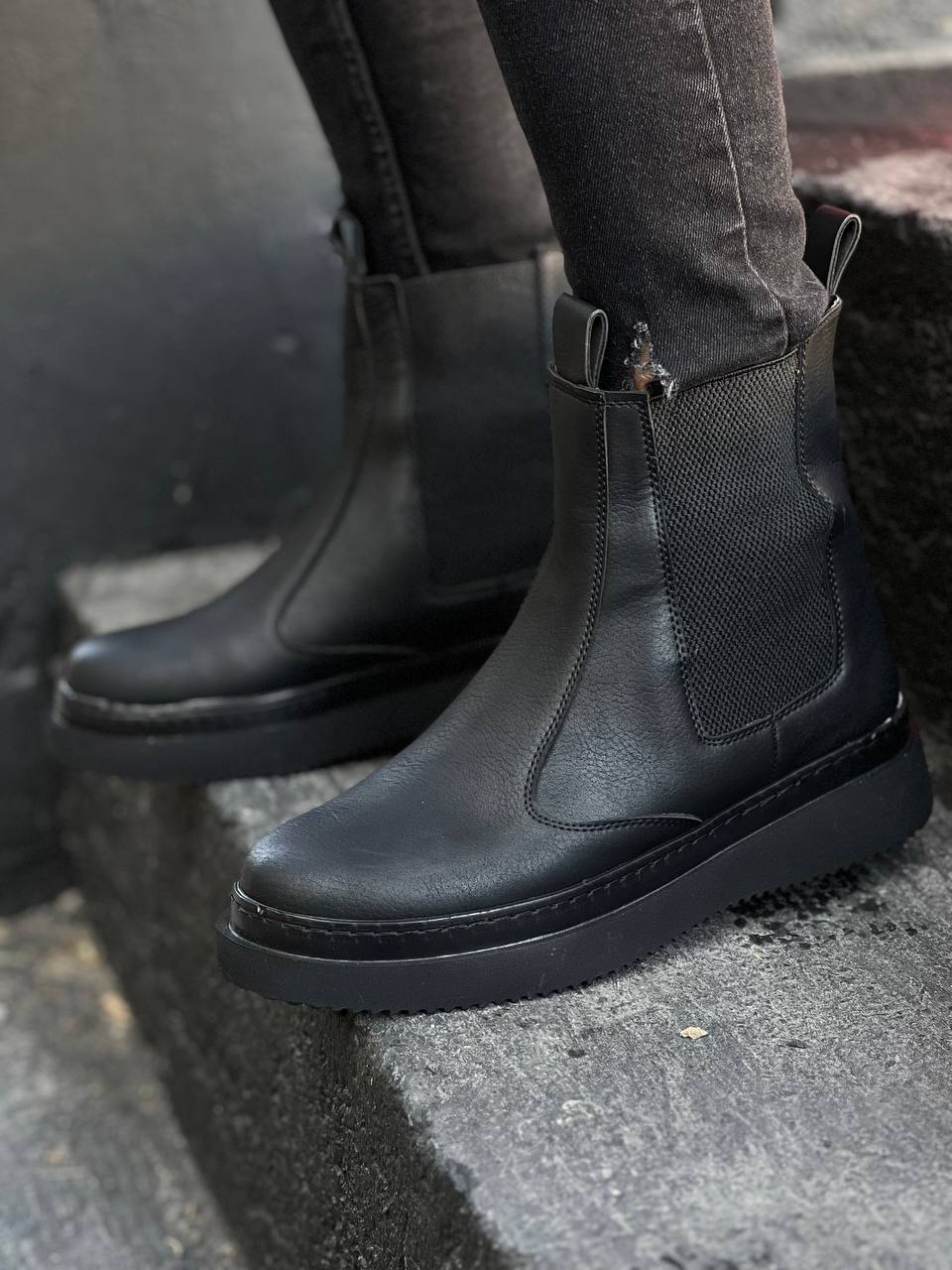 Tugerdi Siyah Cilt Lastikli Siyah Yüksek Taban Tarz Erkek Bot TGR2301142