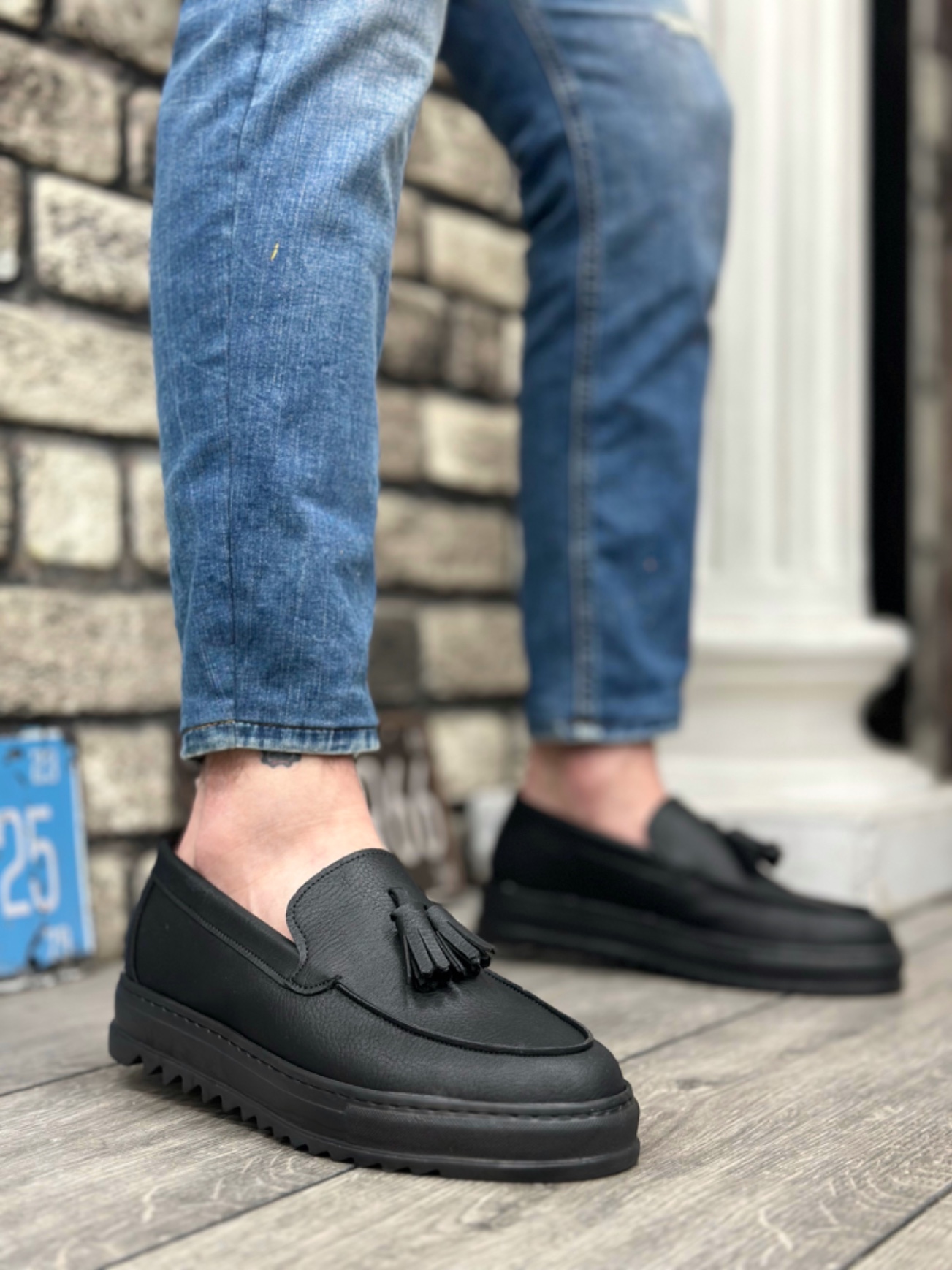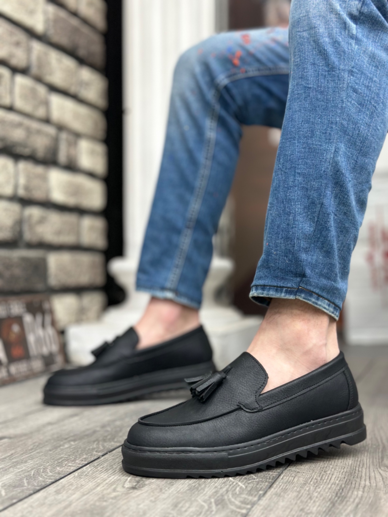 • Tugerdi Siyah Bağcıksız Püsküllü Hafif Yüksek Taban Tarz Günlük Erkek Ayakkabı TGE2302975852
