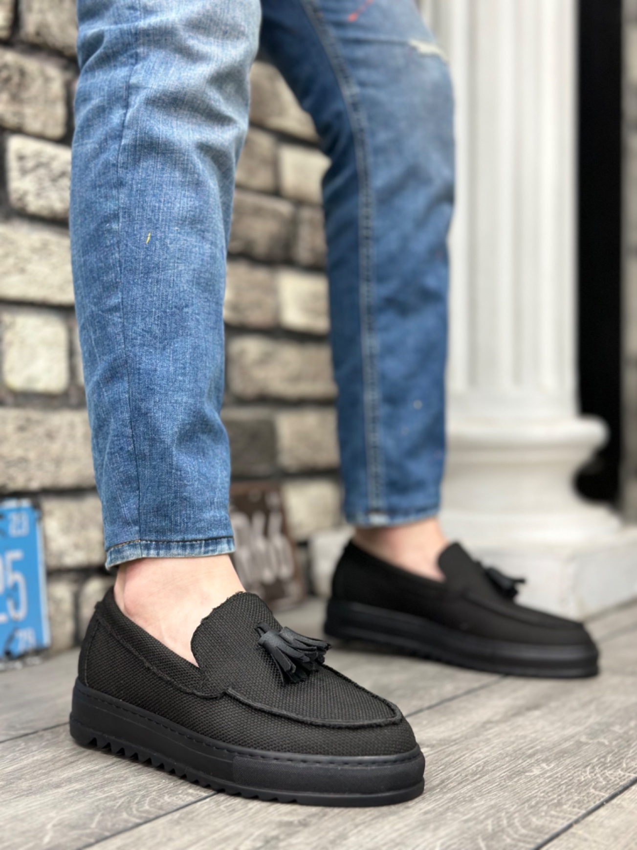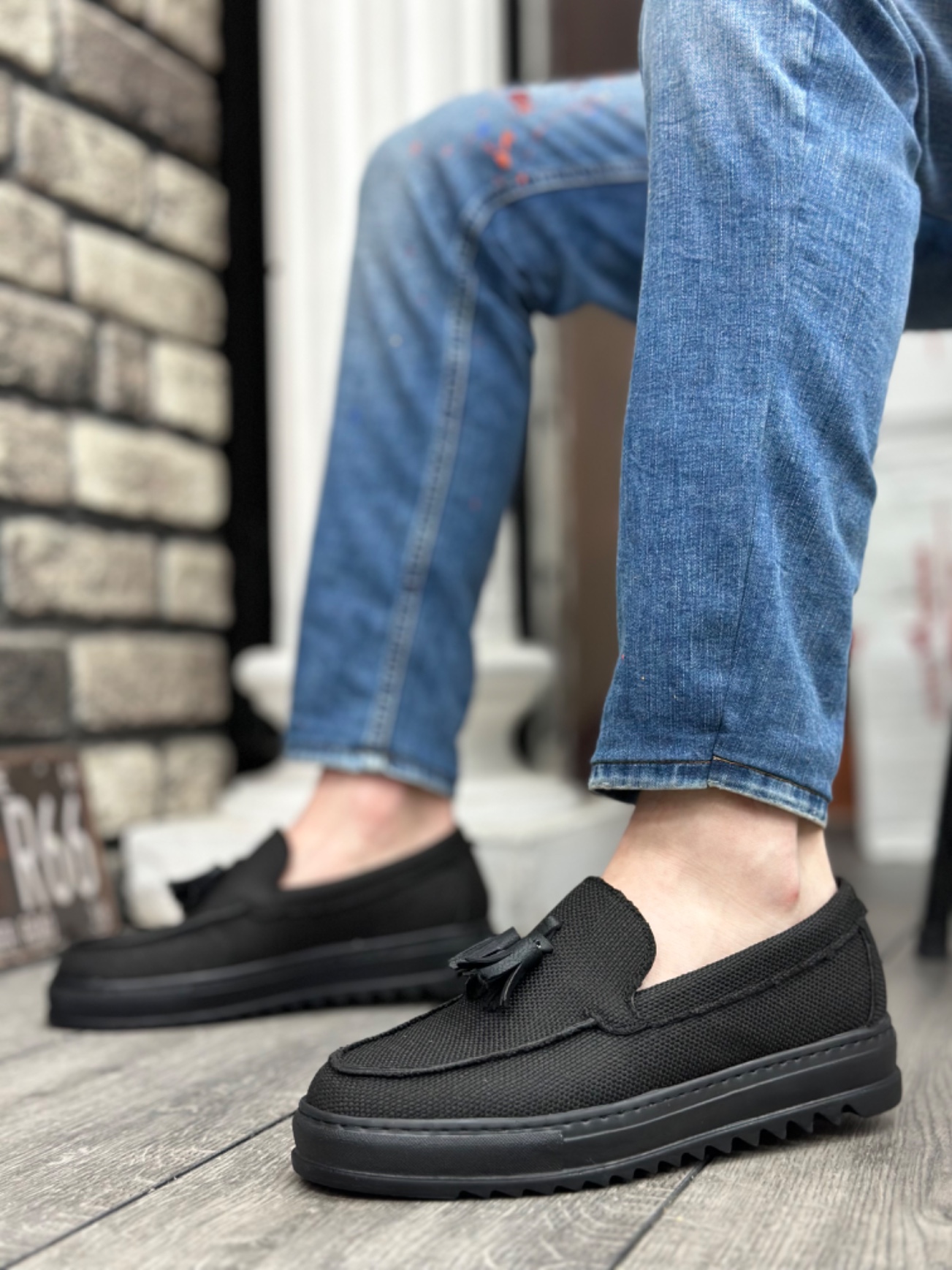 • Tugerdi Siyah Keten Püsküllü Hafif Yüksek Taban Tarz Erkek Ayakkabı TGE2302975852