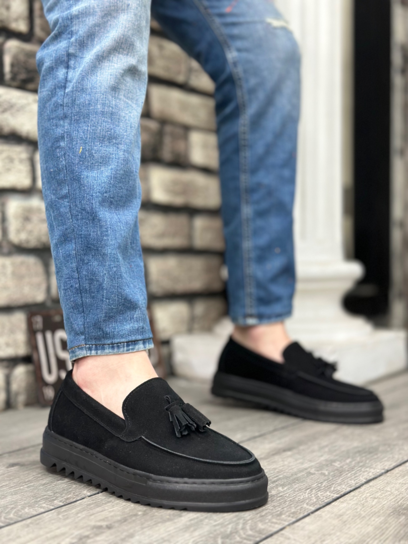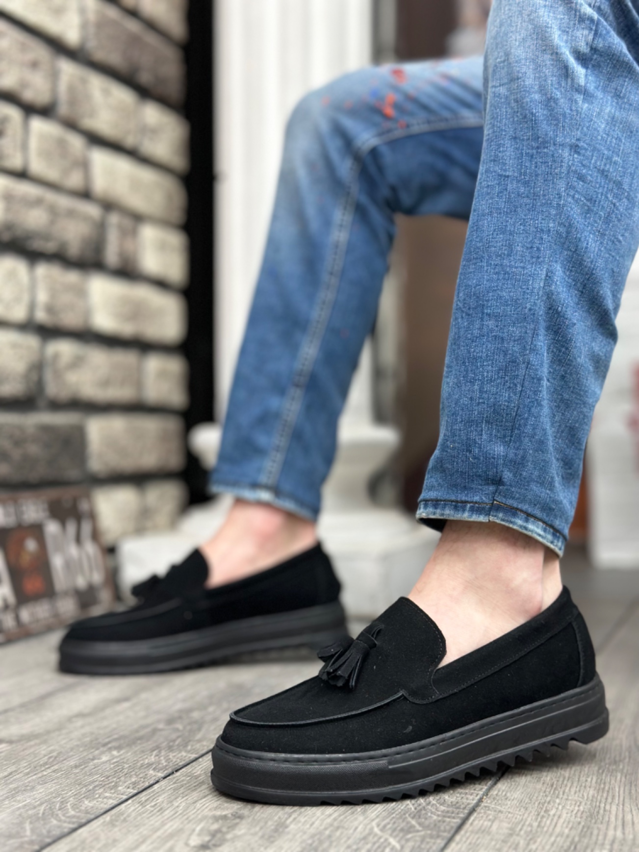 Tugerdi Siyah Süet Püsküllü Hafif Siyah Yüksek Taban Tarz Günlük Erkek Ayakkabı TGE2302975852