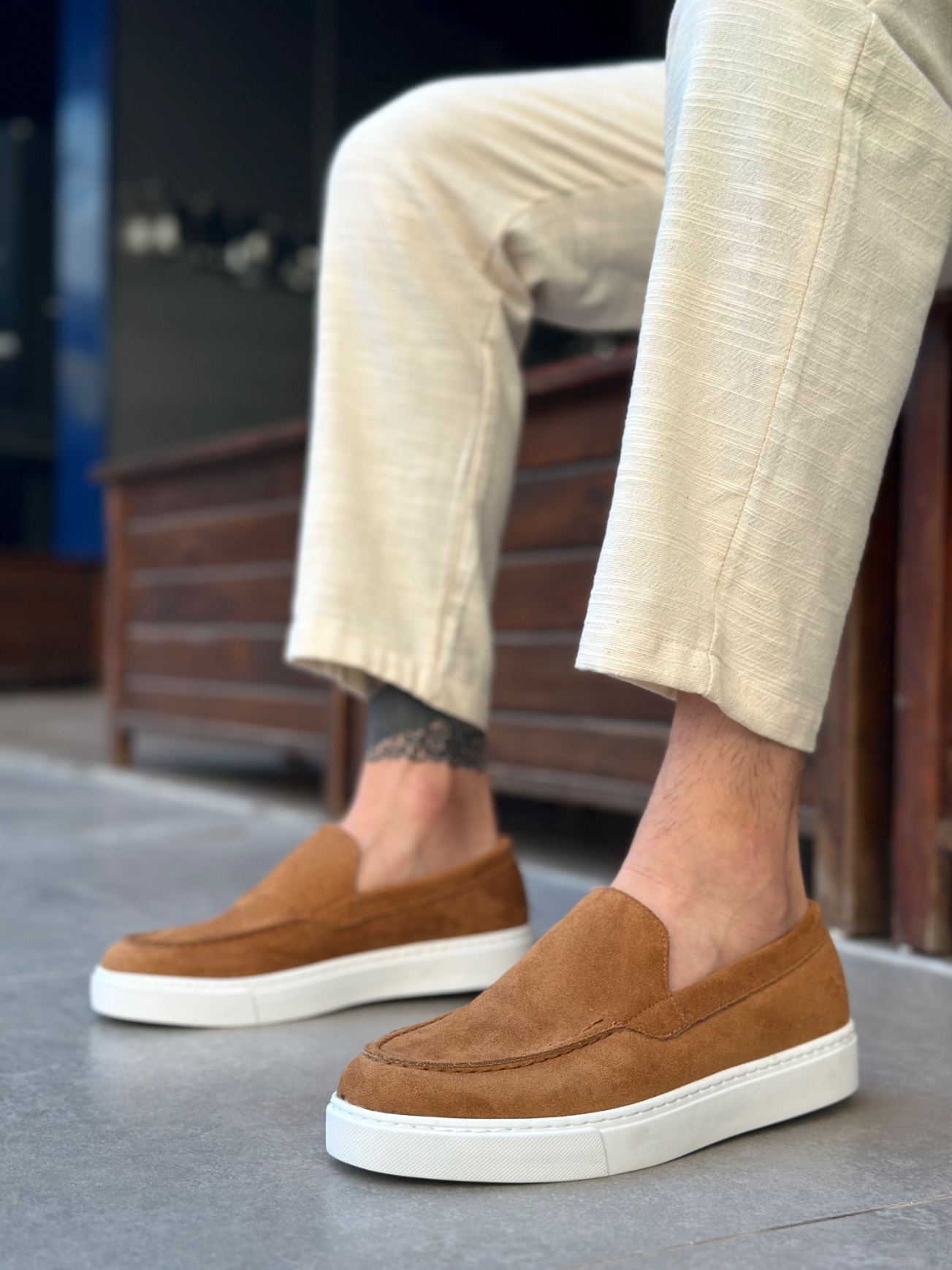 • Tugerdi Taba Süet Hafif Yüksek Taban Bağcıksız Tarz Erkek Ayakkabı TGE230391