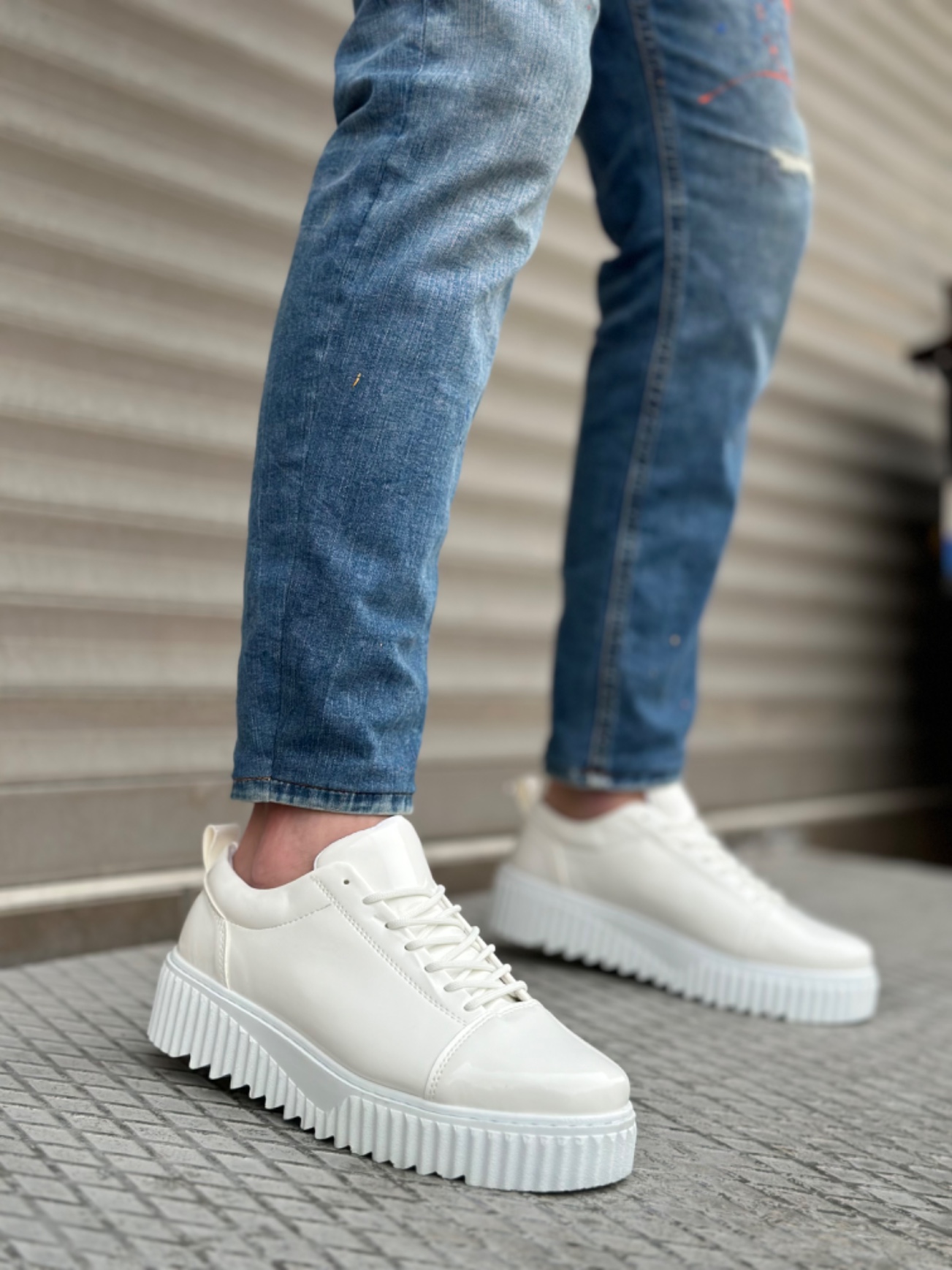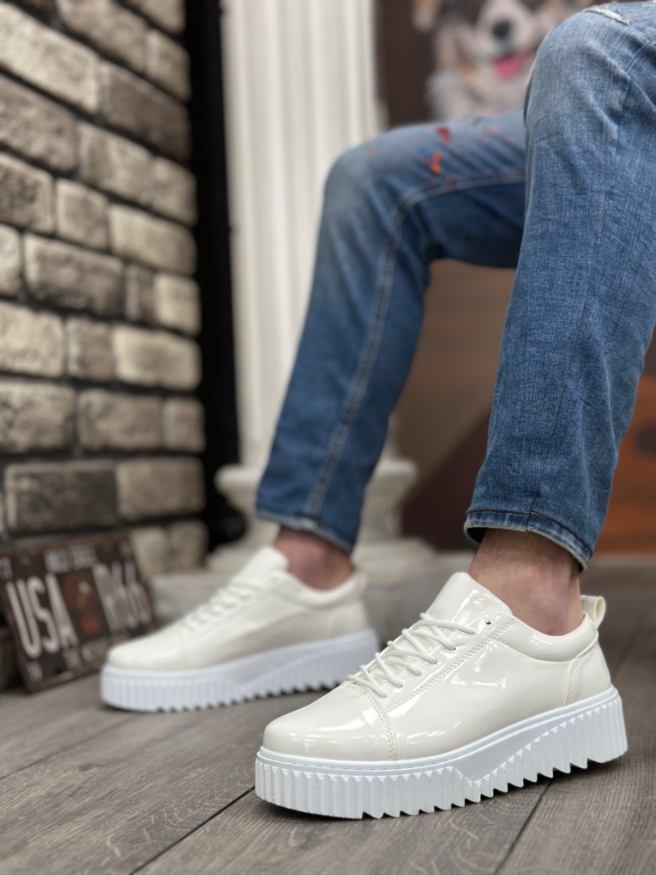 • Tugerdi Beyaz Rugan Bağcıklı Yüksek Taban Tarz Erkek Ayakkabı TGE2308254