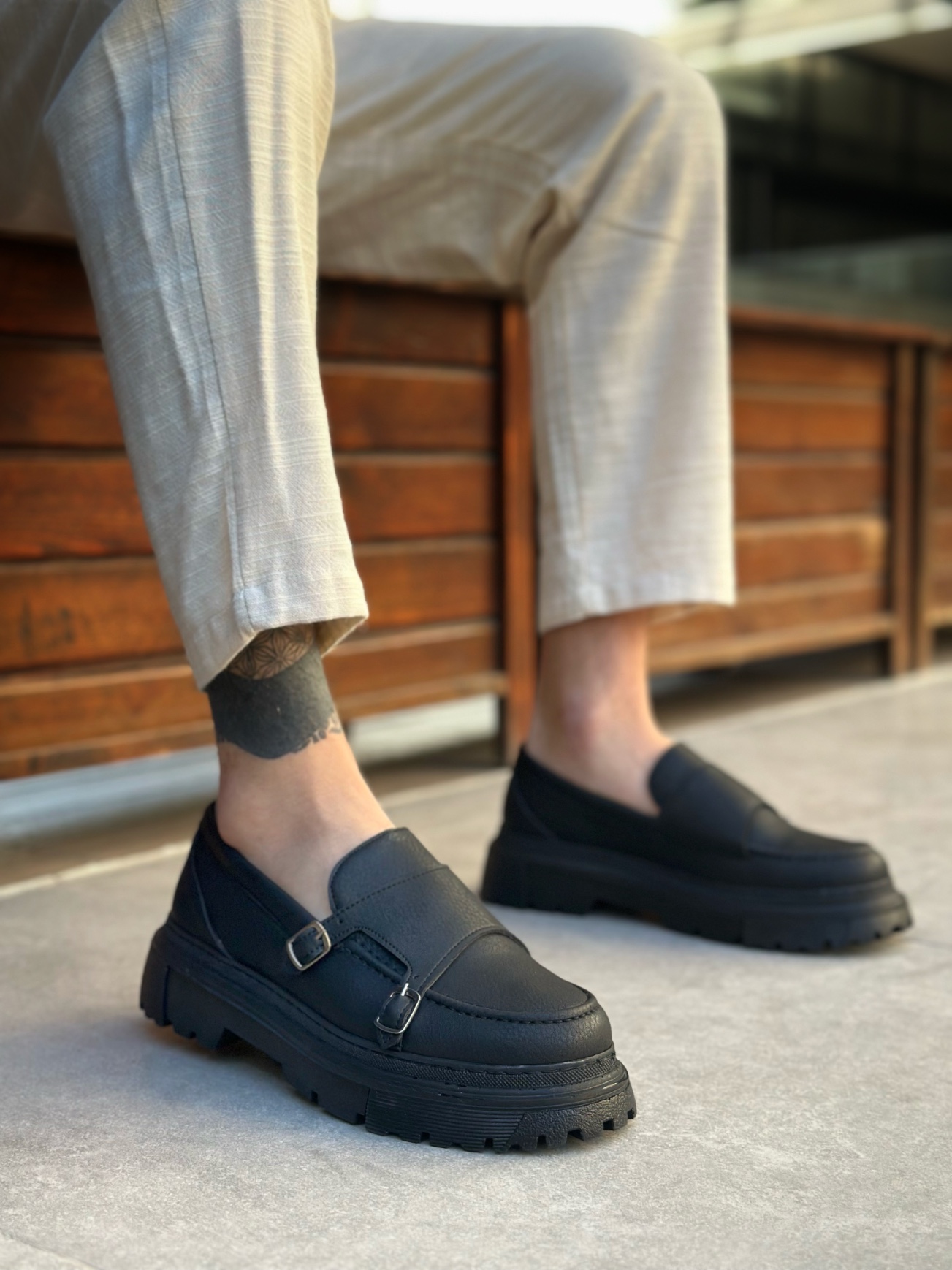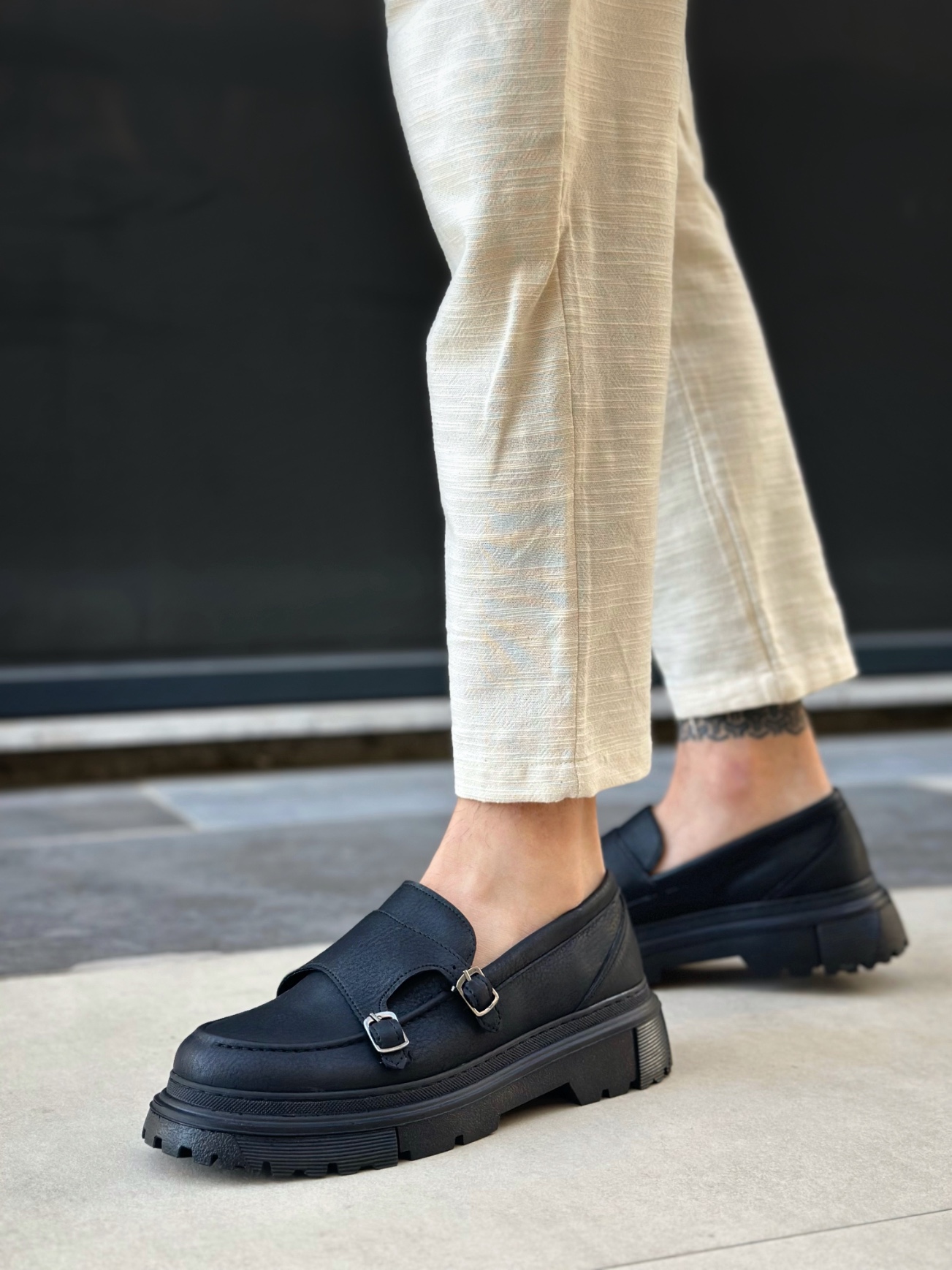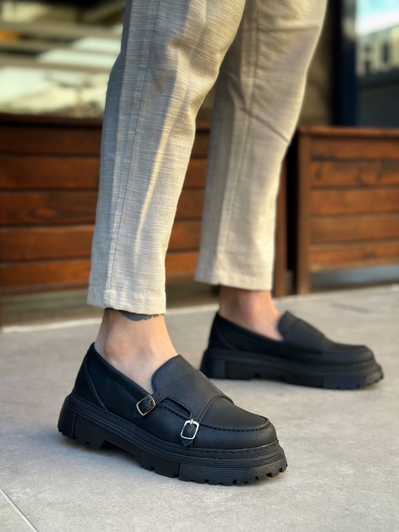 • Tugerdi Siyah Tokalı Hafif Yüksek Siyah Taban Tarz Erkek Ayakkabı TGE230392