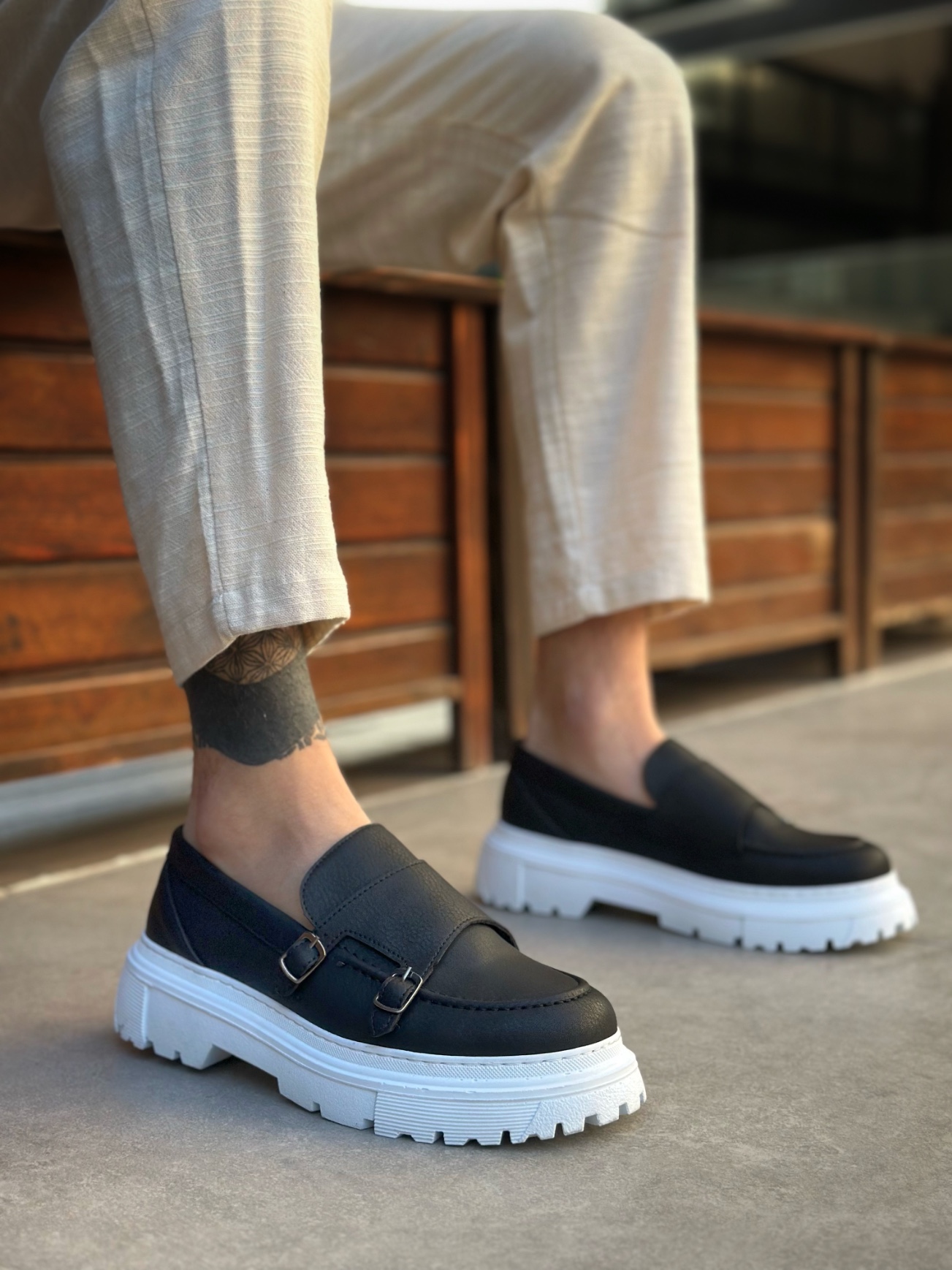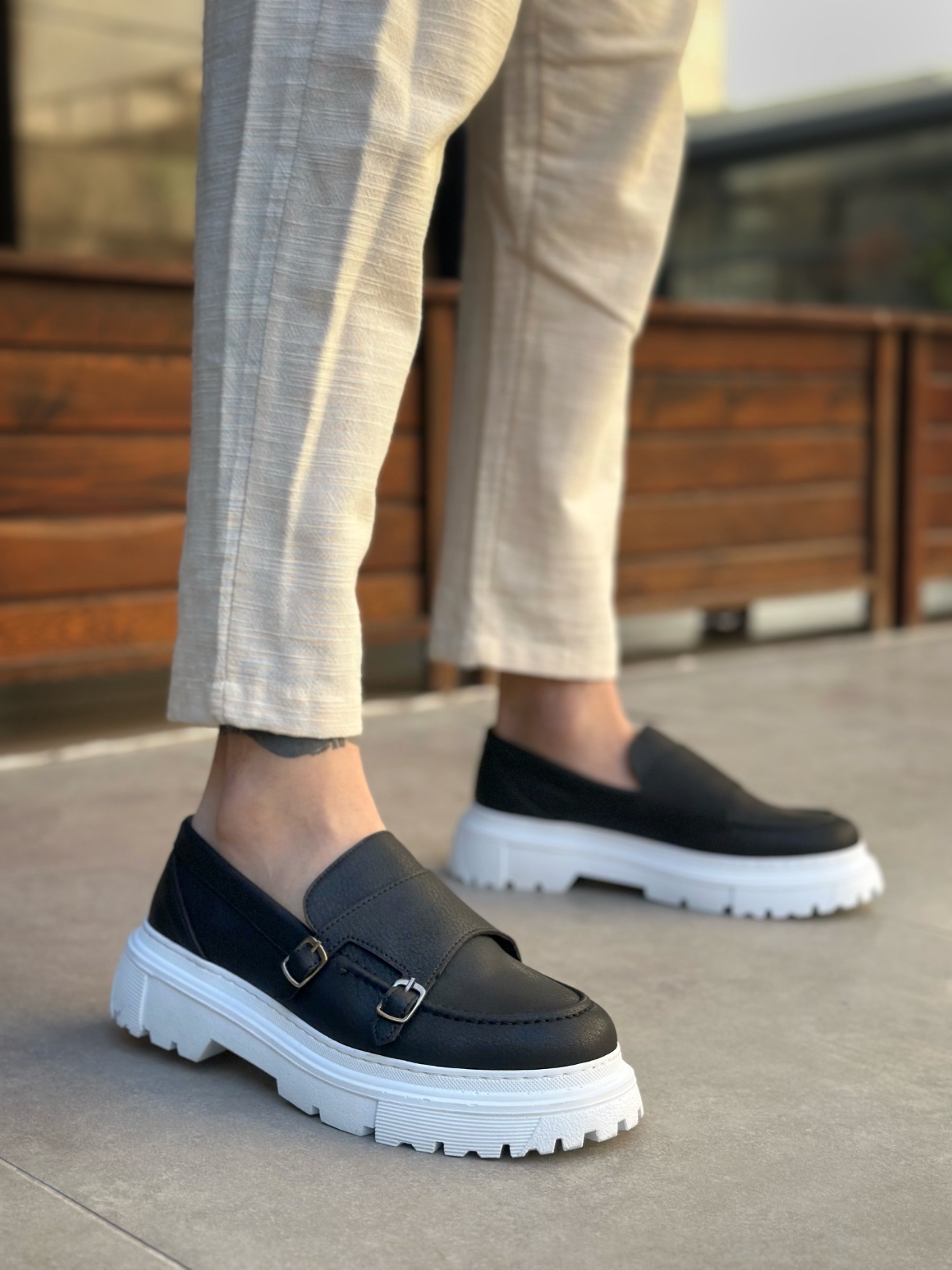 • Tugerdi Siyah Tokalı Hafif Yüksek Taban Tarz Erkek Ayakkabı TGE230392